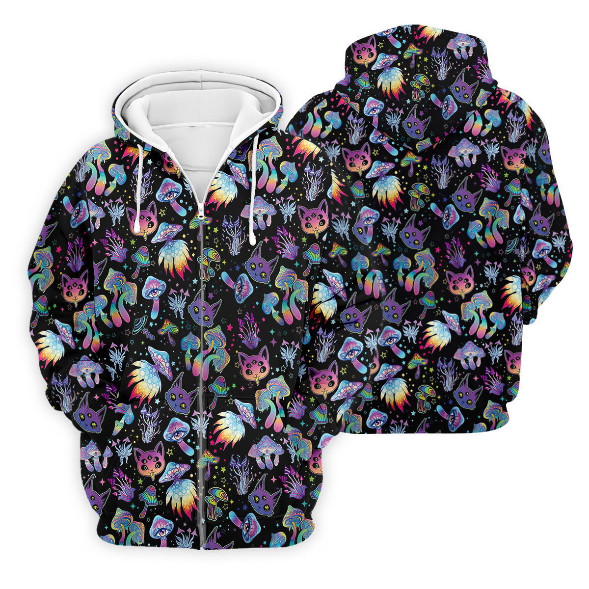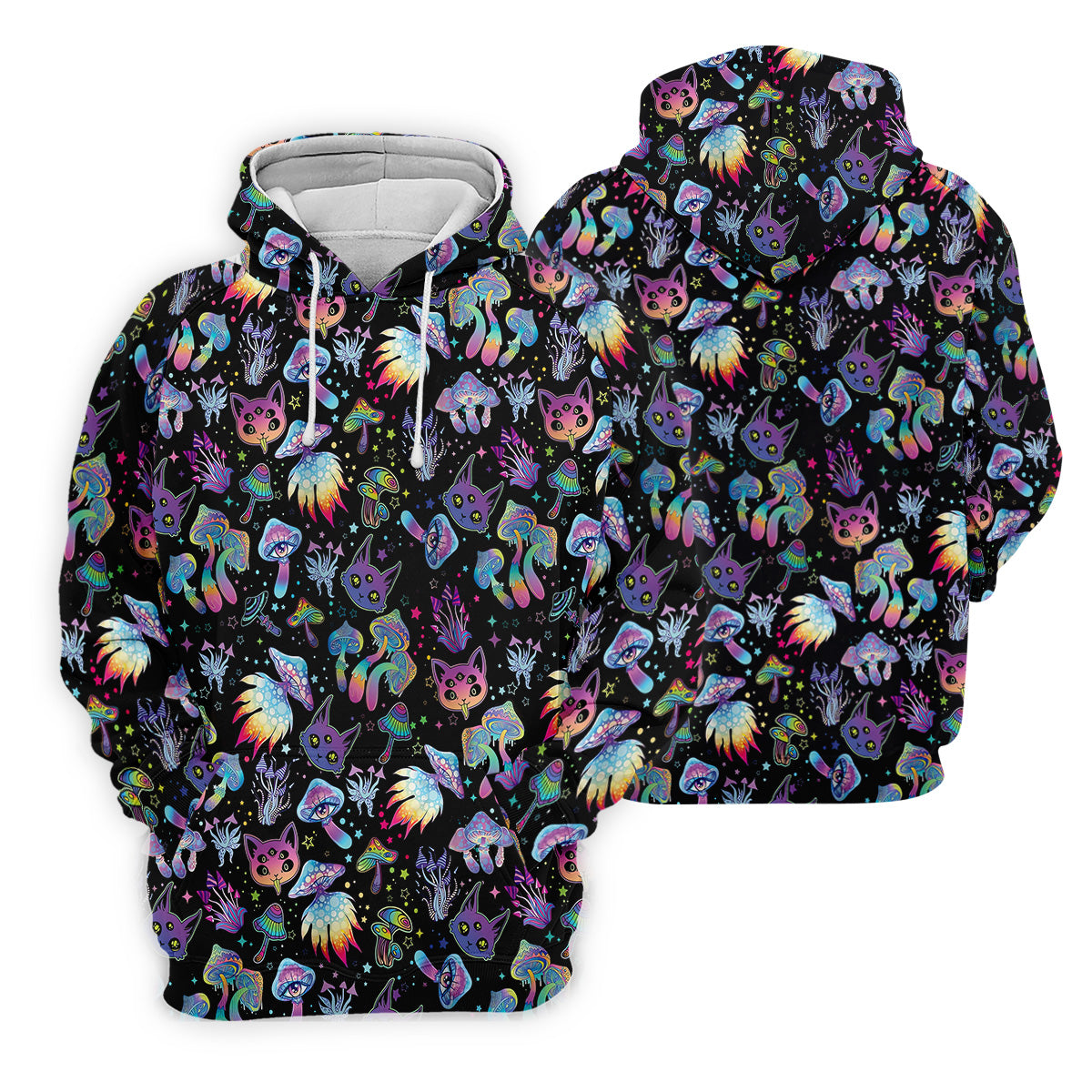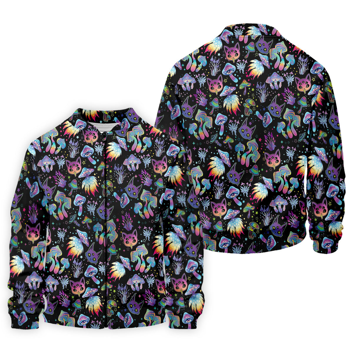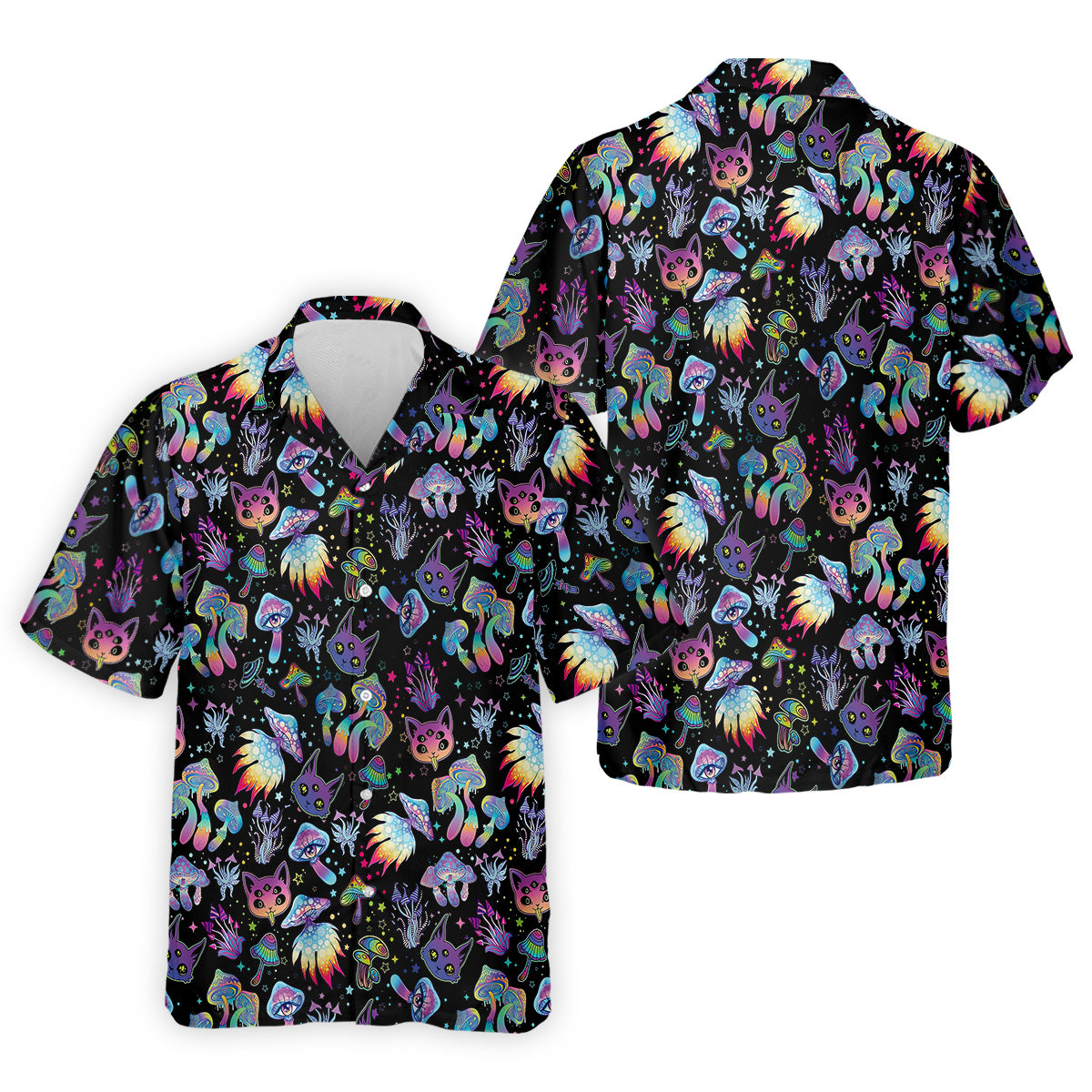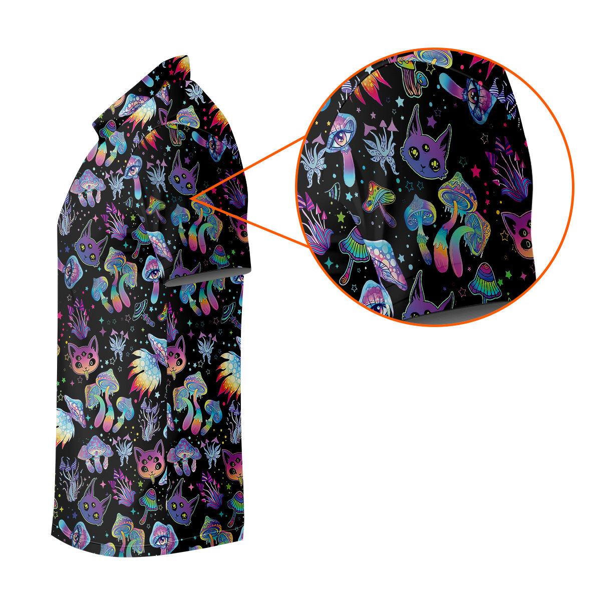 Funny Neon Cat Alien Mushroom Golf Tops For Men, Cute Golf Outfit, Polo Shirts For Men, Golfing Apparel