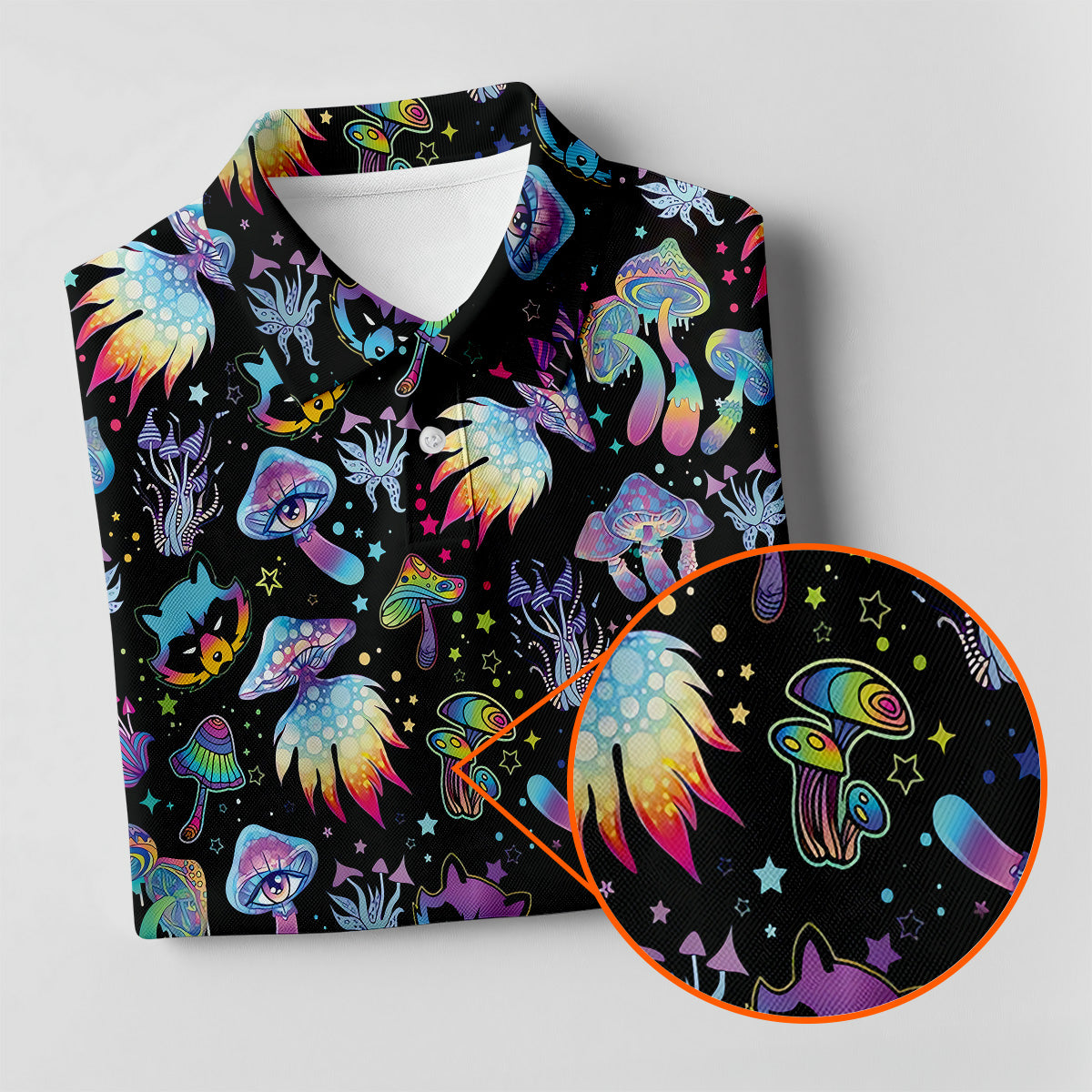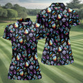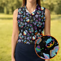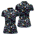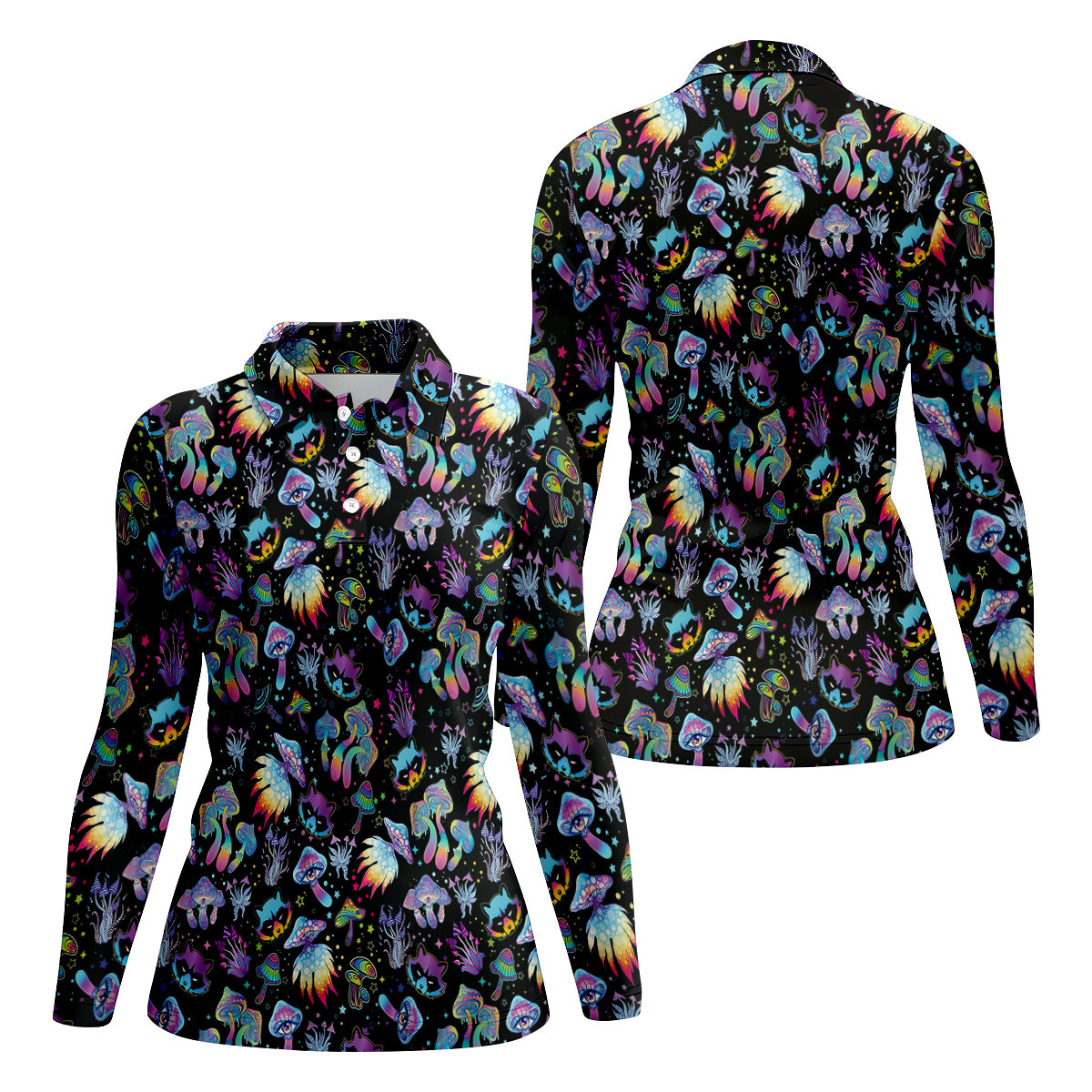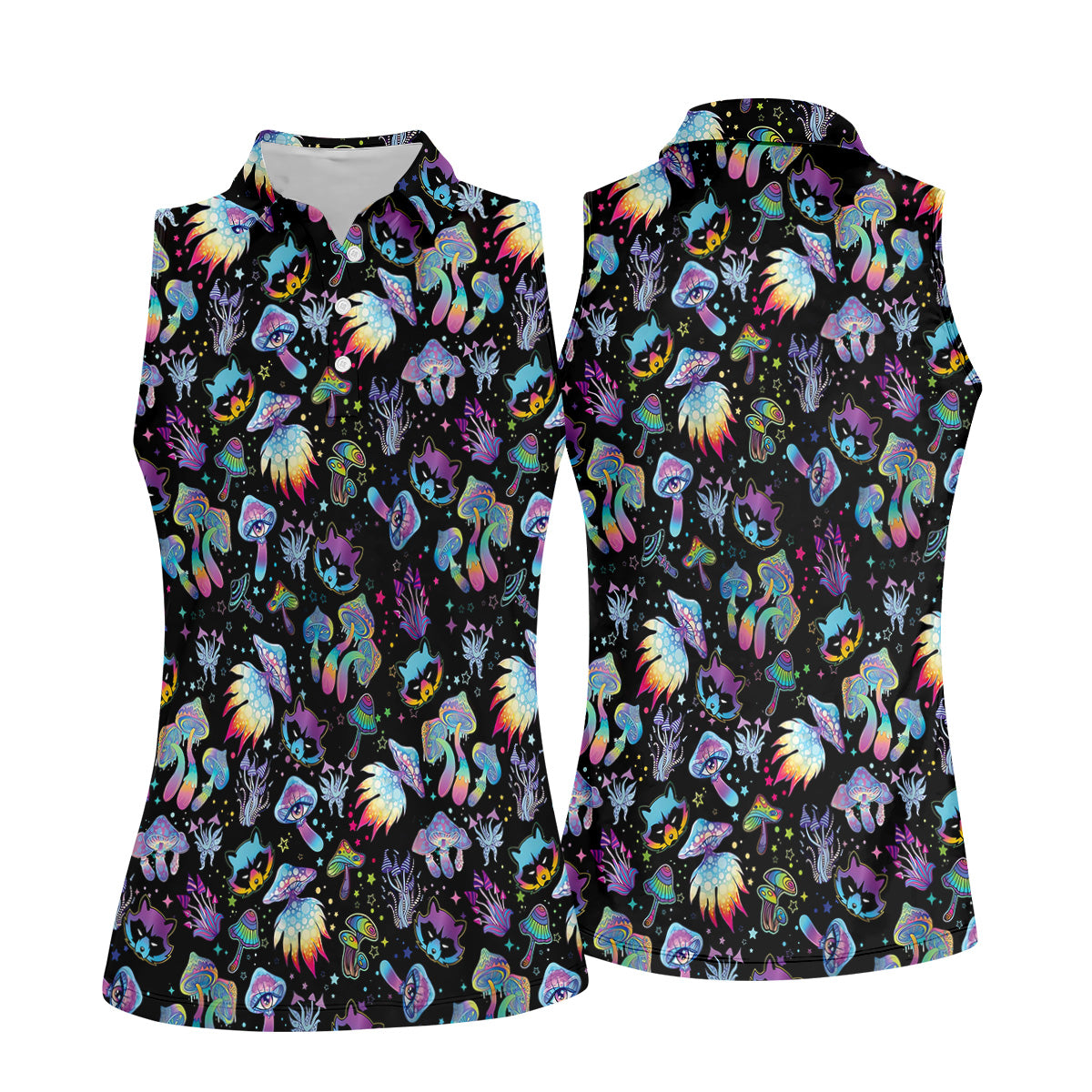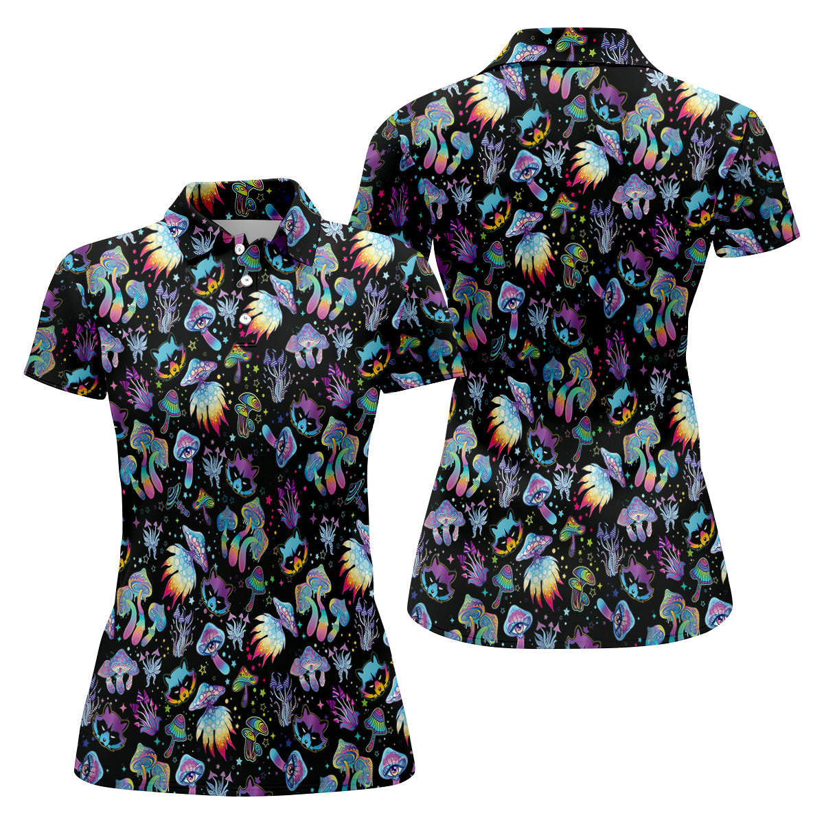 Funny Neon Cat Alien Mushroom Women Golf Shirt, Ladies Golf Polos, Cool Golf Gift