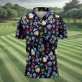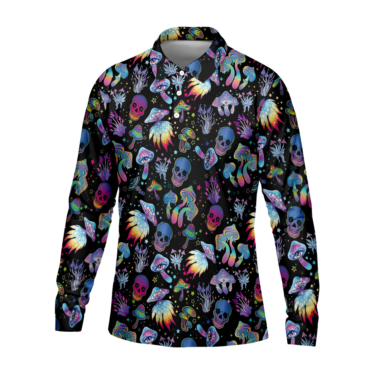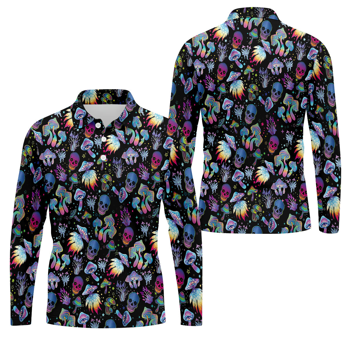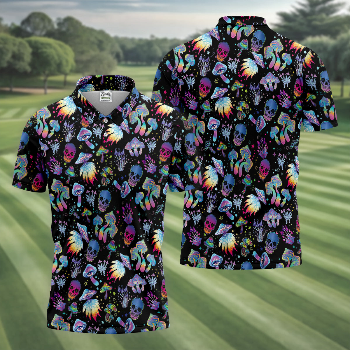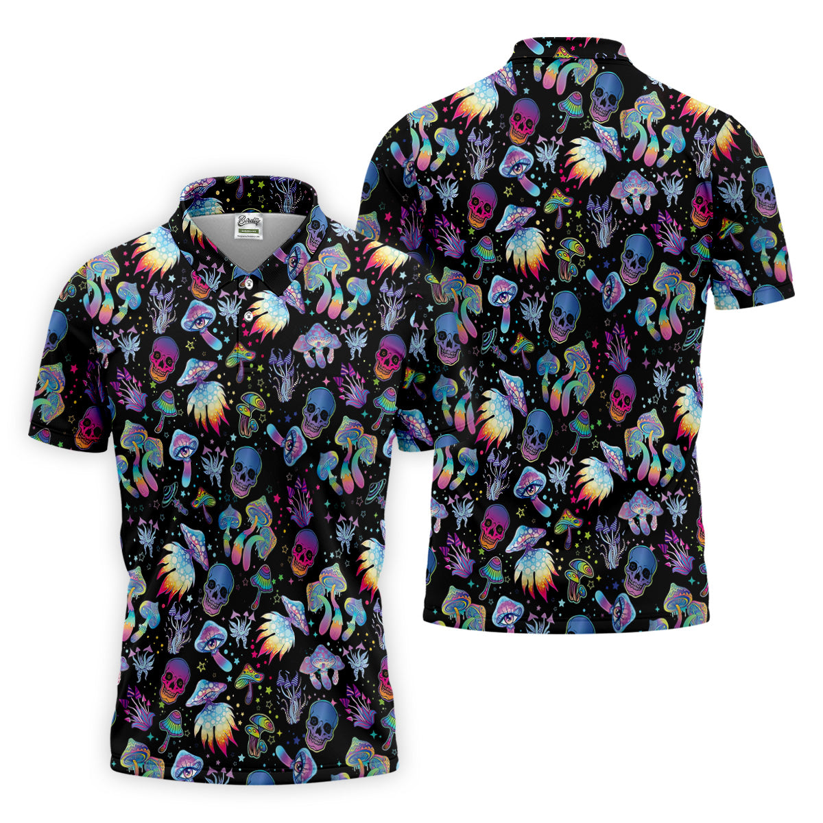 Funny Neon Skull Alien Mushroom Golf Tops For Men, Halloween Polo Shirts, Polo Shirts For Men