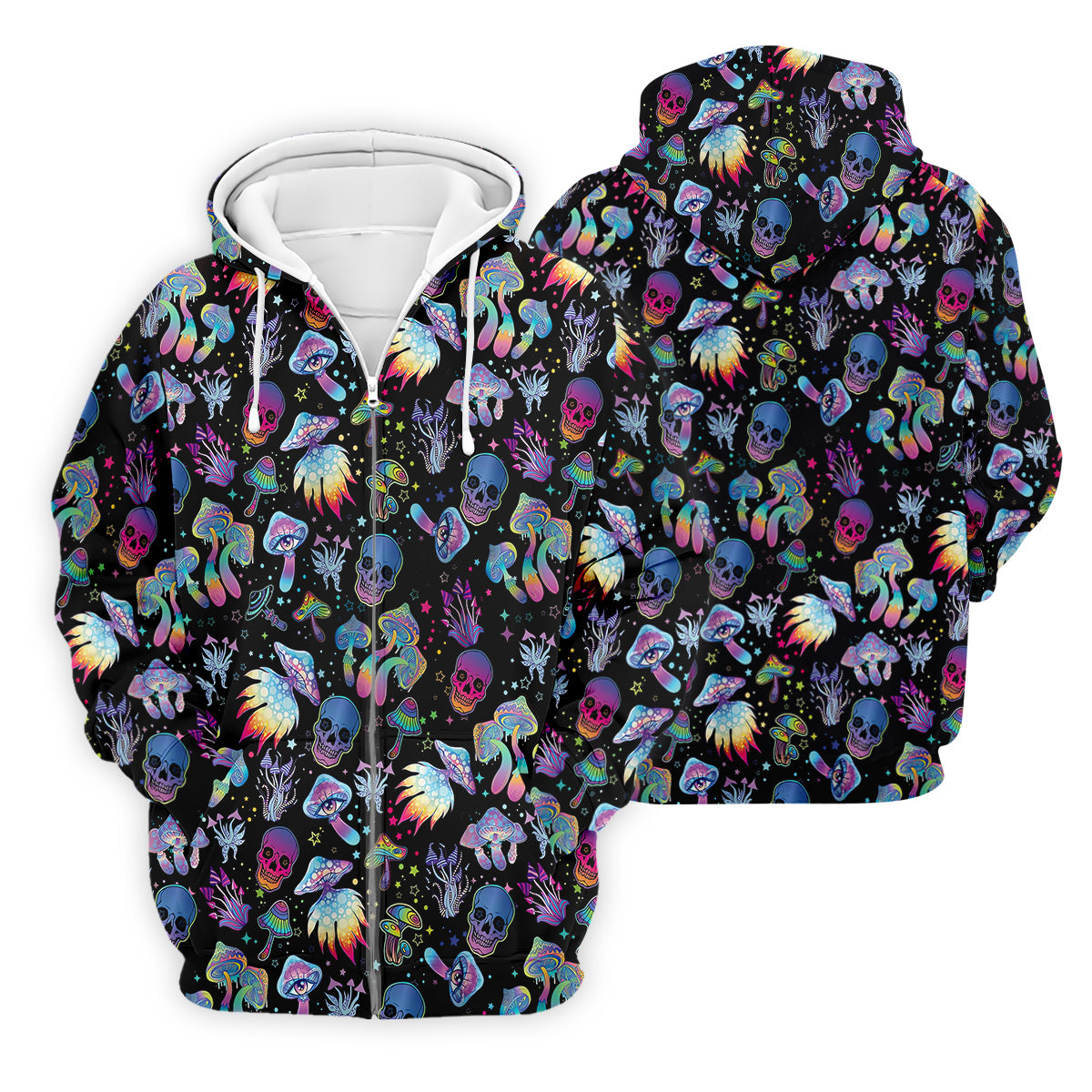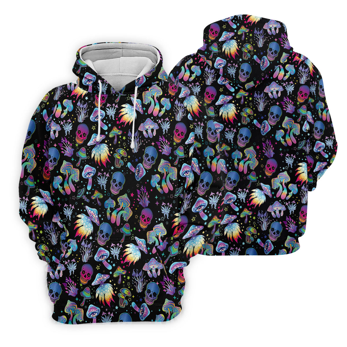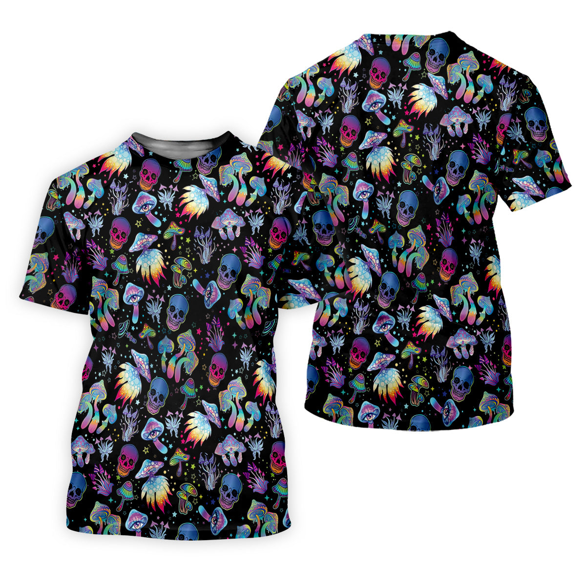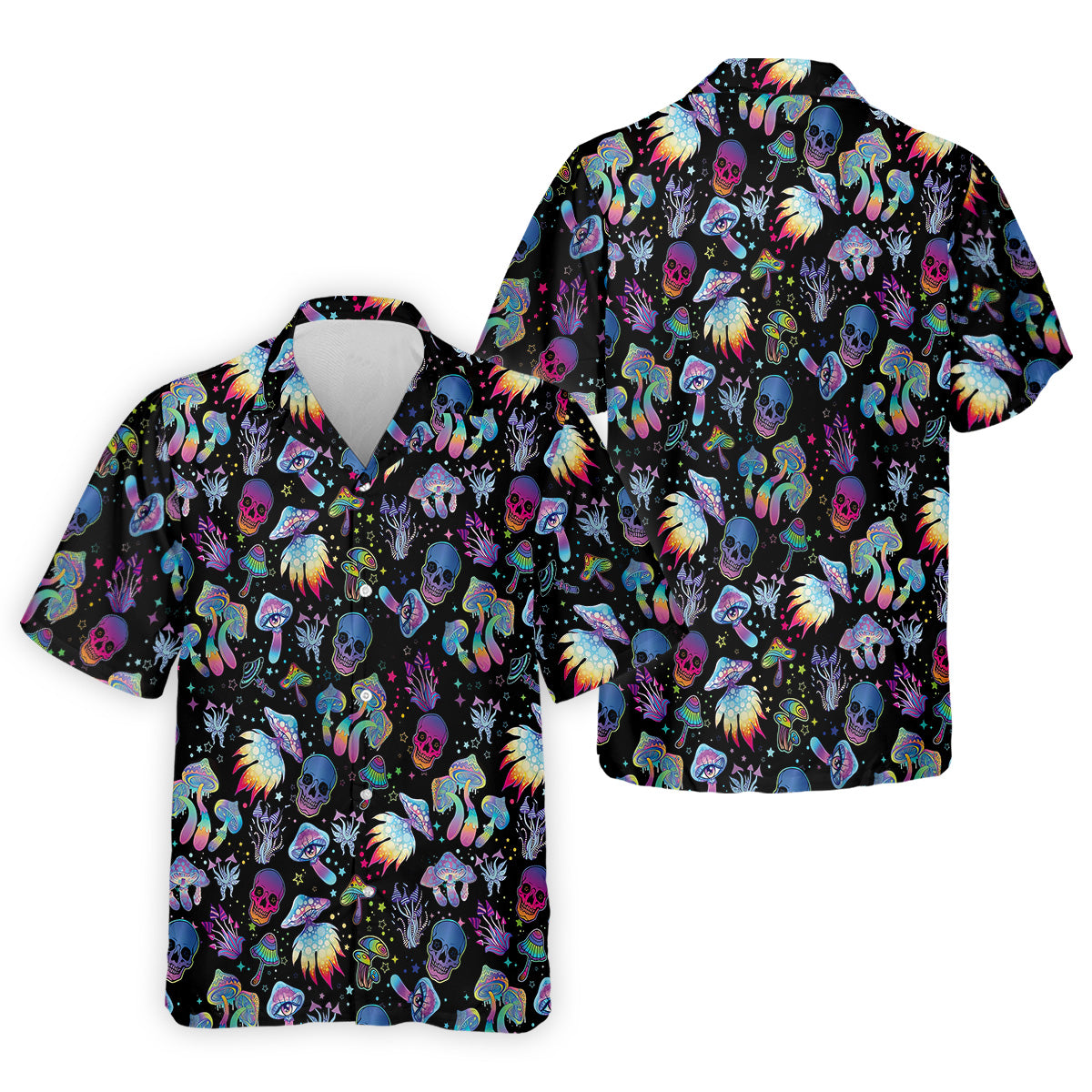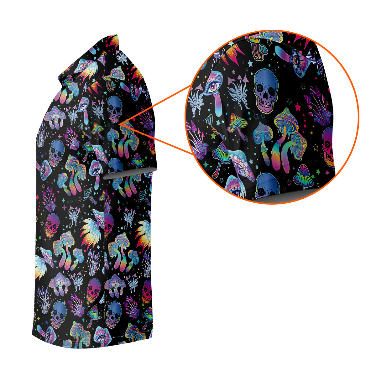 Funny Neon Skull Alien Mushroom Golf Tops For Men, Halloween Polo Shirts, Polo Shirts For Men