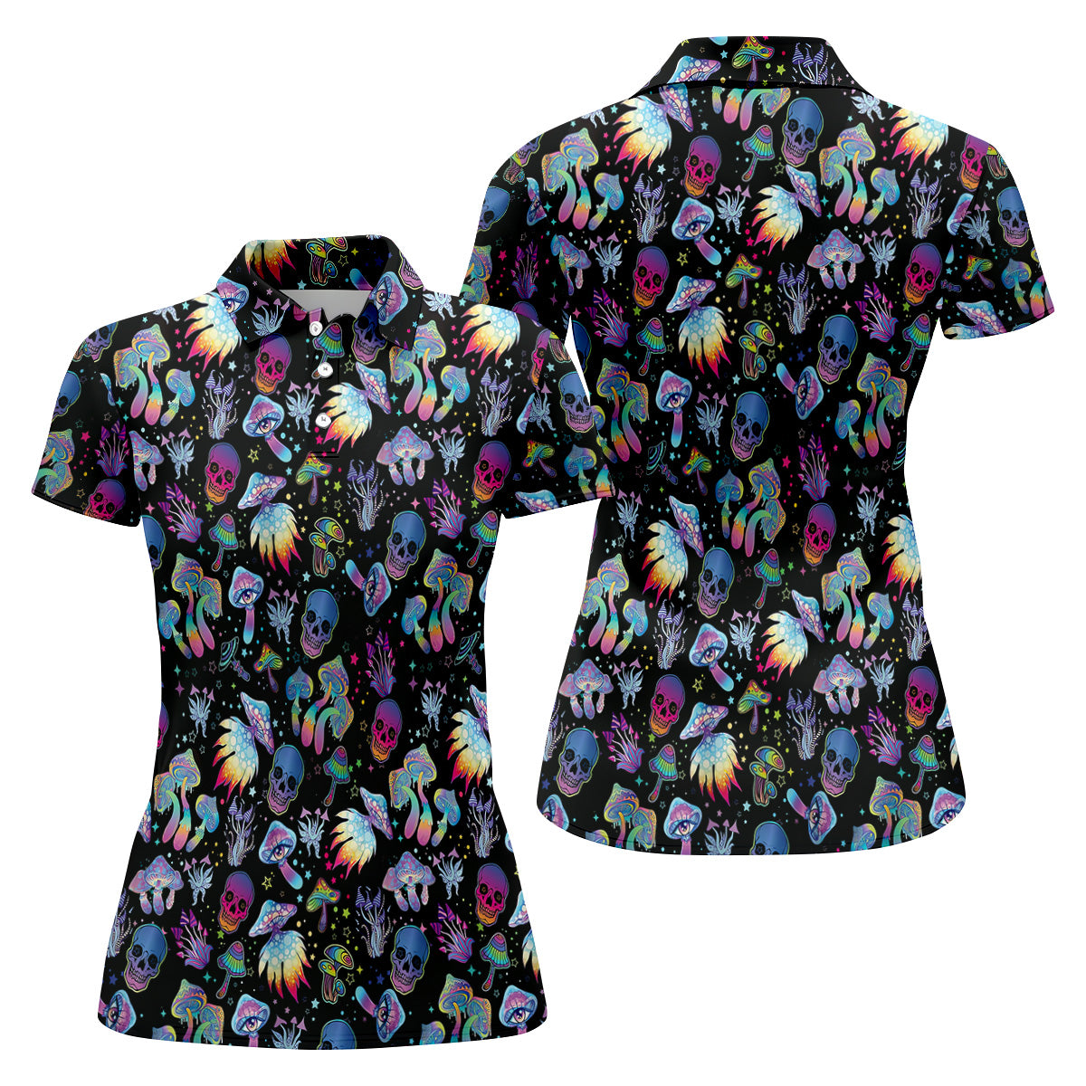 Funny Neon Skull Alien Mushroom Halloween Polo Shirts, Women Golf Shirt, Ladies Golf Polos