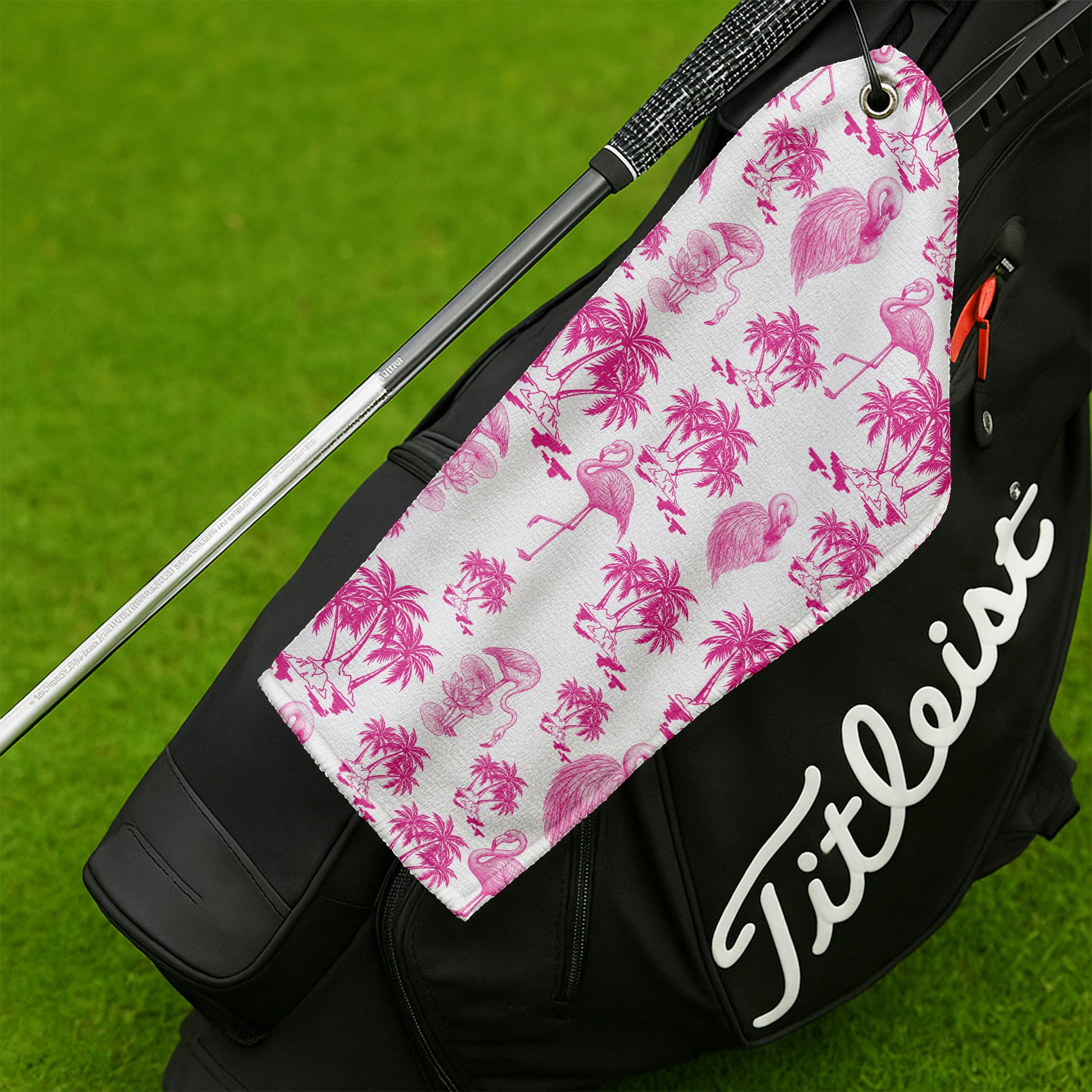 Funny Pink Flamingo Coconut Golf Towel, Golf Rag, Unique Gift Ideas For Men, Christmas Golf Gift
