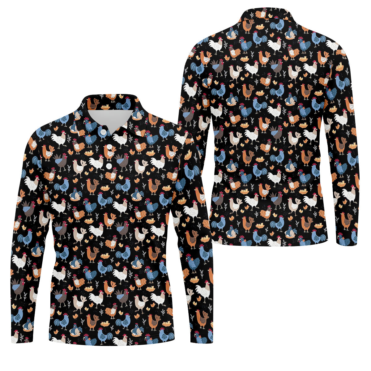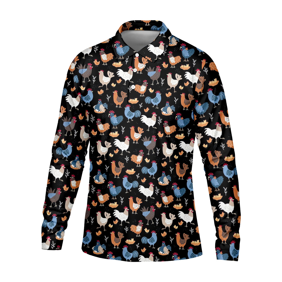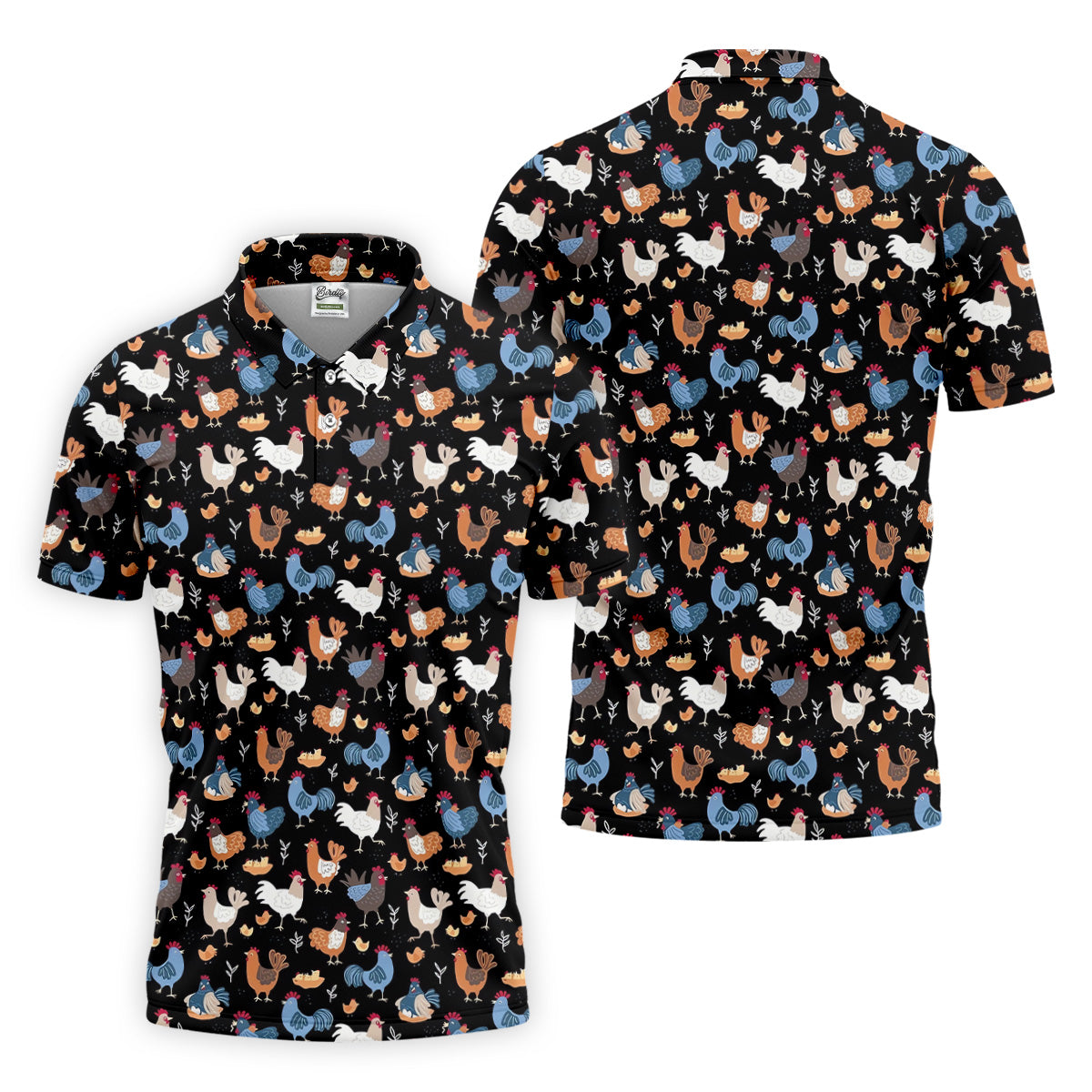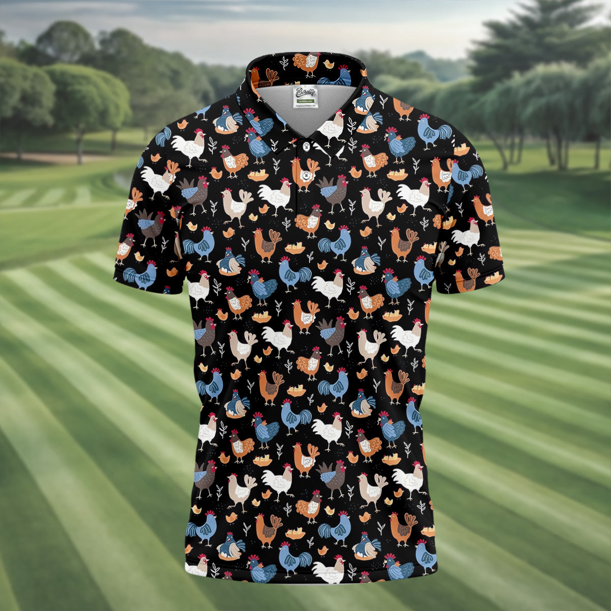 Funny Rooster Black Golf Polo Shirt, Fun Golf Shirts For Men, Gift For Chicken Lover, Golfing Apparel