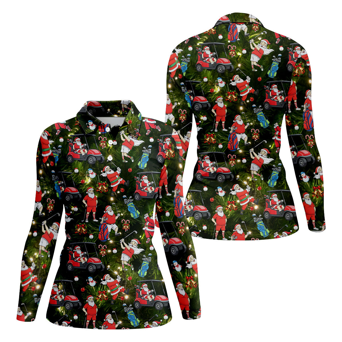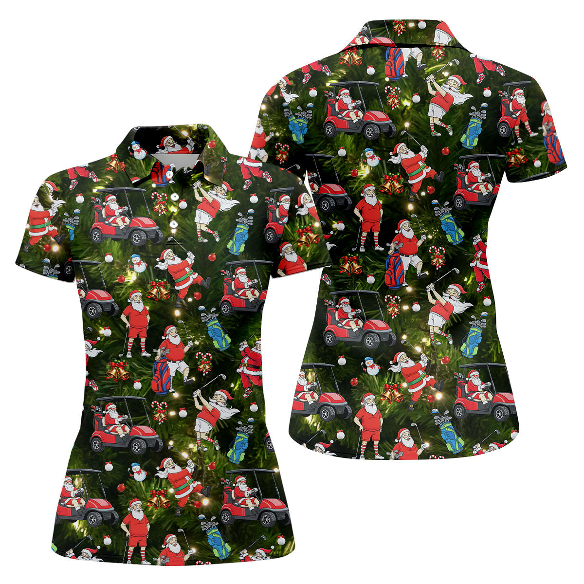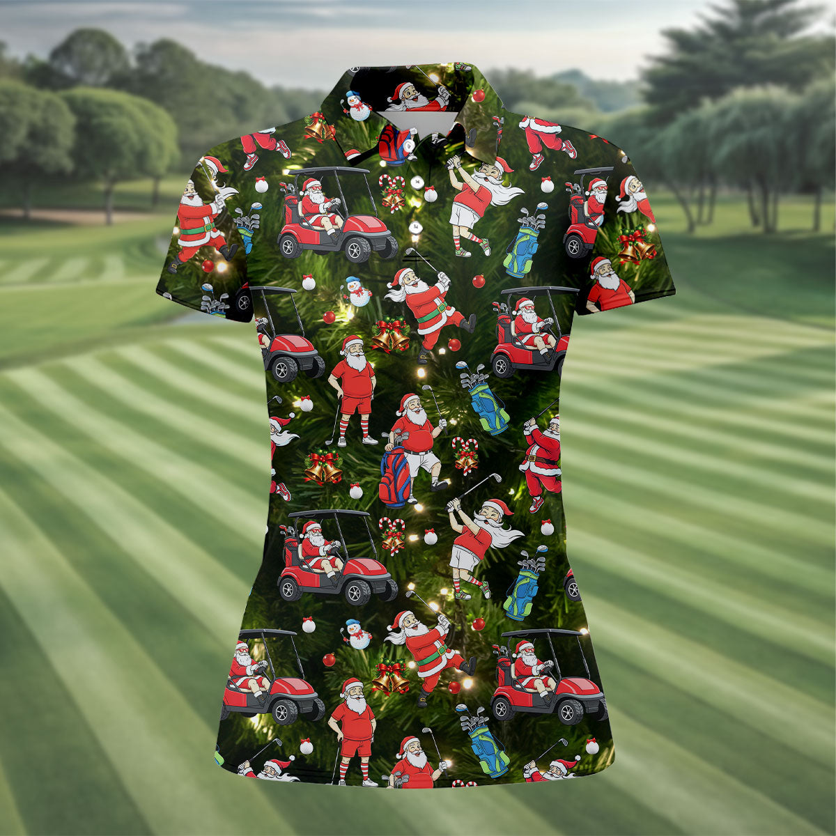 Funny Santa Claus Golf Pose Women's Golf Tops, Christmas Golf Shirt, Christmas Golf Gift