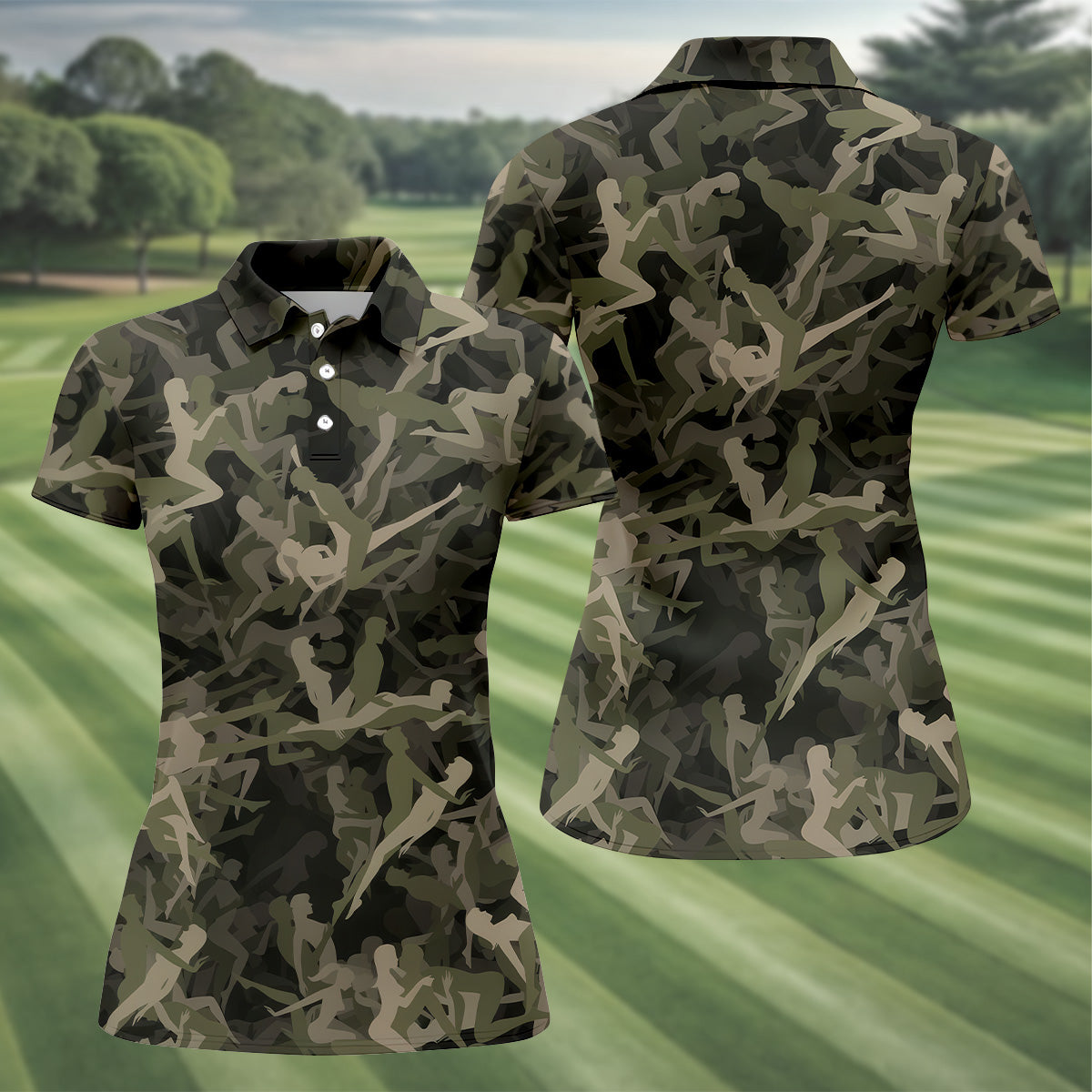 Funny Couple Camo Womens Golf Tops, Unique Gift For Golfer, Ladies Golf Polos