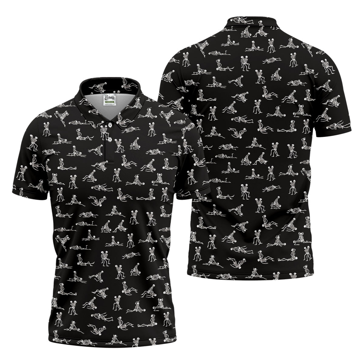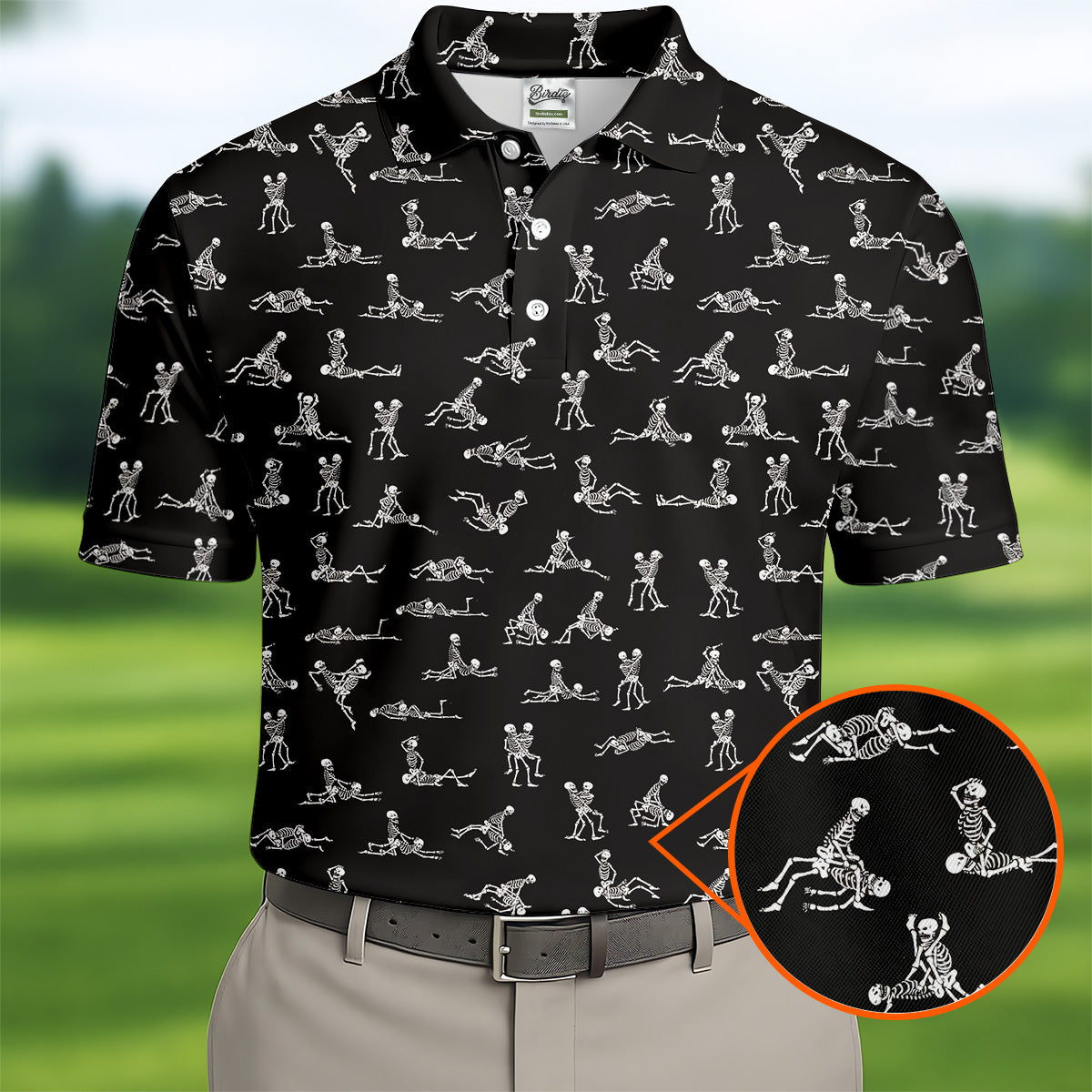 Funny Skeleton Couple Golf Shirt, Halloween Gift Idea, Fun Golf Shirts For Men, Unique Gift For Golfer