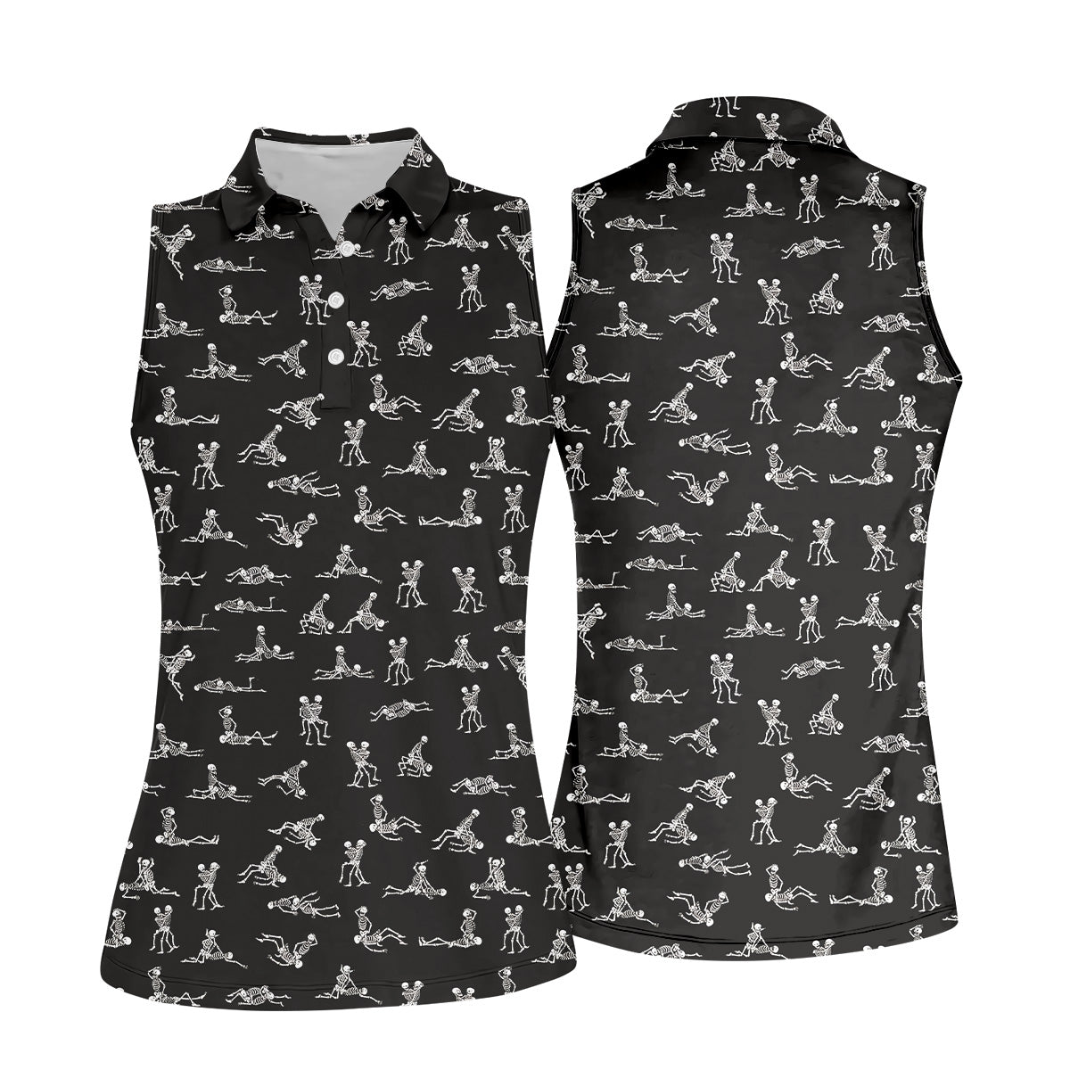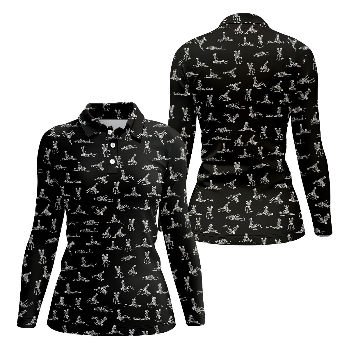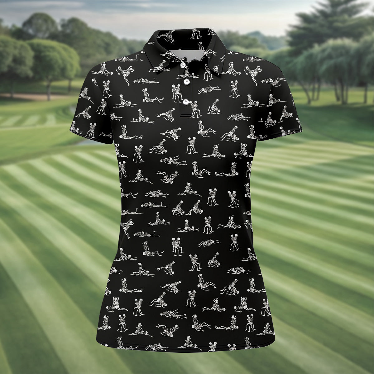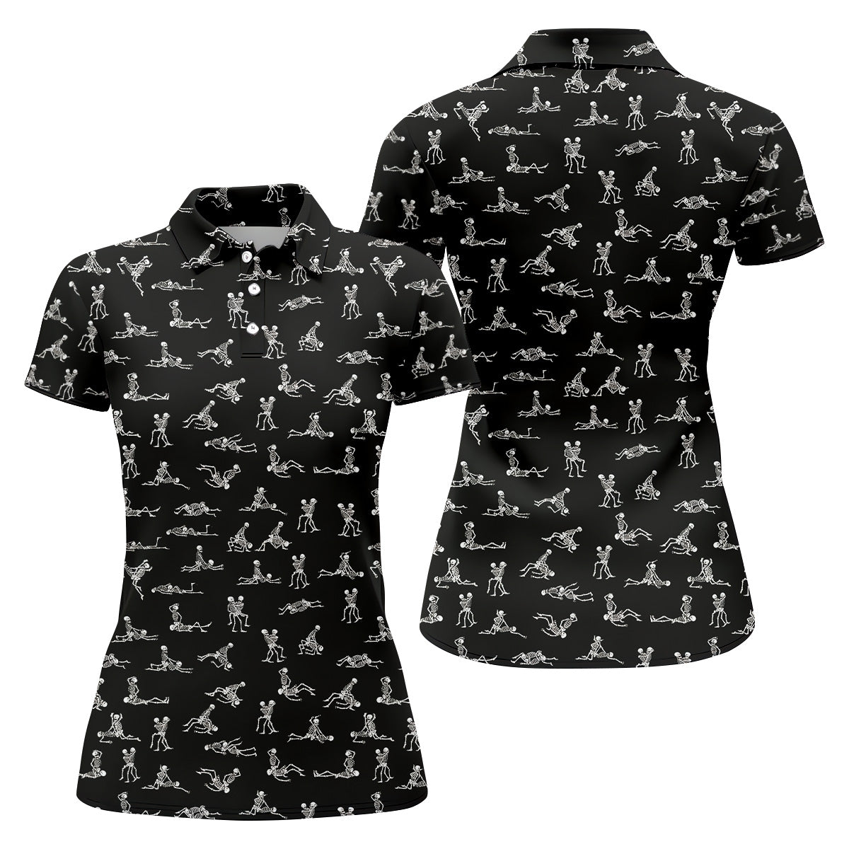 Funny Skeleton Couple Golf Shirt, Halloween Gift Idea, Womens Golf Tops, Ladies Golf Shirts