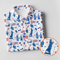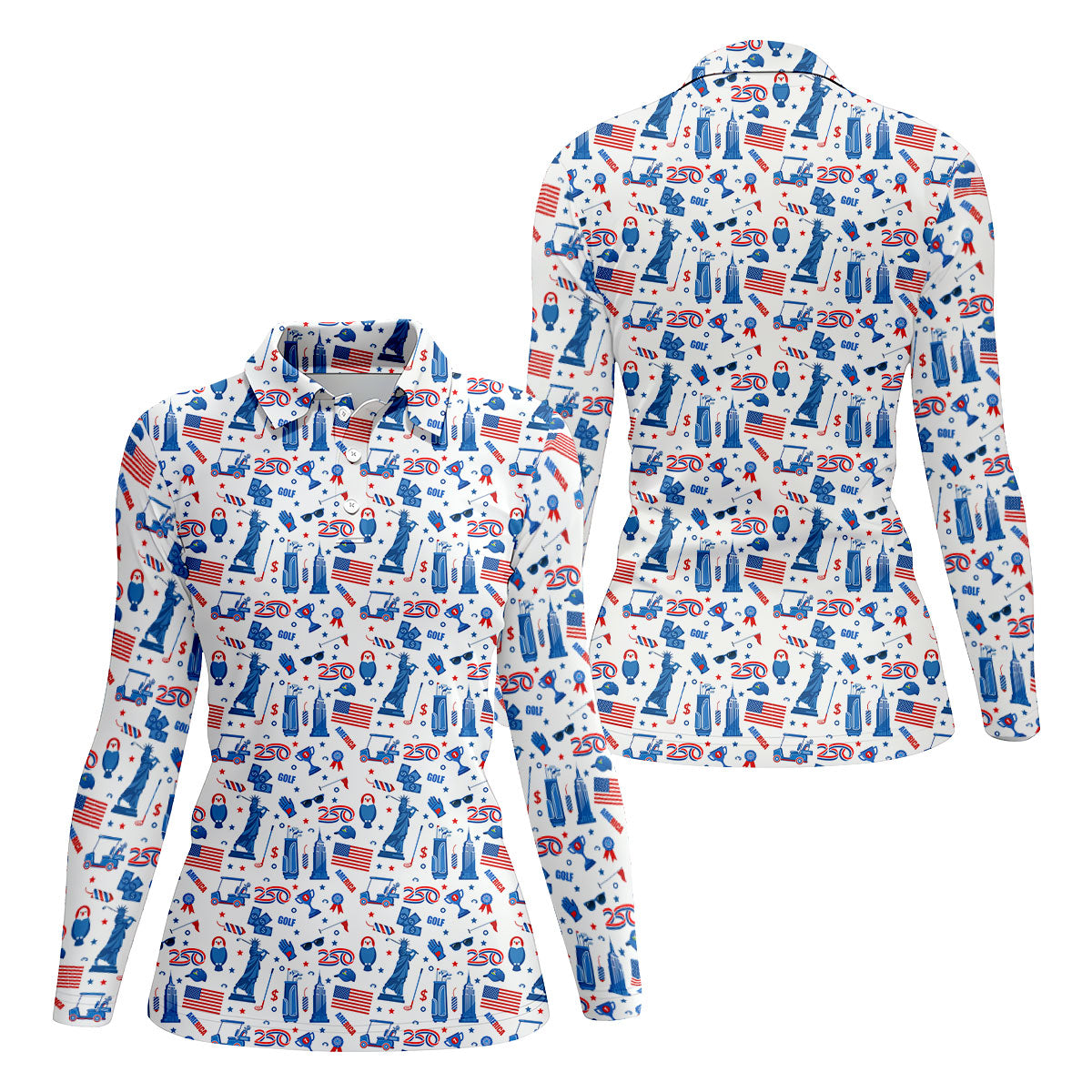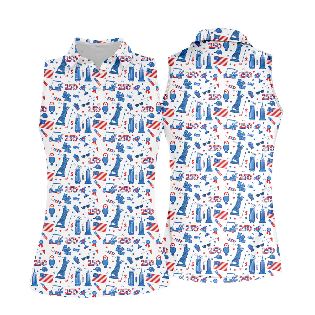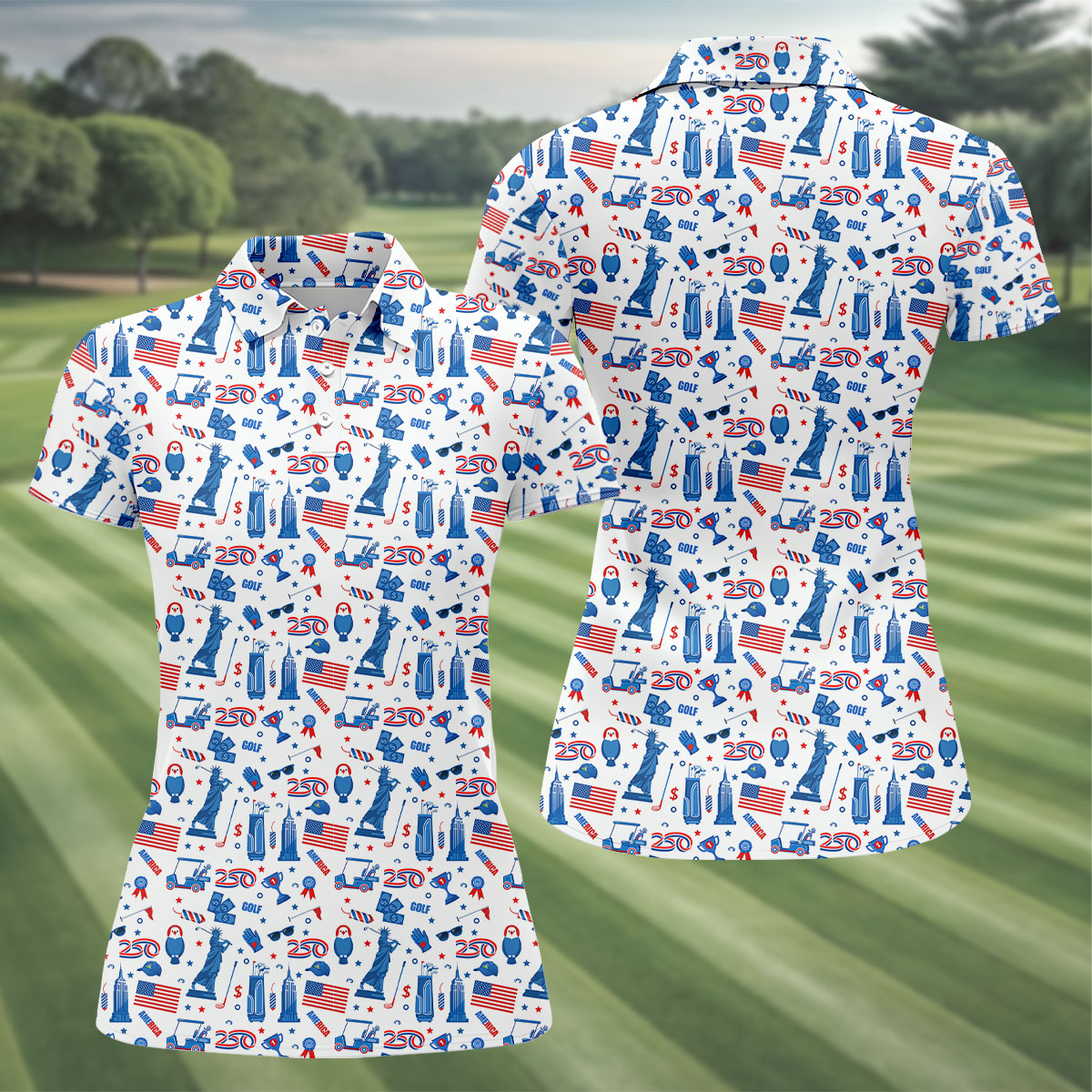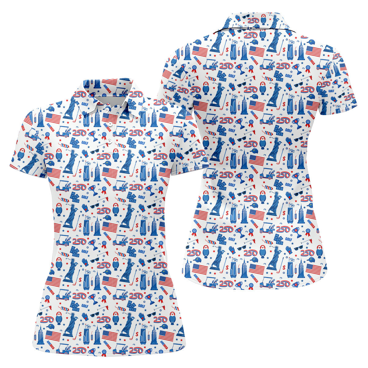 Funny Statue Of Liberty Golf Pose 4th Of July Red White Blue Women Golf Top, 250th Anniversary Patriotic Golf Shirt
