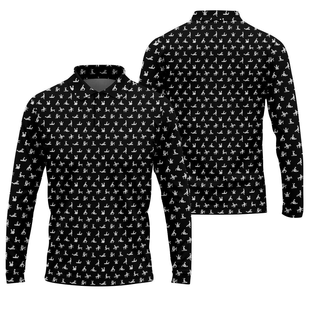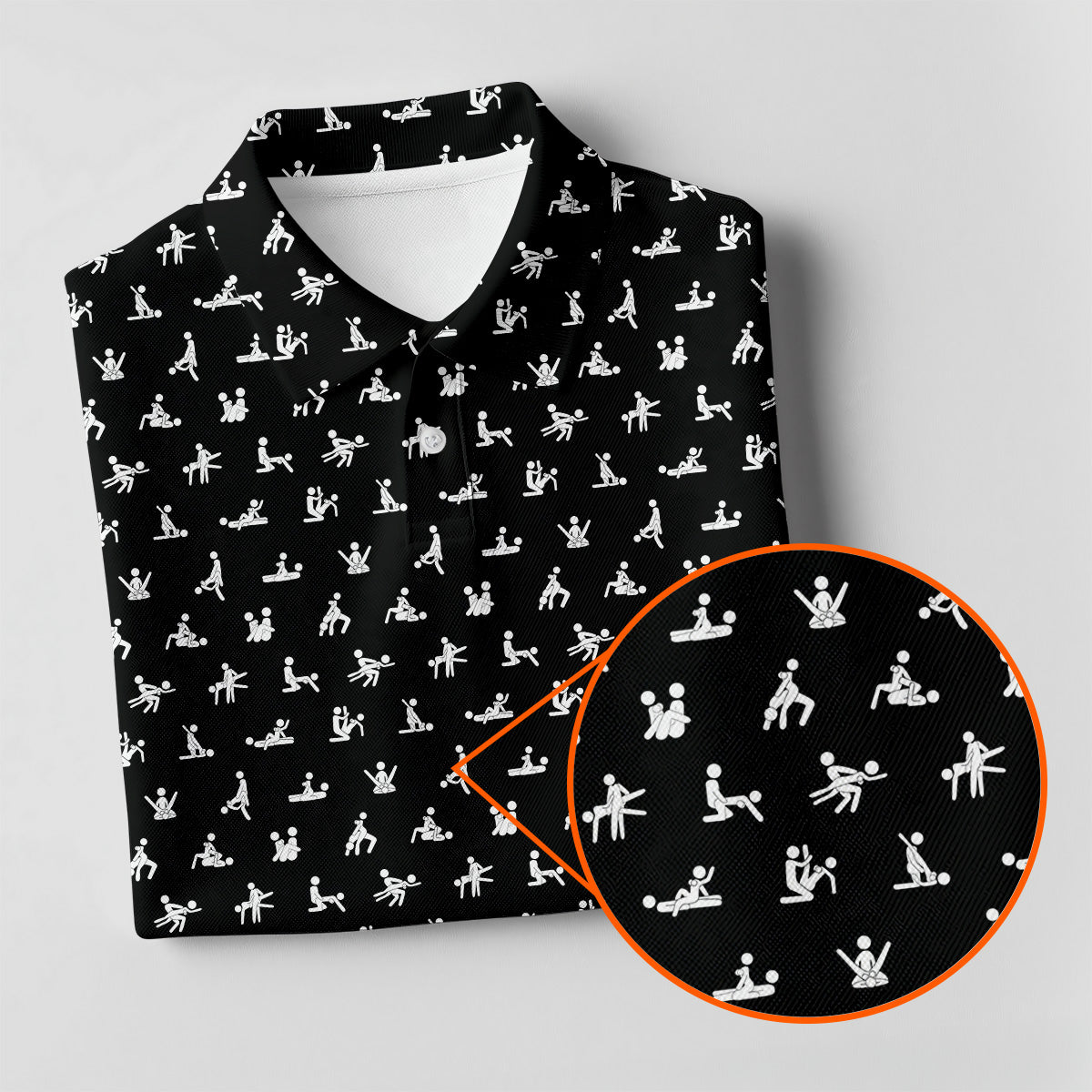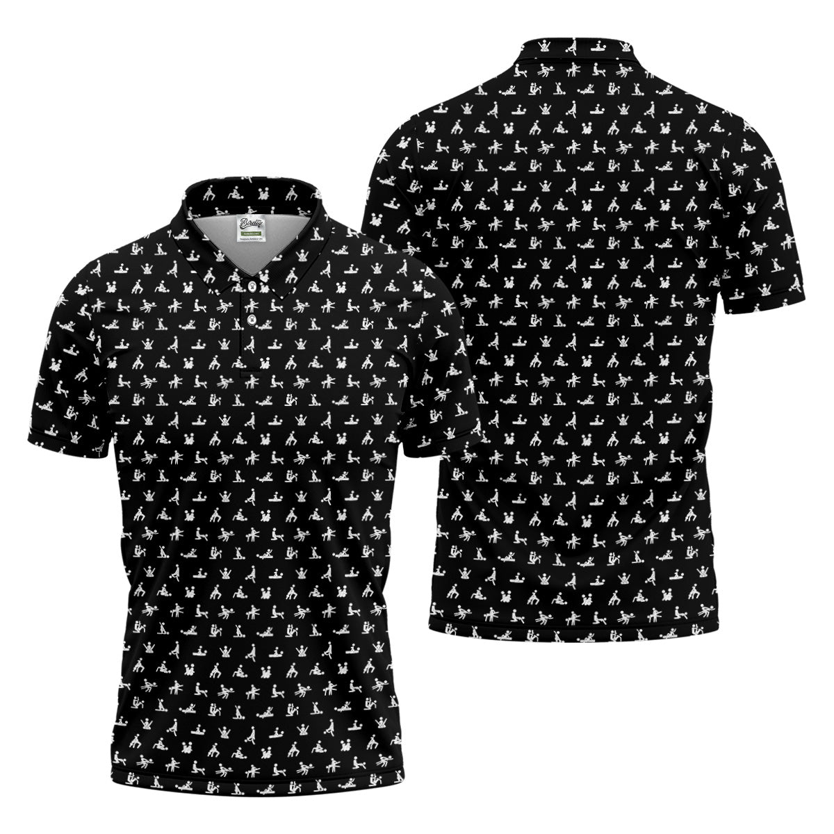 Funny Stick Figure Black And White Men's Golf Polo Shirt, Funny Position Golf Polo, Fun Men Golf Shirts