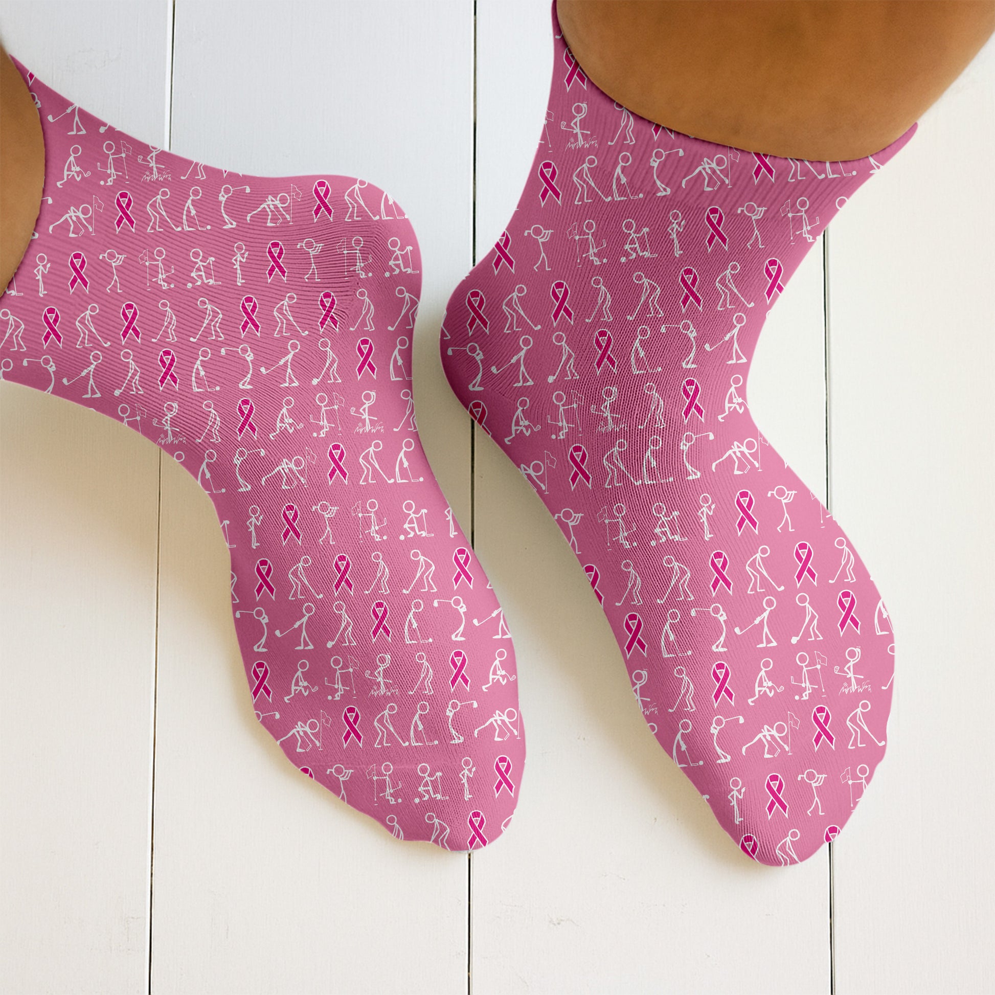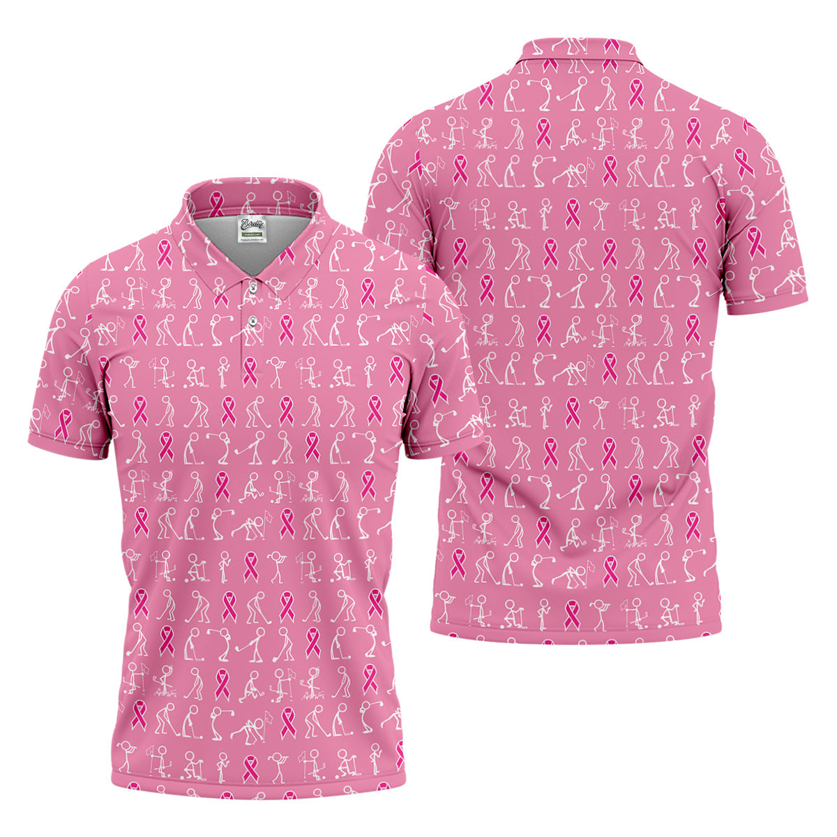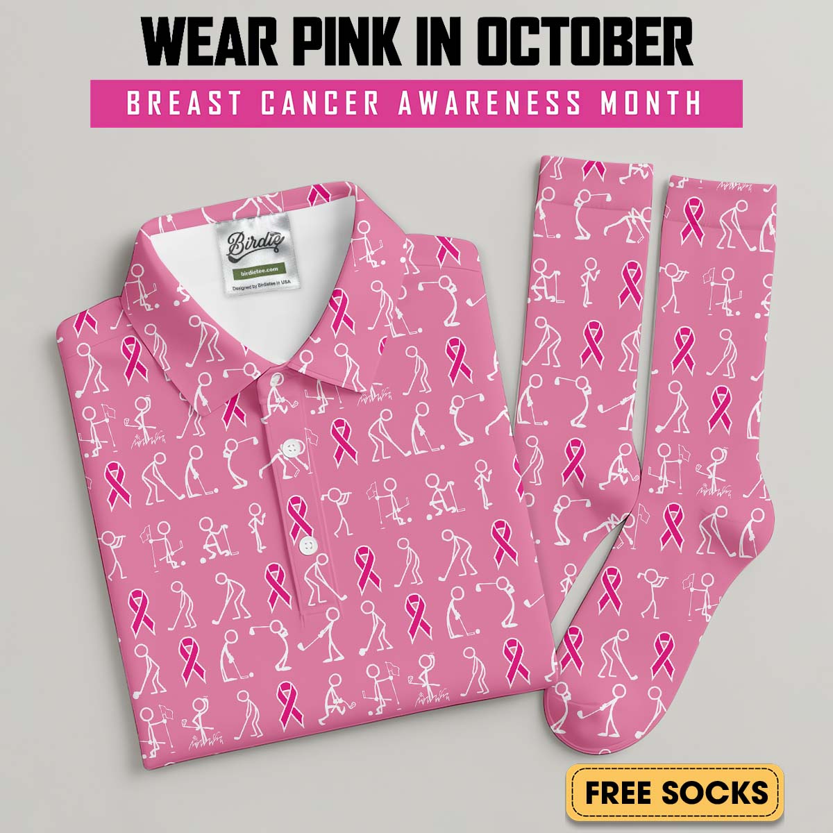 Funny Stick Figure Men's Golf Shirt With Socks Free, Breast Cancer Awareness Gift