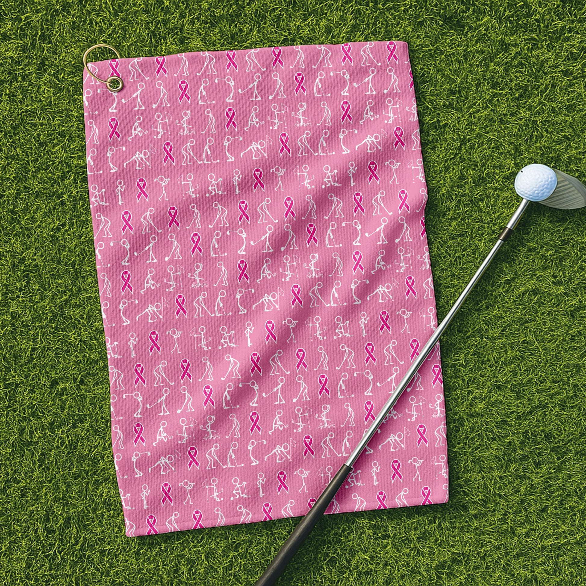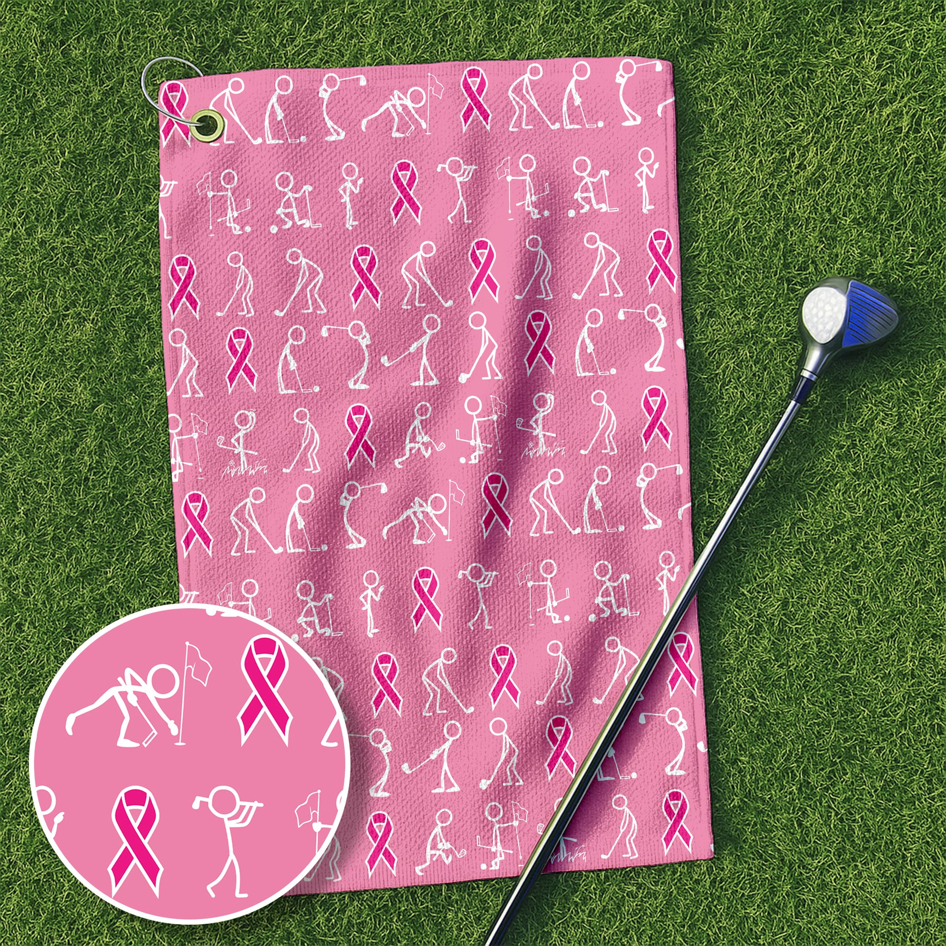 Funny Stick Figure Golf Towel, Breast Cancer Golf Towel, Unique Gift For Golfer, Christmas Golf Gift, Golf Accessories