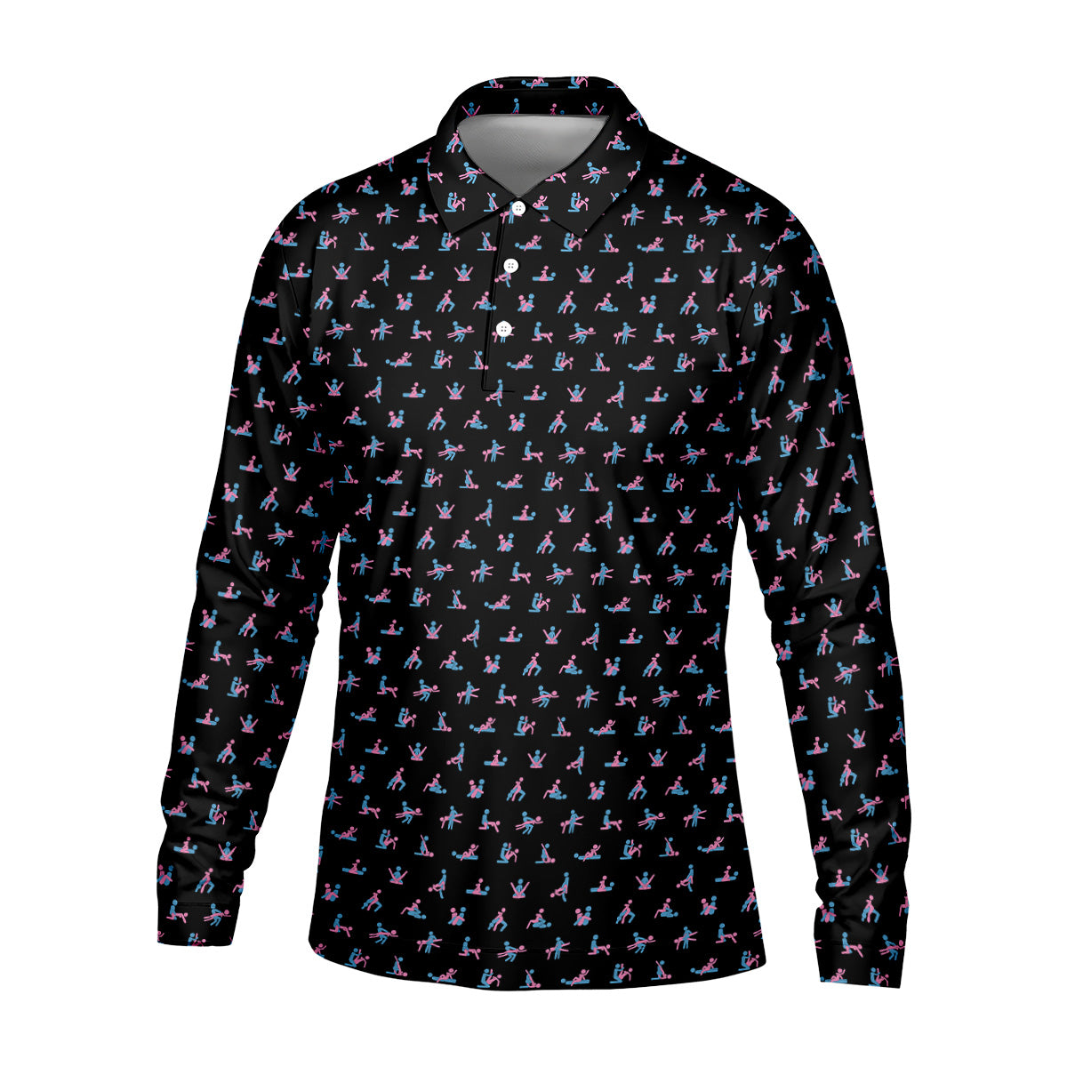 Funny Stick Figure Men's Golf Polo Shirt, Funny Position Golf Polo, Fun Men Golf Shirts, Golf Gift For Him