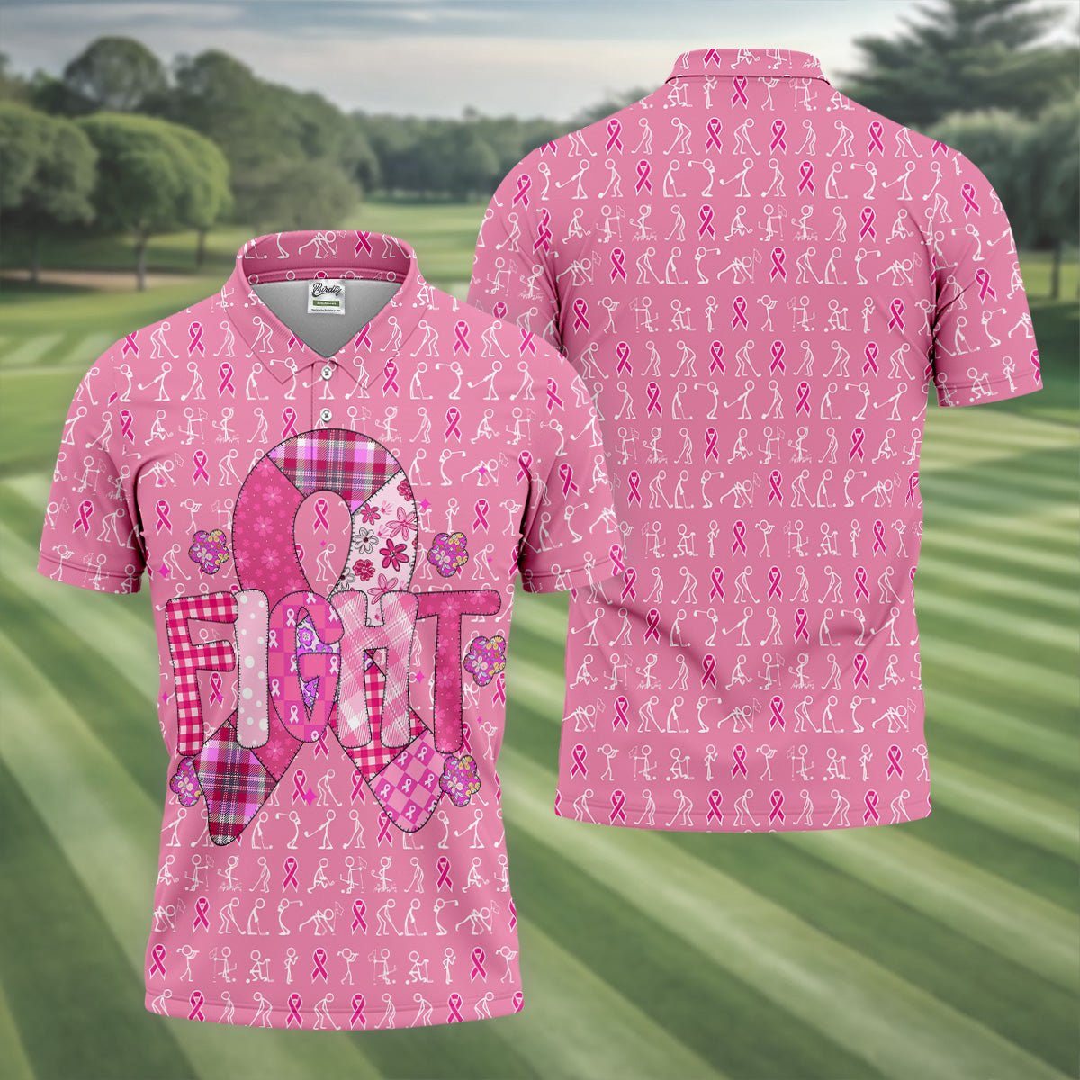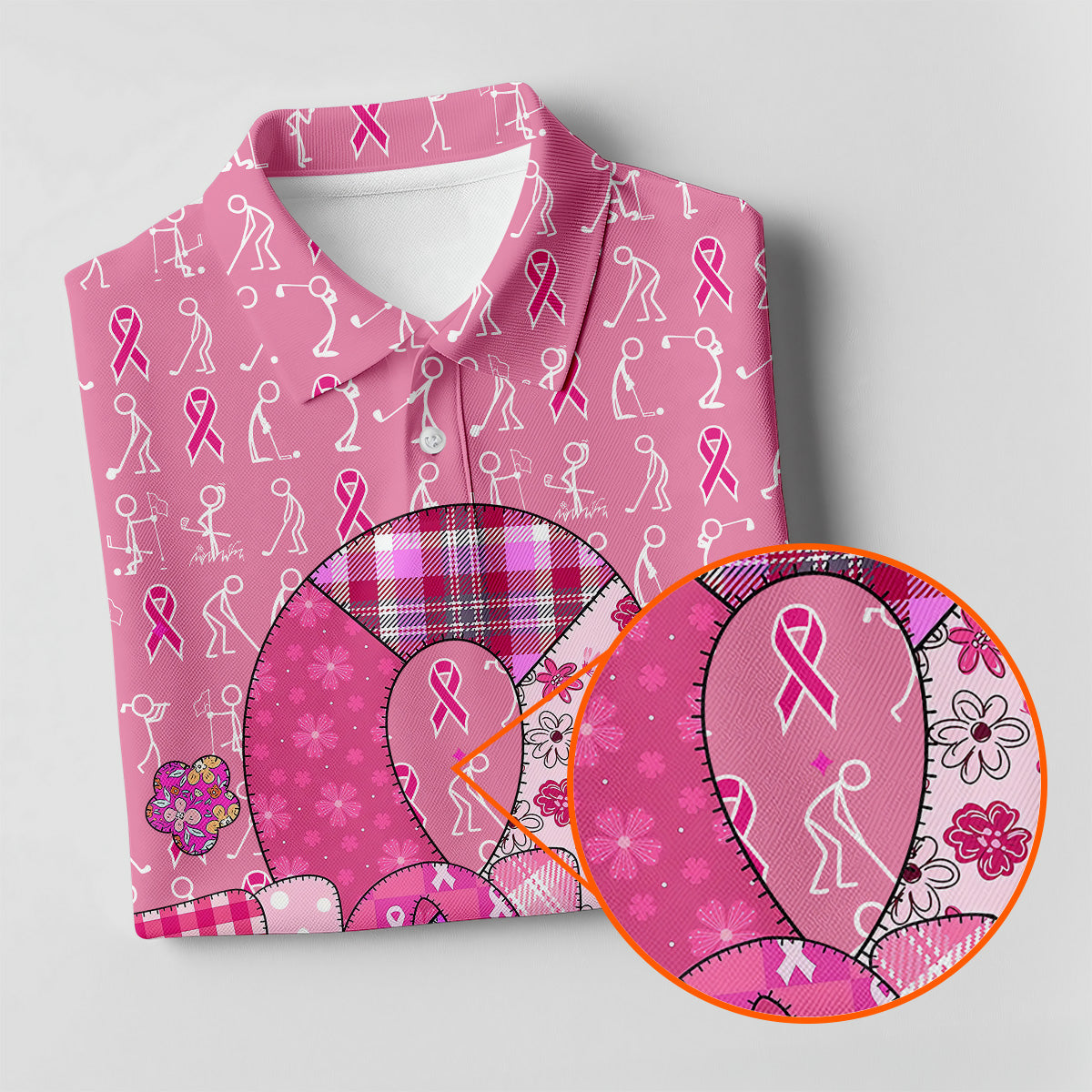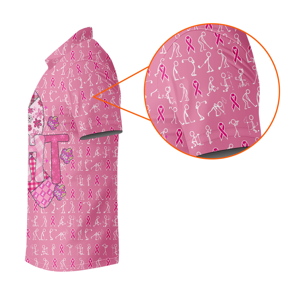 Funny Stick Figure Men's Golf Shirt, Breast Cancer Awareness Shirt, Polo Shirts For Men, Golfing Apparel