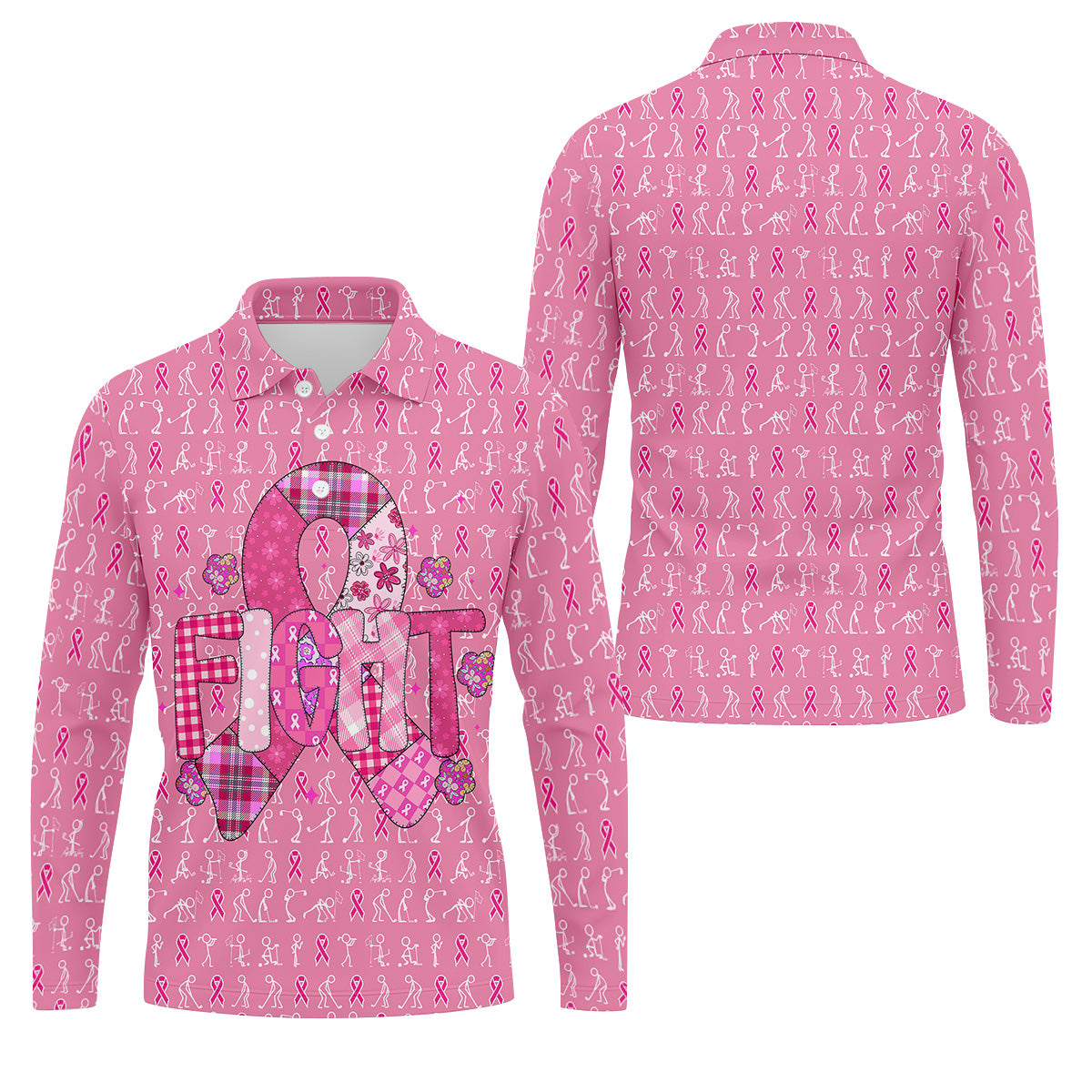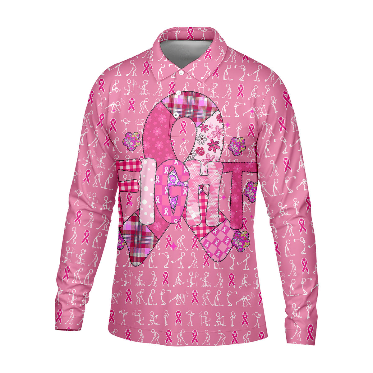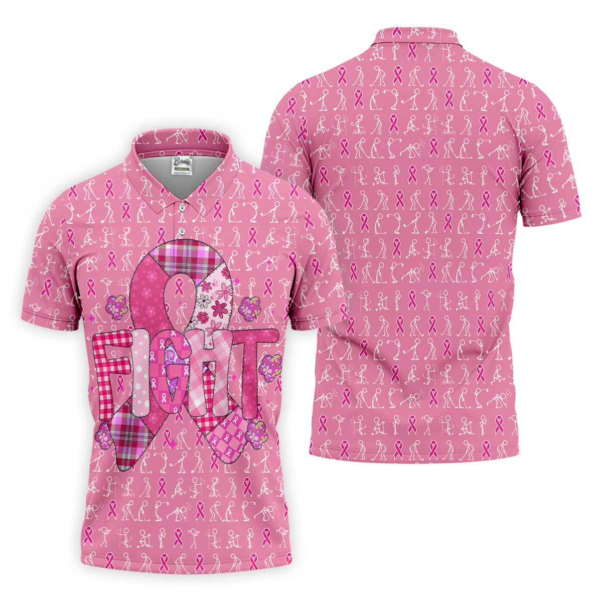 Funny Stick Figure Men's Golf Shirt, Breast Cancer Awareness Shirt, Polo Shirts For Men, Golfing Apparel