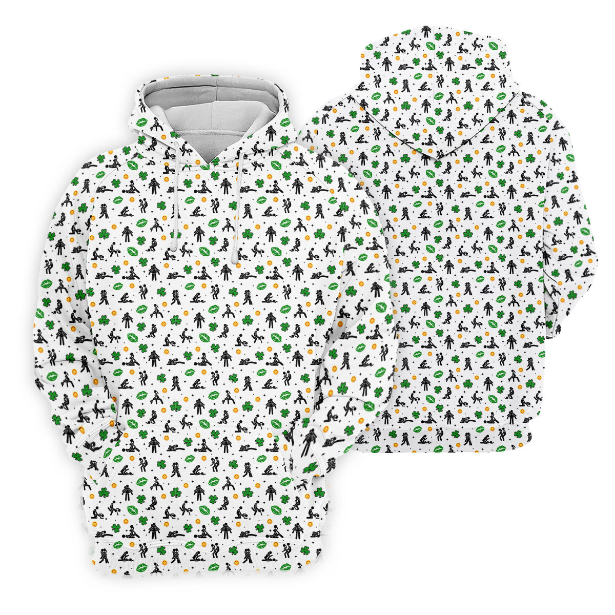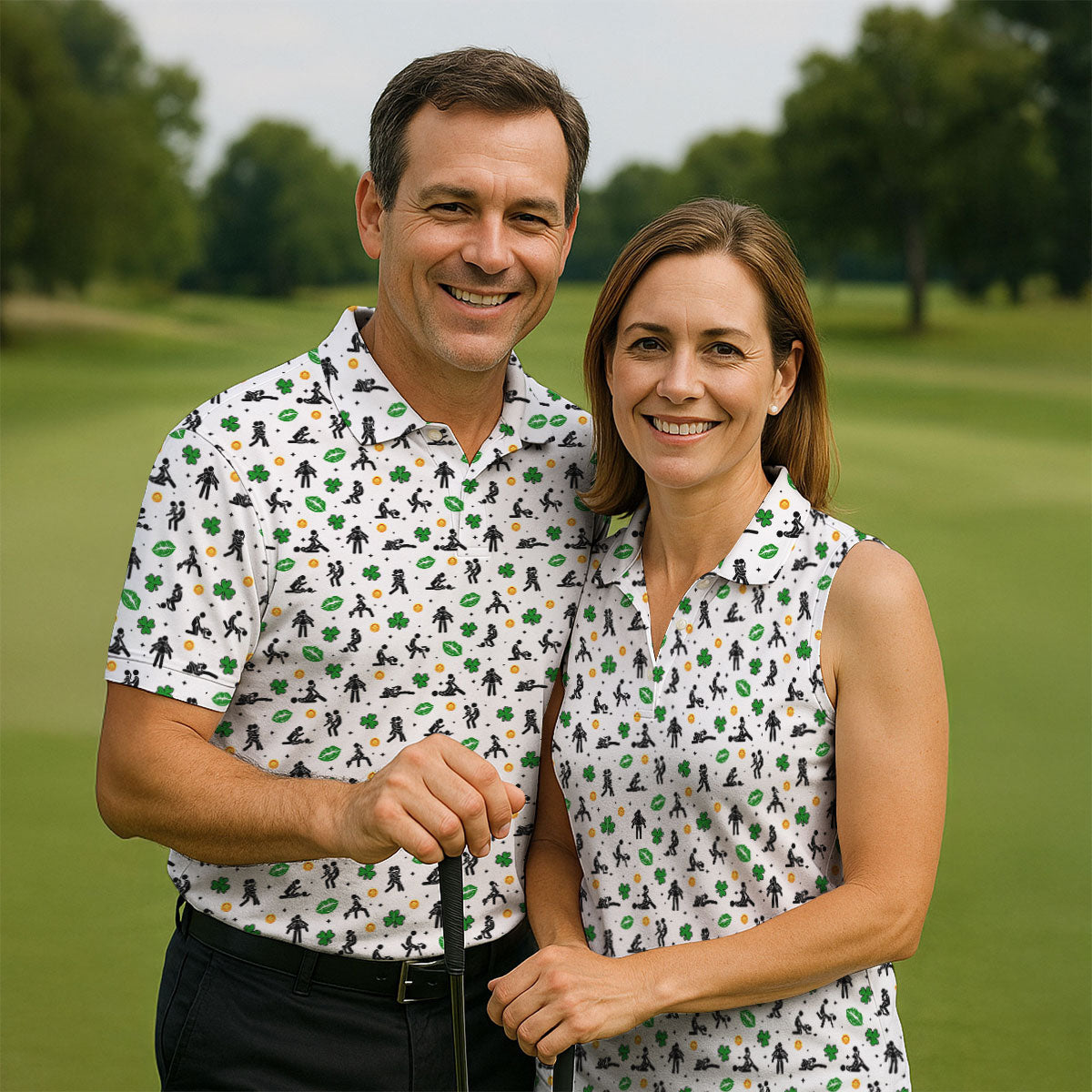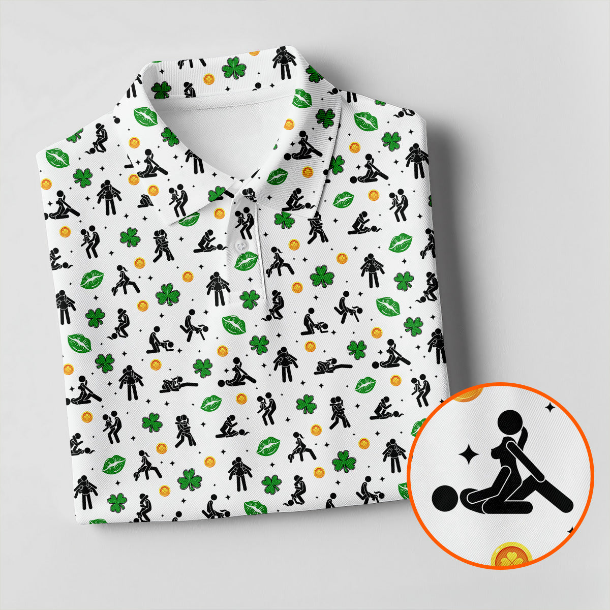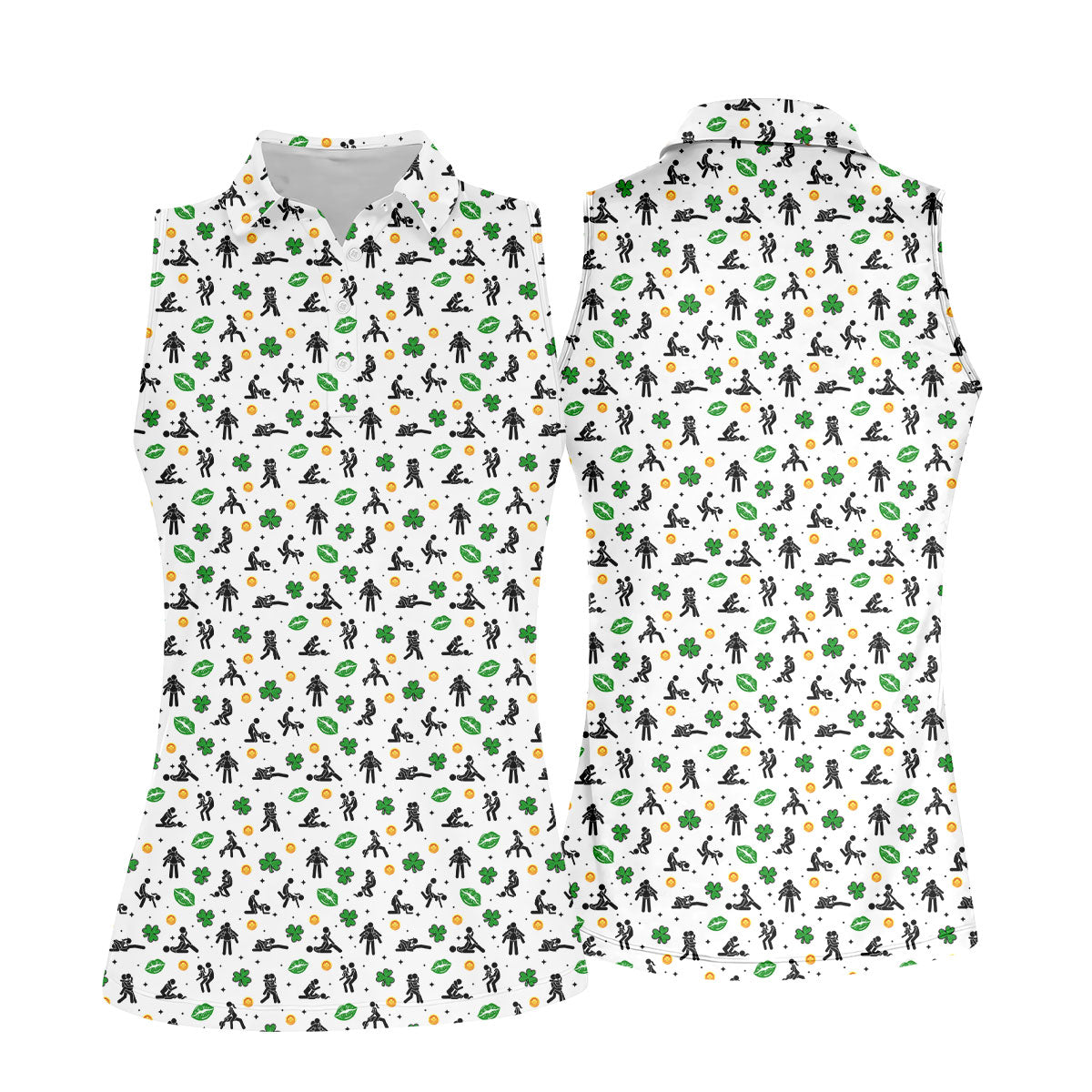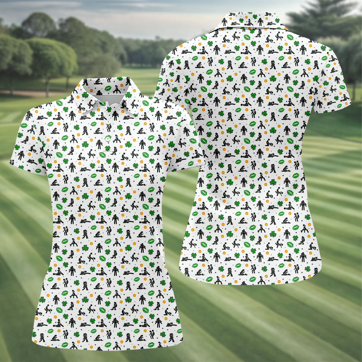 Funny Stick Figure Naughty Position Shamrock St Patrick's Day Golf Shirt, Women's Golf Tops, Ladies Golf Shirts