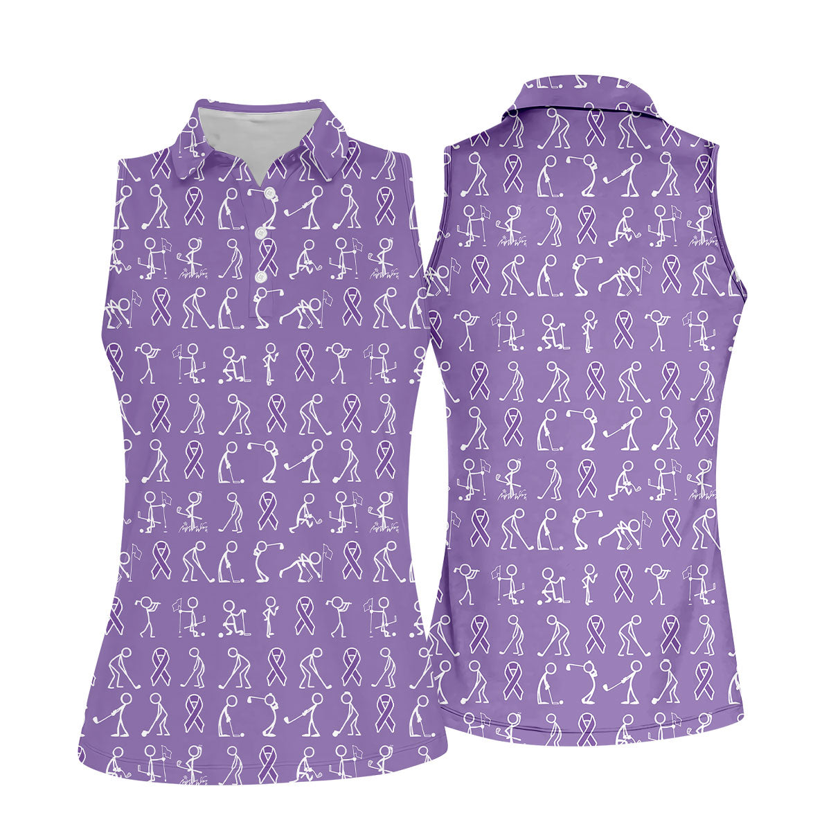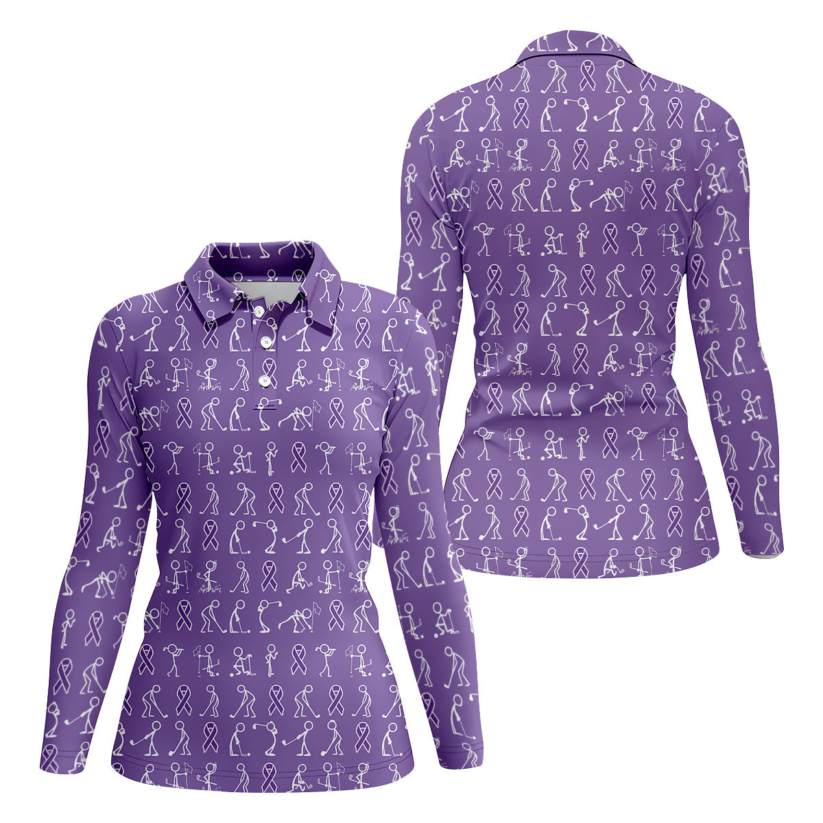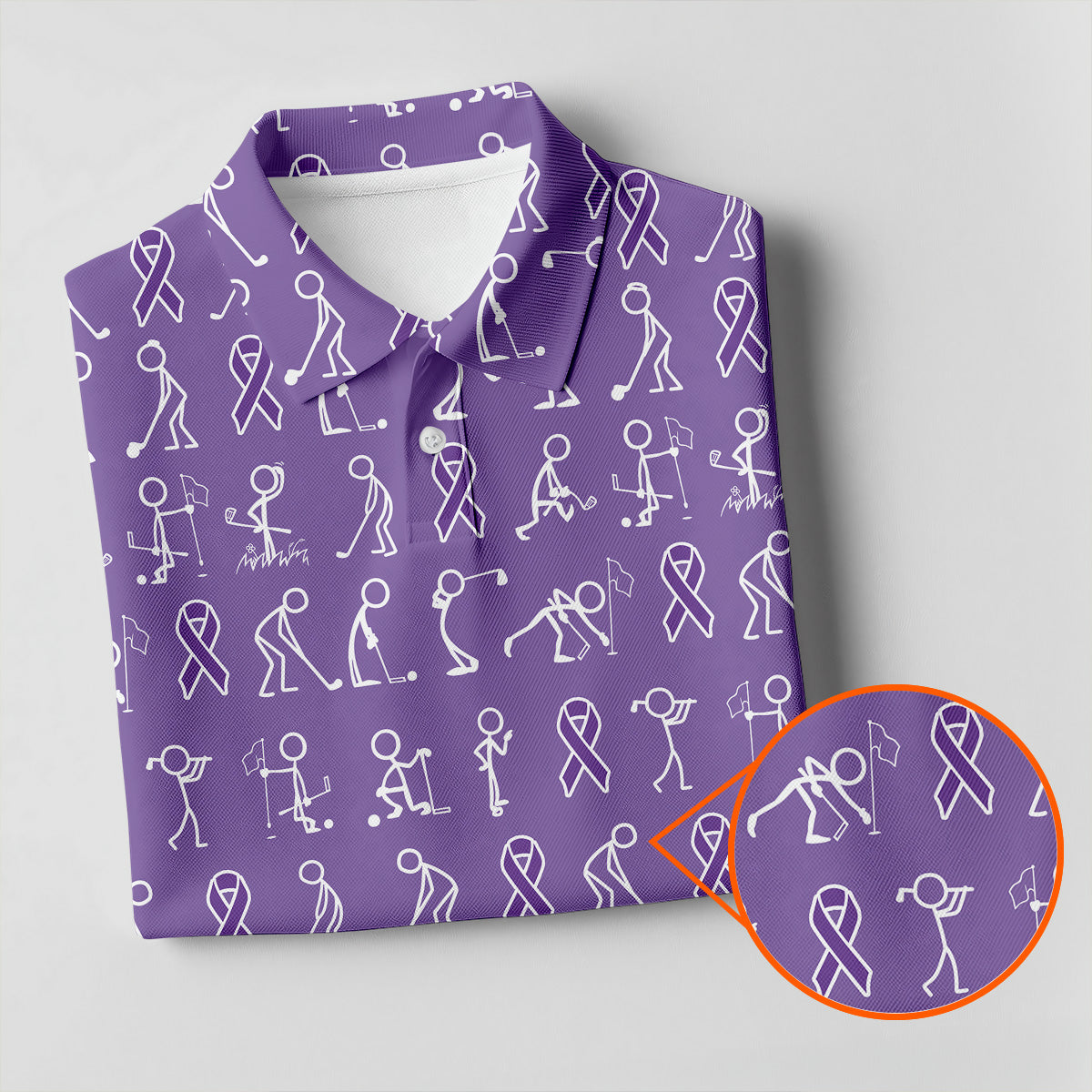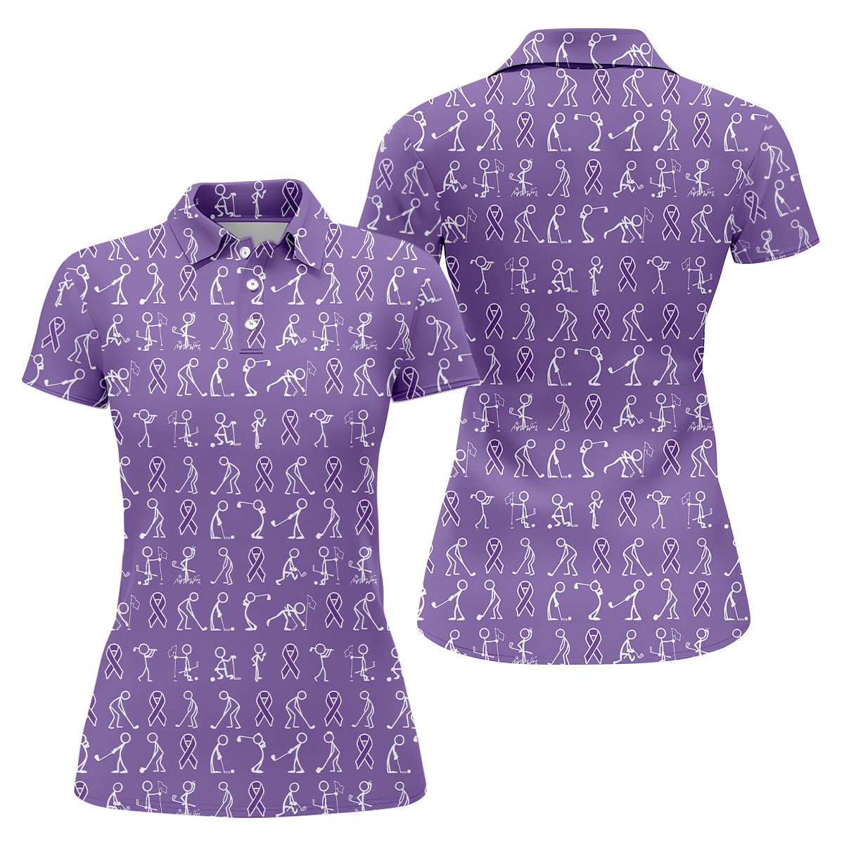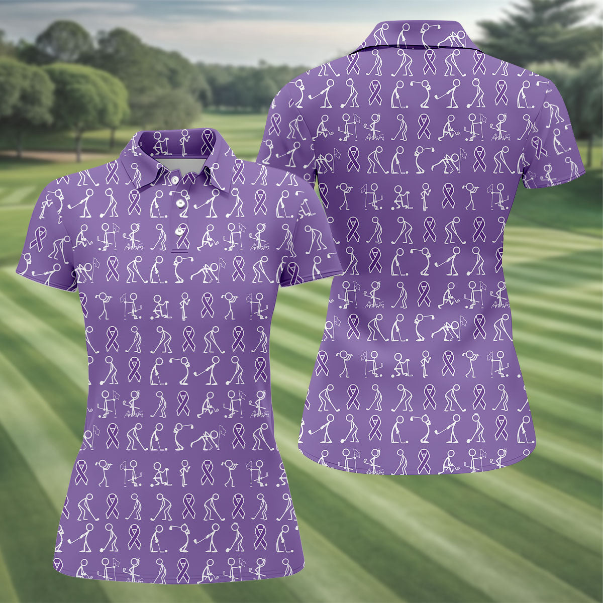 Funny Stick Figure Women's Golf Shirt, Pancreatic Cancer Awareness Shirt, Purple Golf Shirt, Golf Shirts For Women