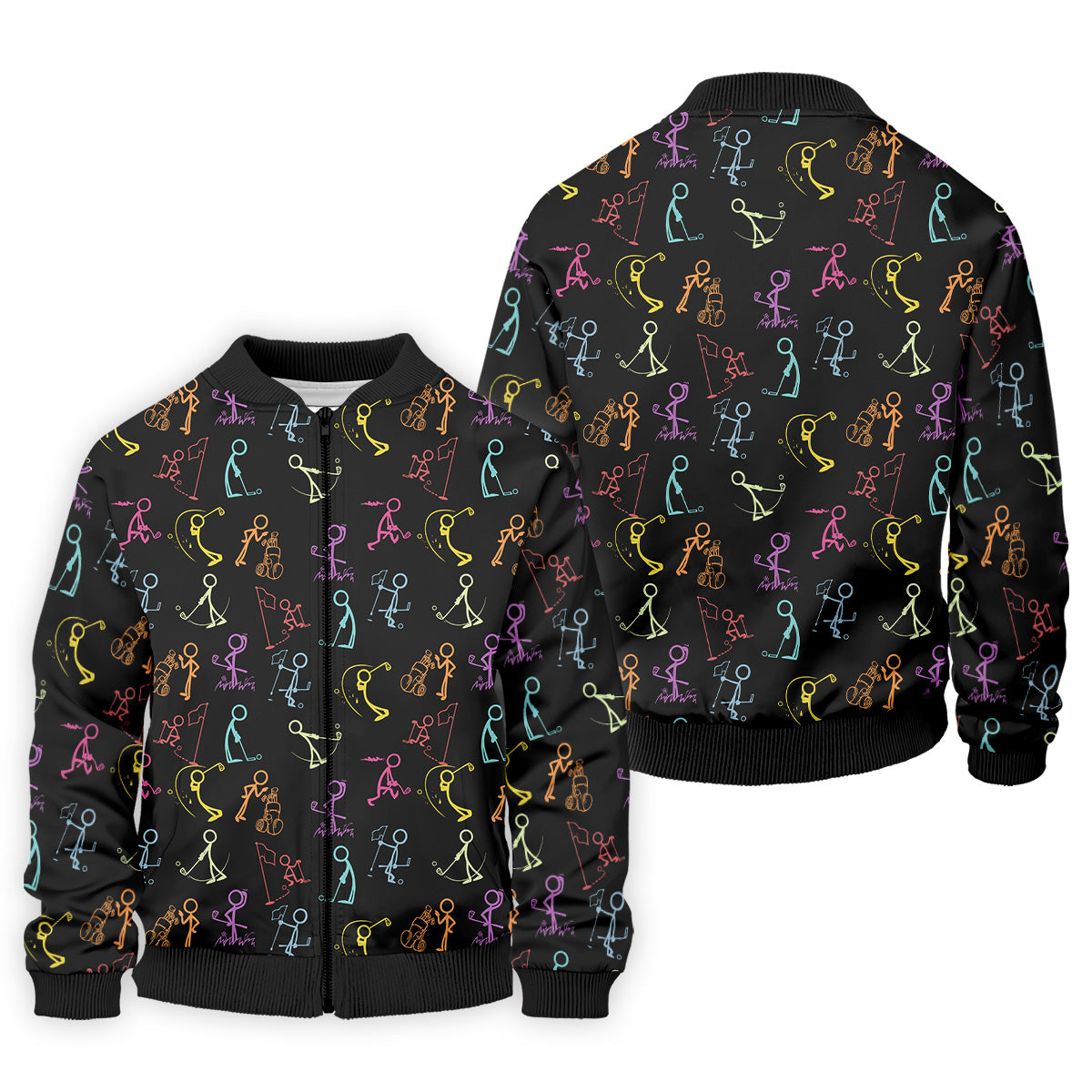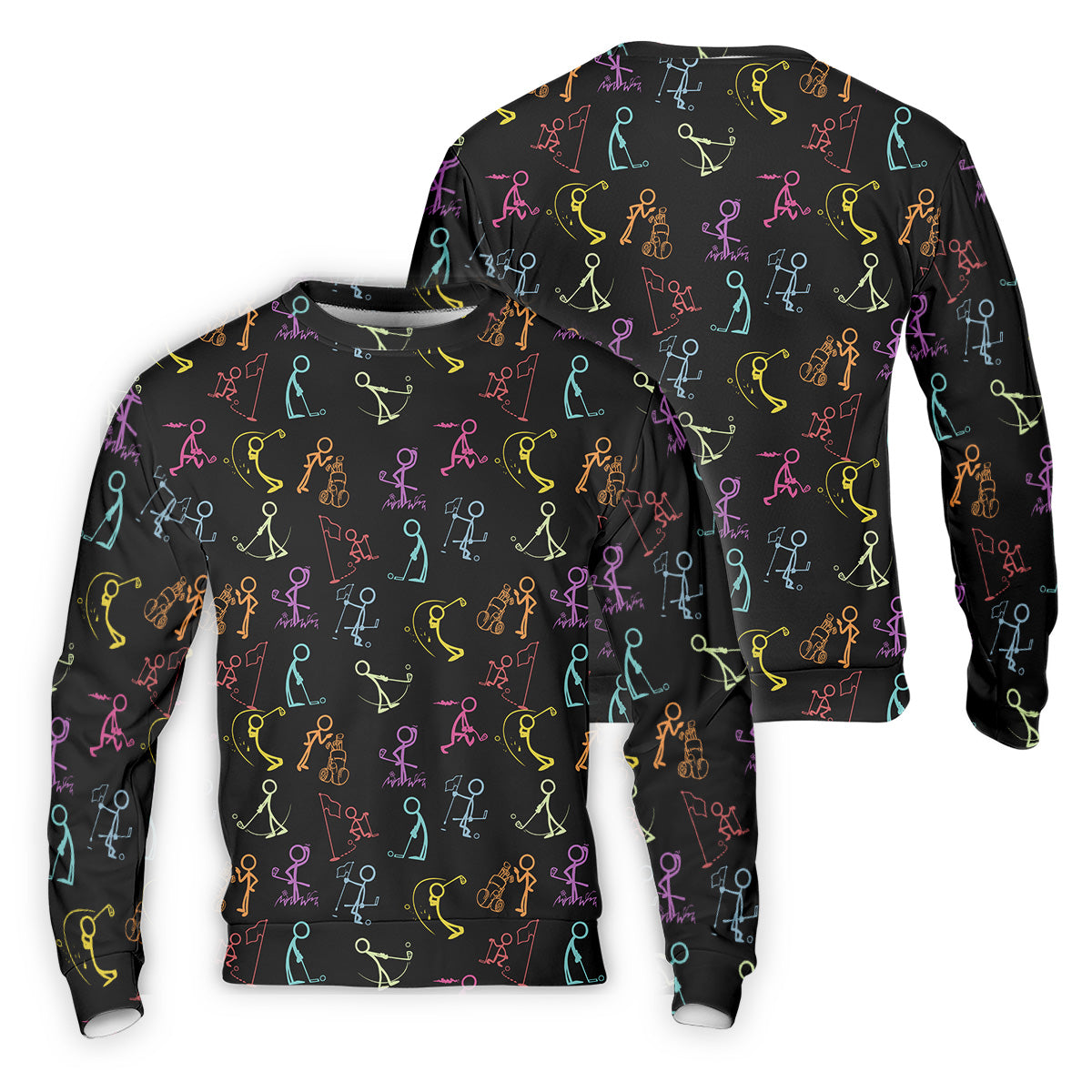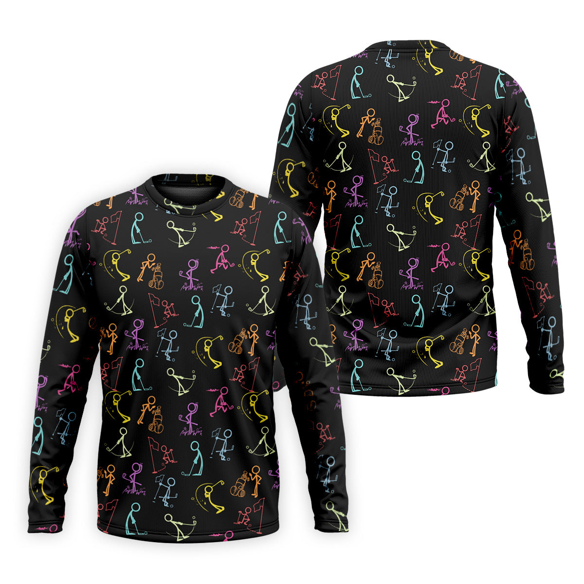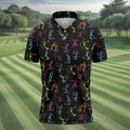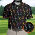 Funny Stickman Golfer Pose Black Golf Shirt, Unique Gift For Golfer, Men's Golf Polo, Golfing Apparel