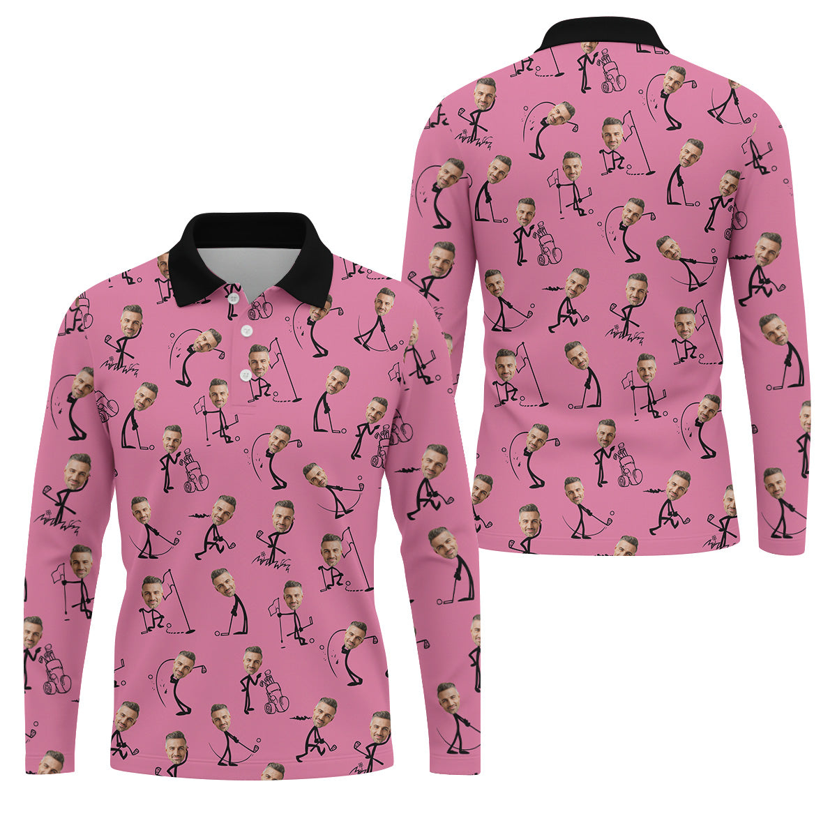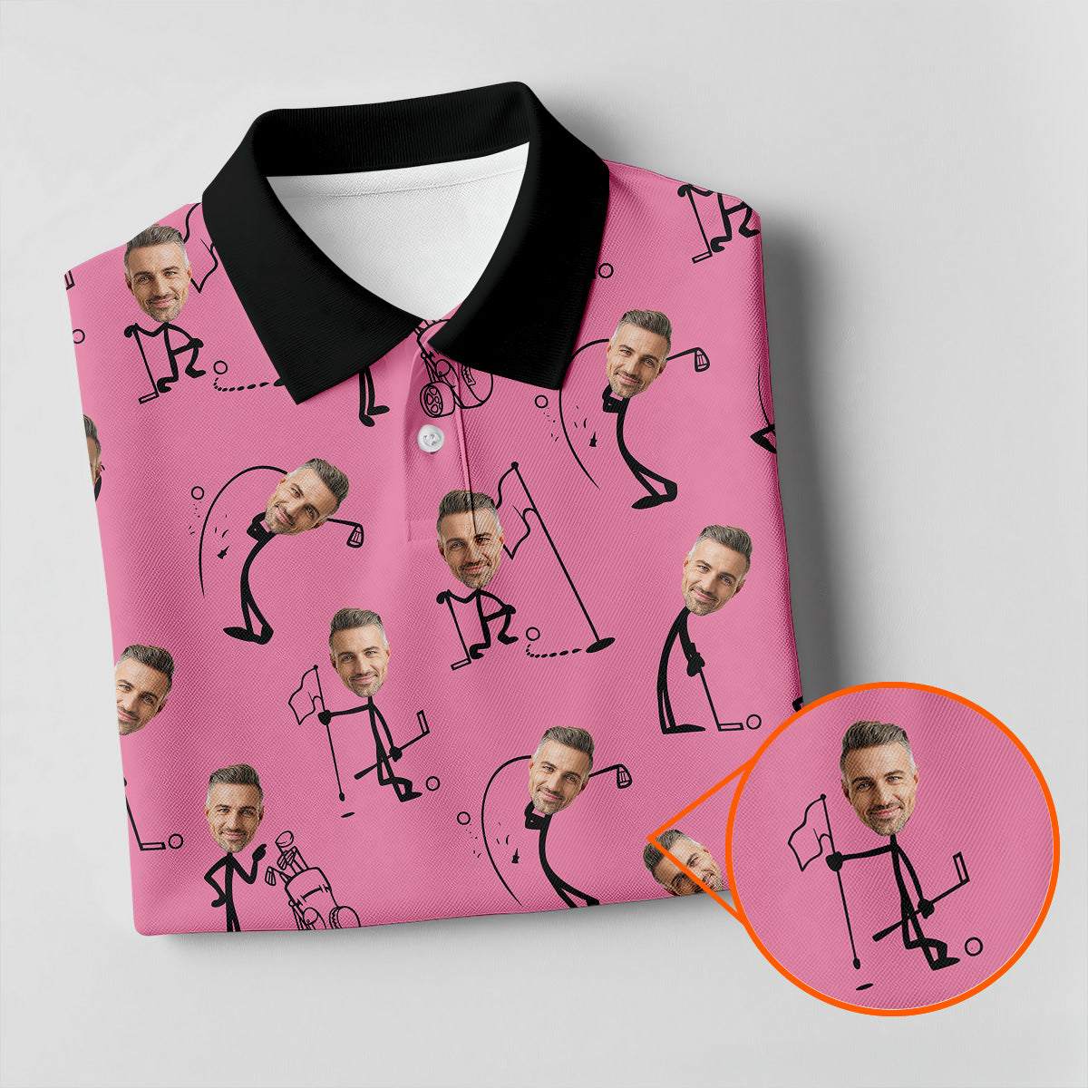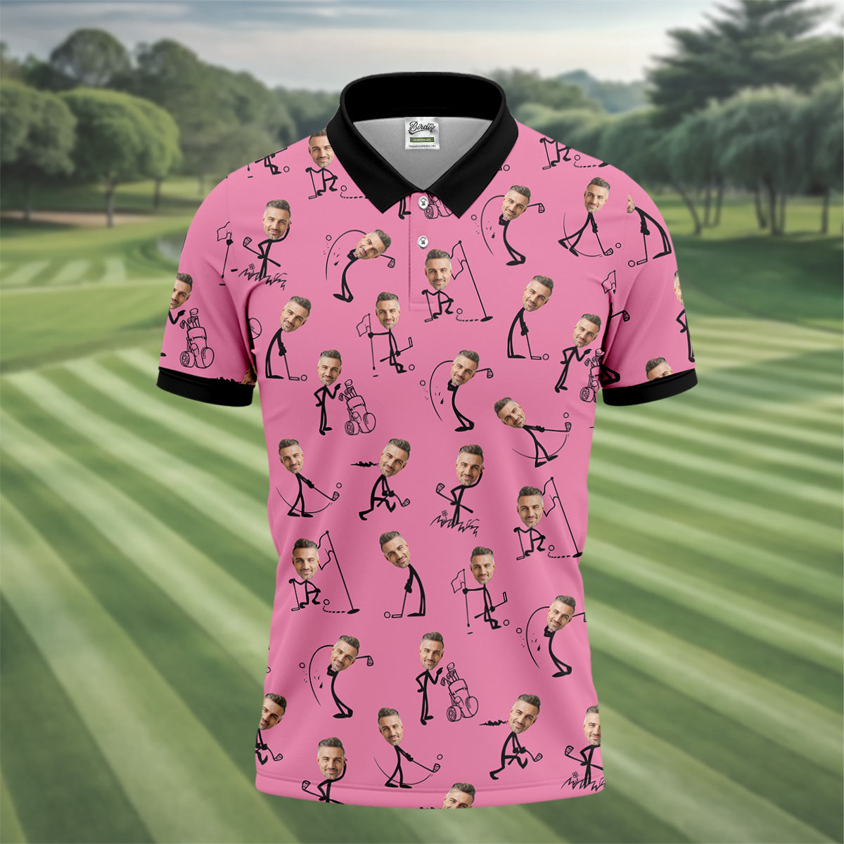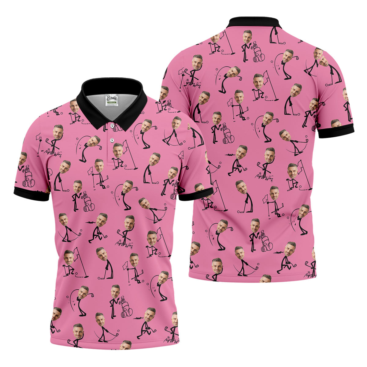 Funny Stickman Pink Custom Face Golf Shirt, Mens Golf Polo Shirts, Golfing Apparel