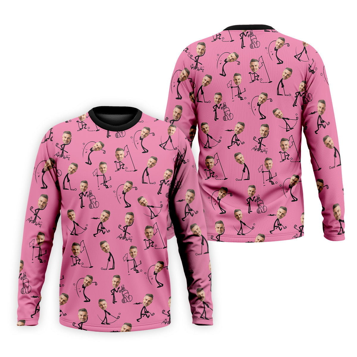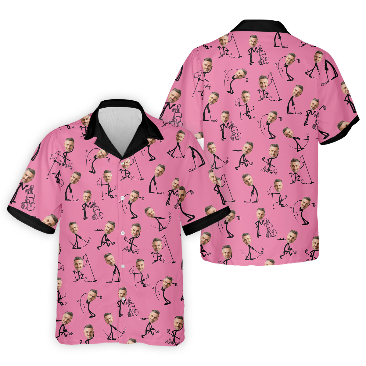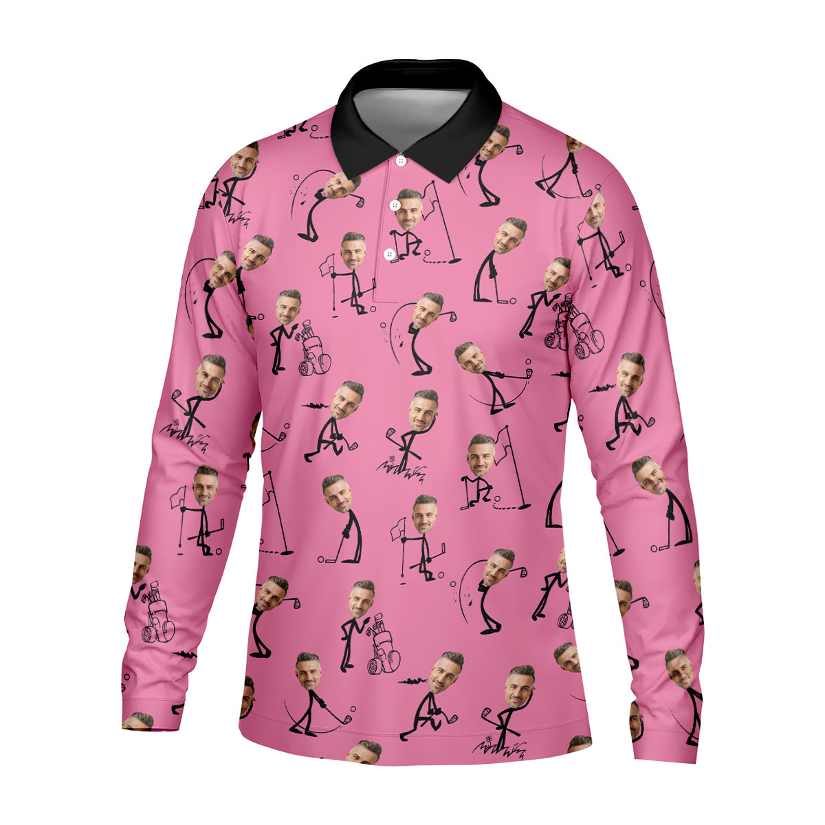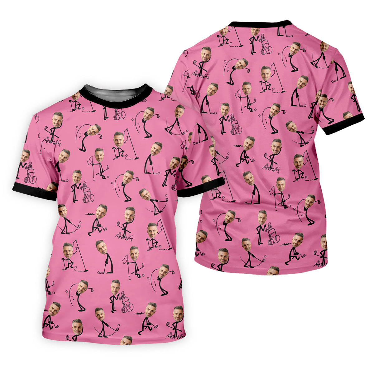 Funny Stickman Pink Custom Face Golf Shirt, Mens Golf Polo Shirts, Golfing Apparel