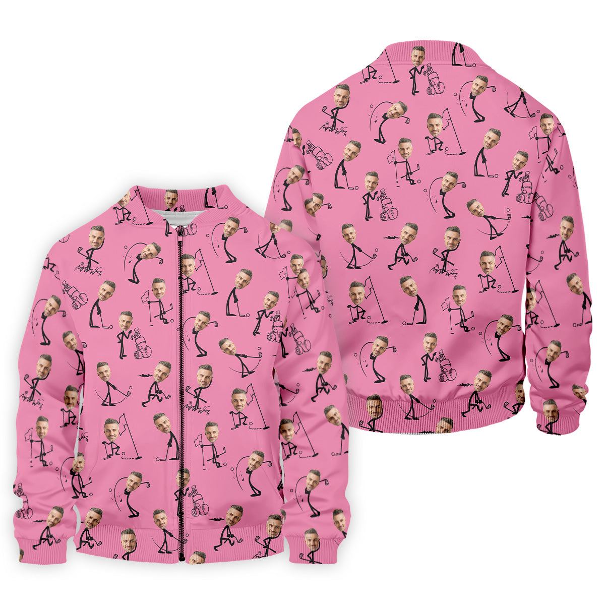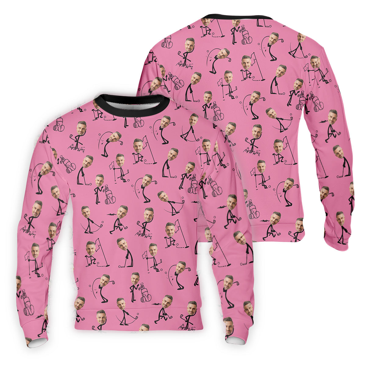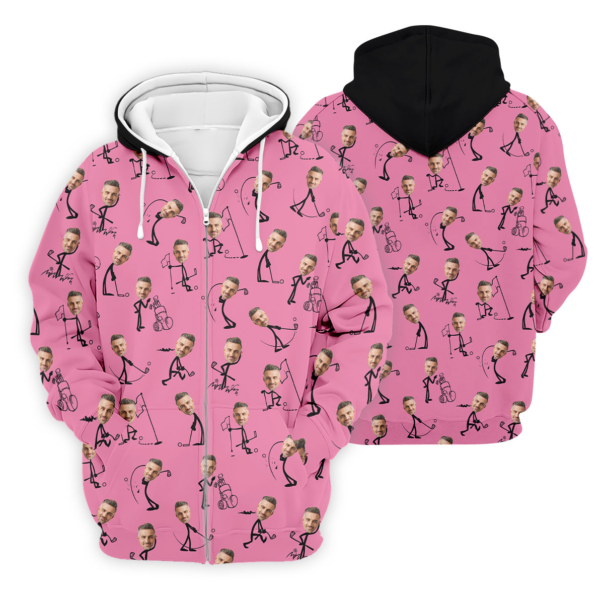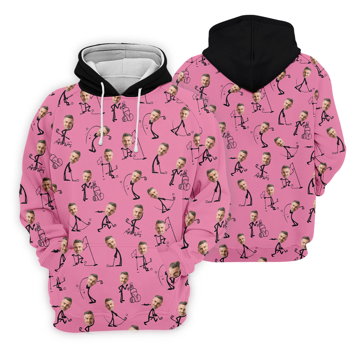Funny Stickman Pink Custom Face Golf Shirt, Mens Golf Polo Shirts, Golfing Apparel
