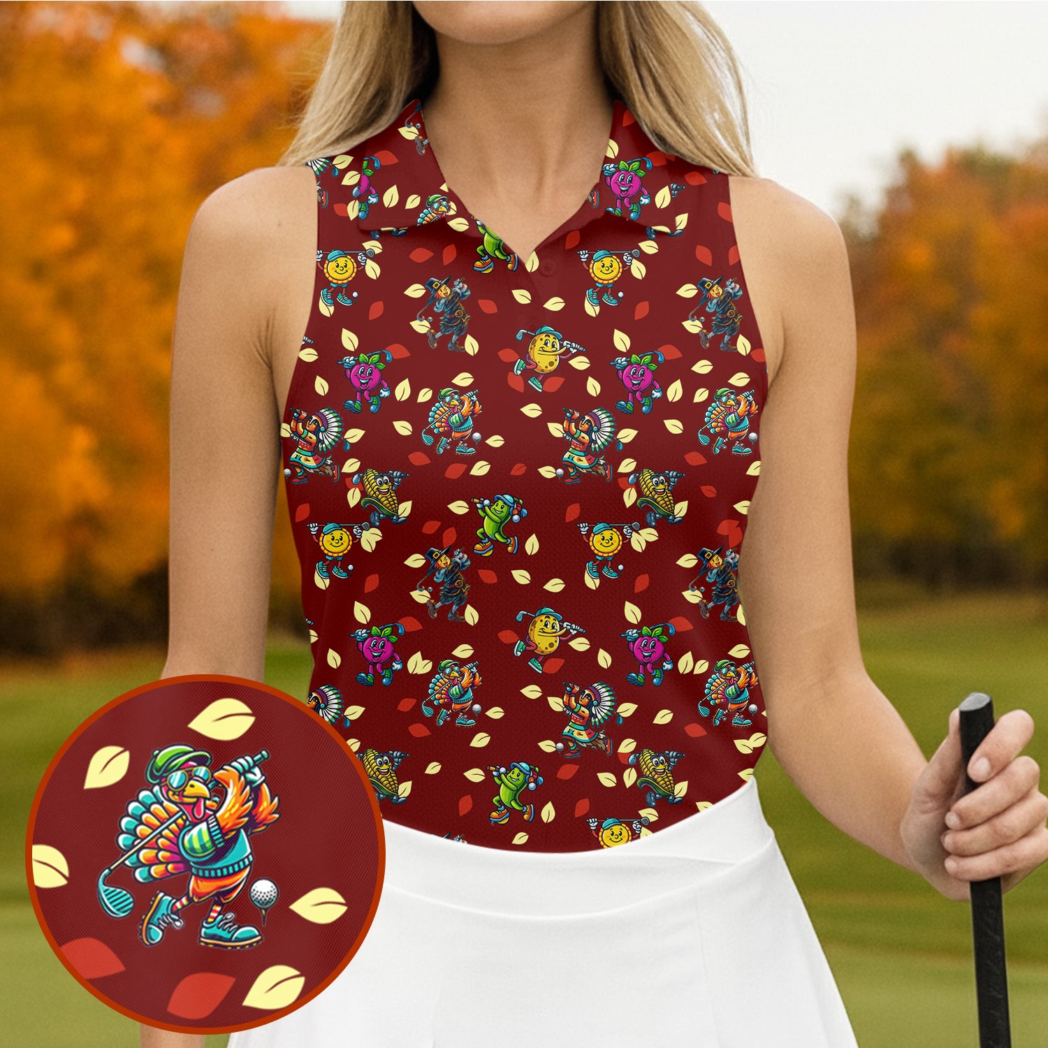 Funny Thanksgiving Dishes Women Golf Top, Fun Women's Golf Shirts, Ladies Golf Polos