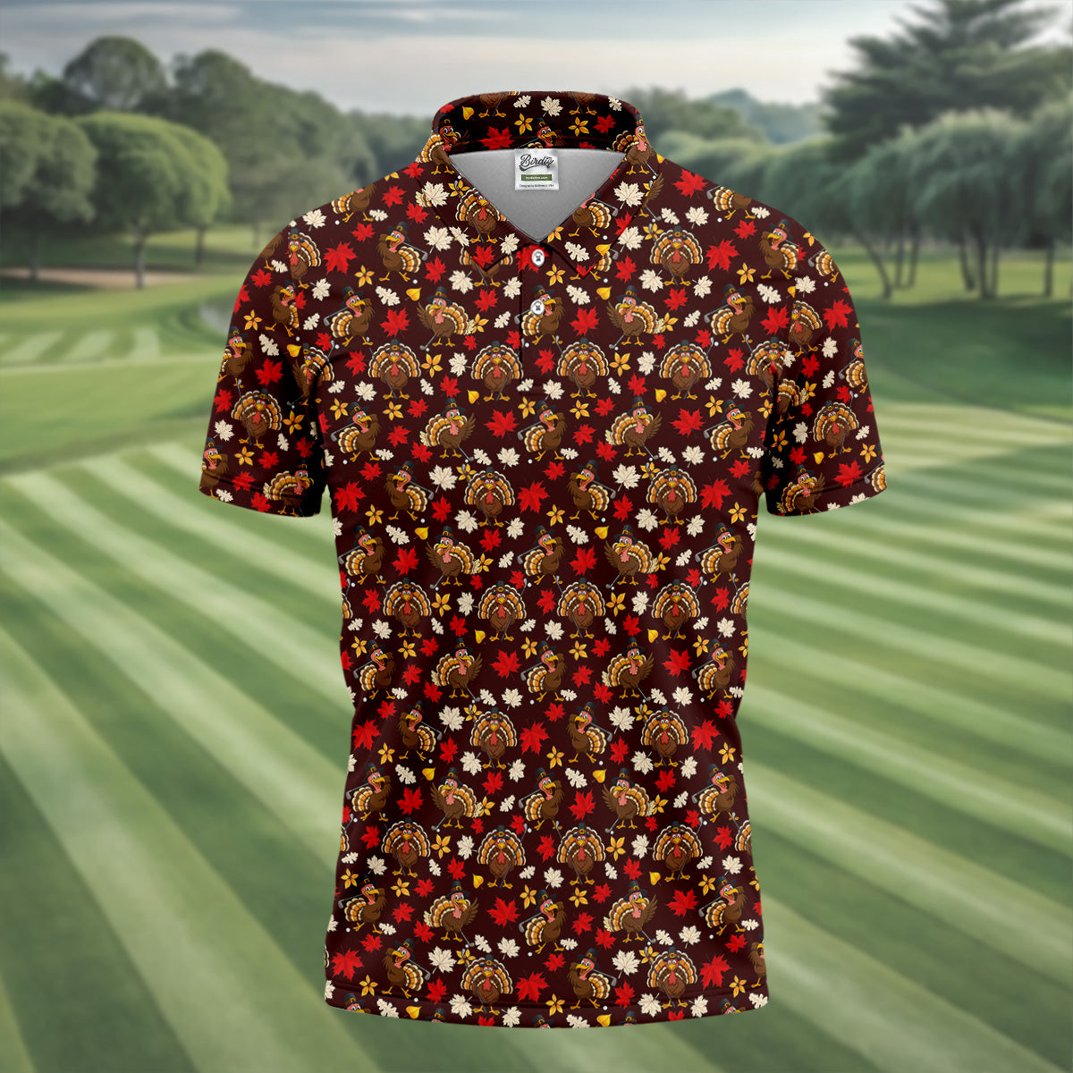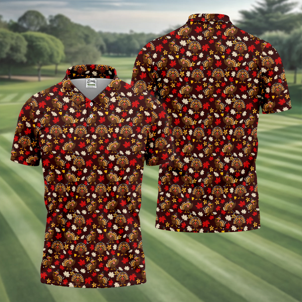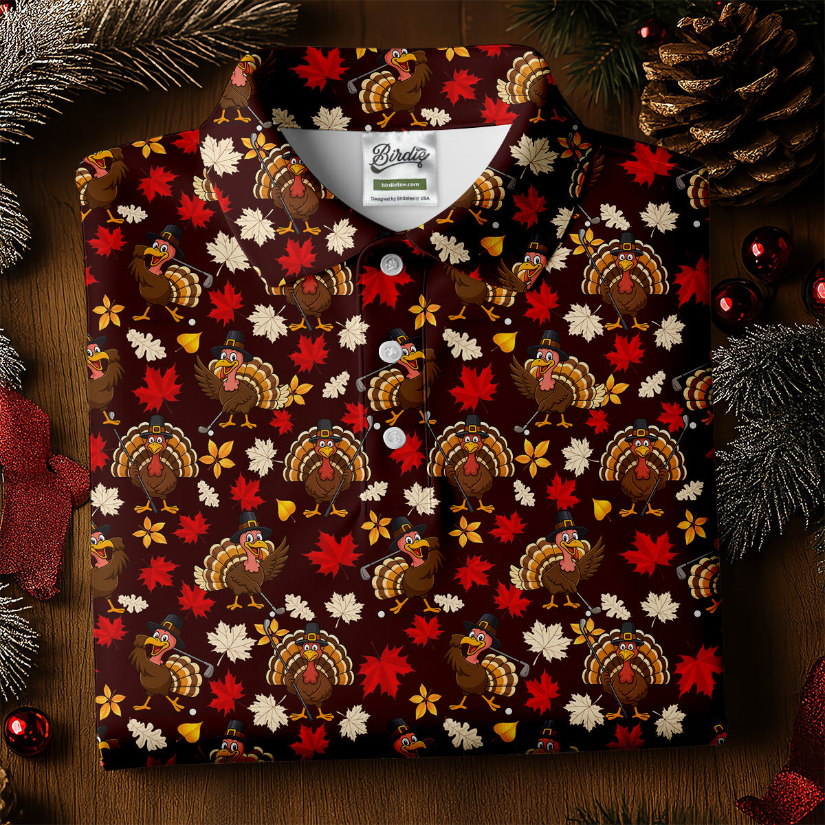 Funny Thanksgiving Turkey Golf Pose Golf Tops For Men, Polo Shirts For Men, Golf Gift For Men