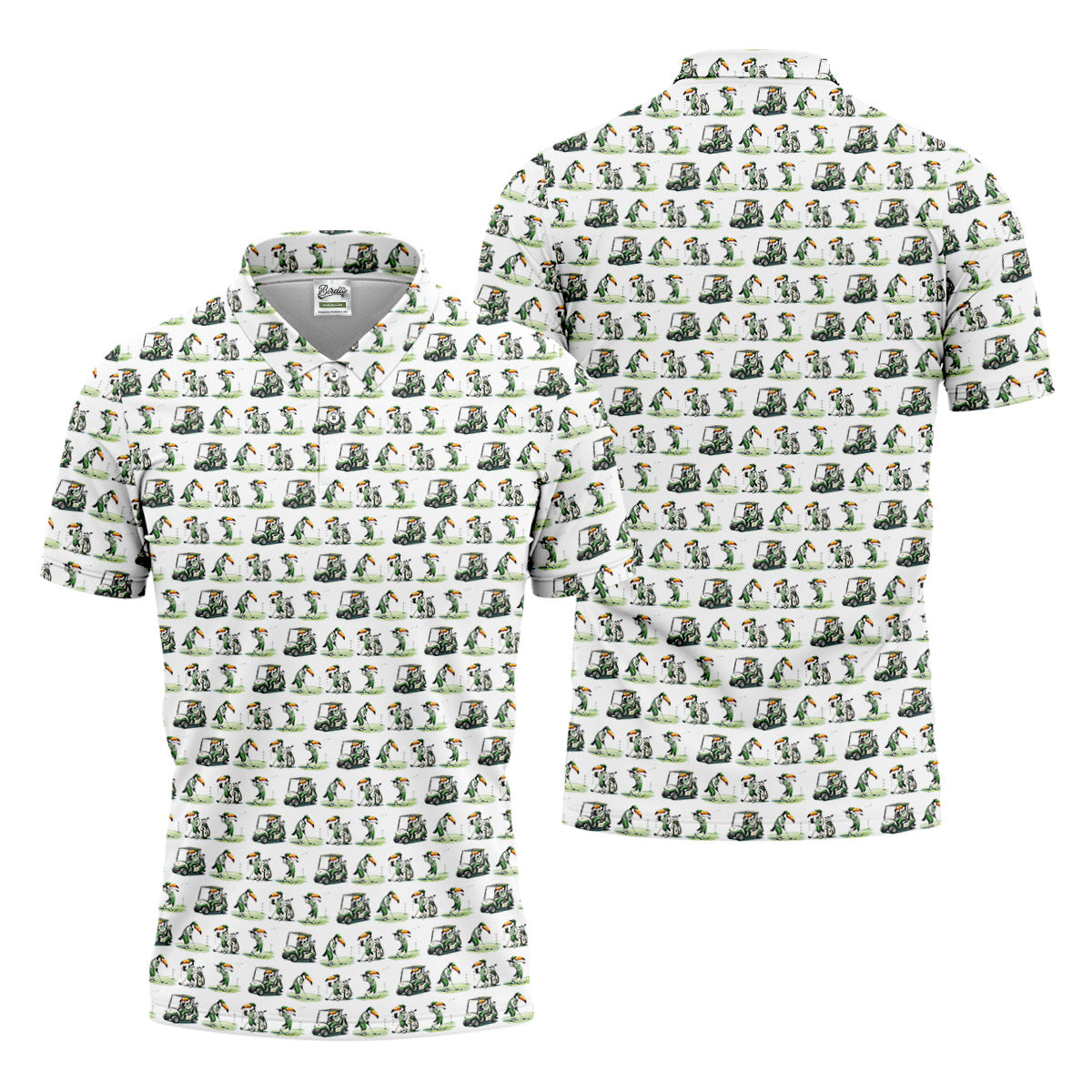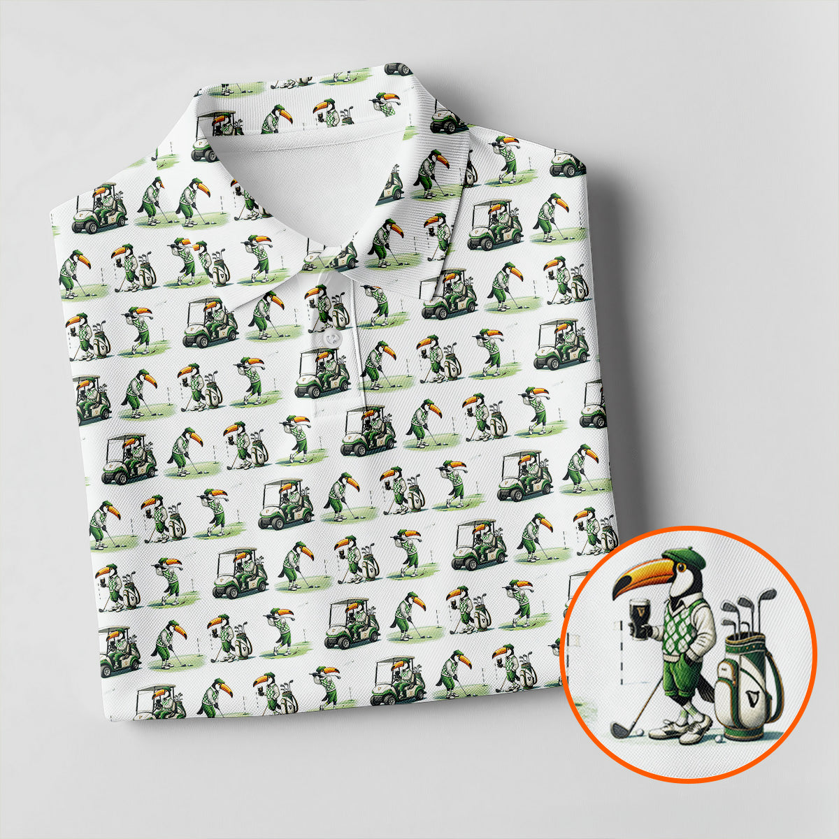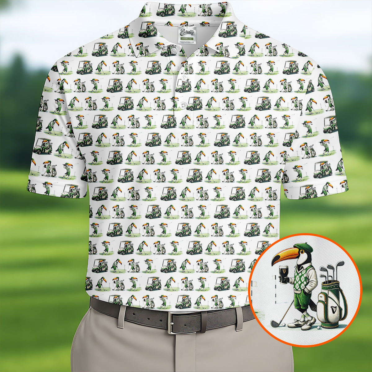Funny Toucan Golf Pose White And Green Golf Tops For Men, Polo Shirts For Men, Golf Shirts For Men