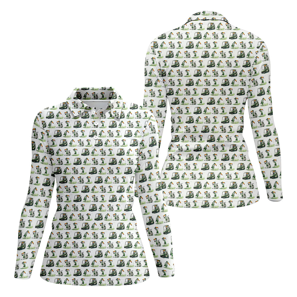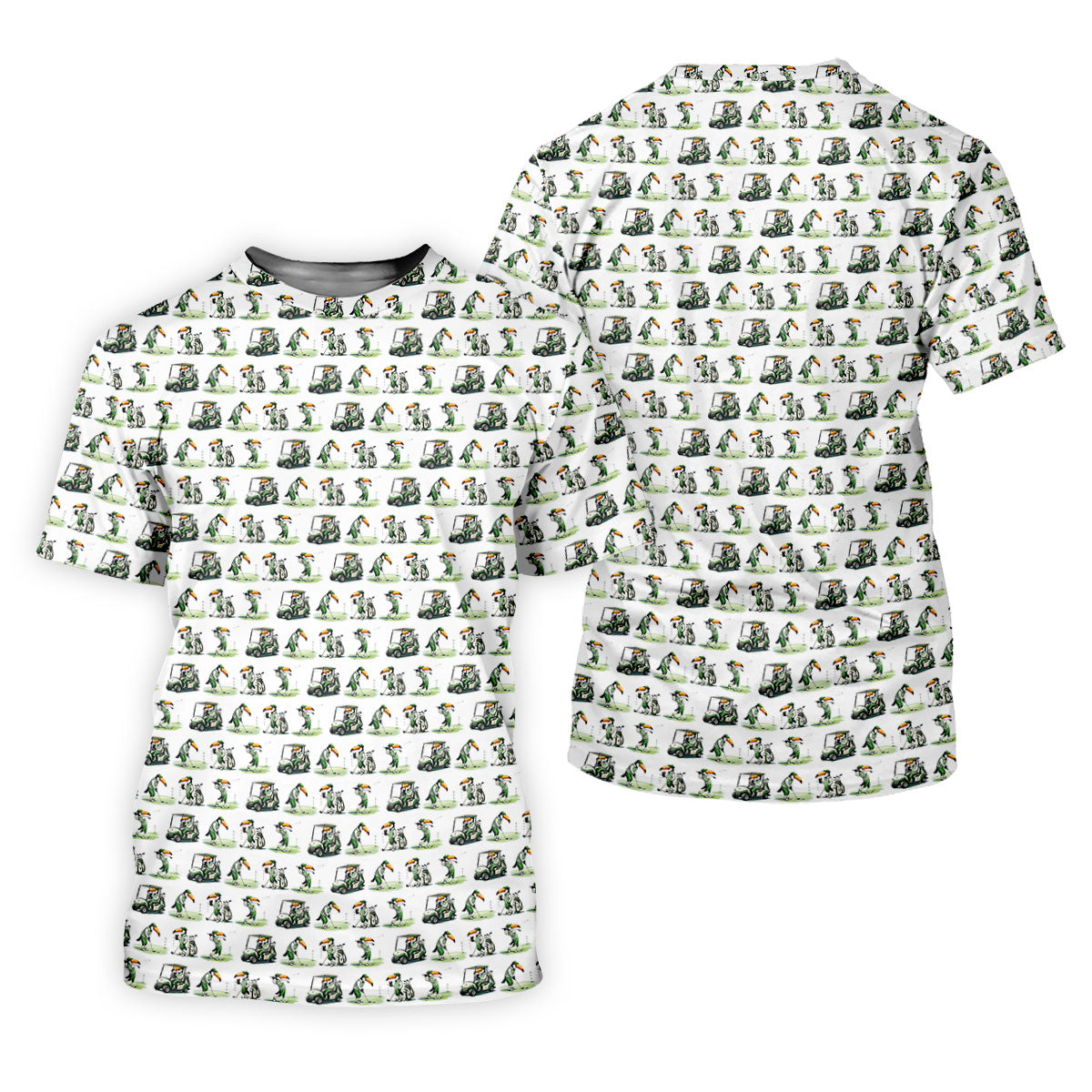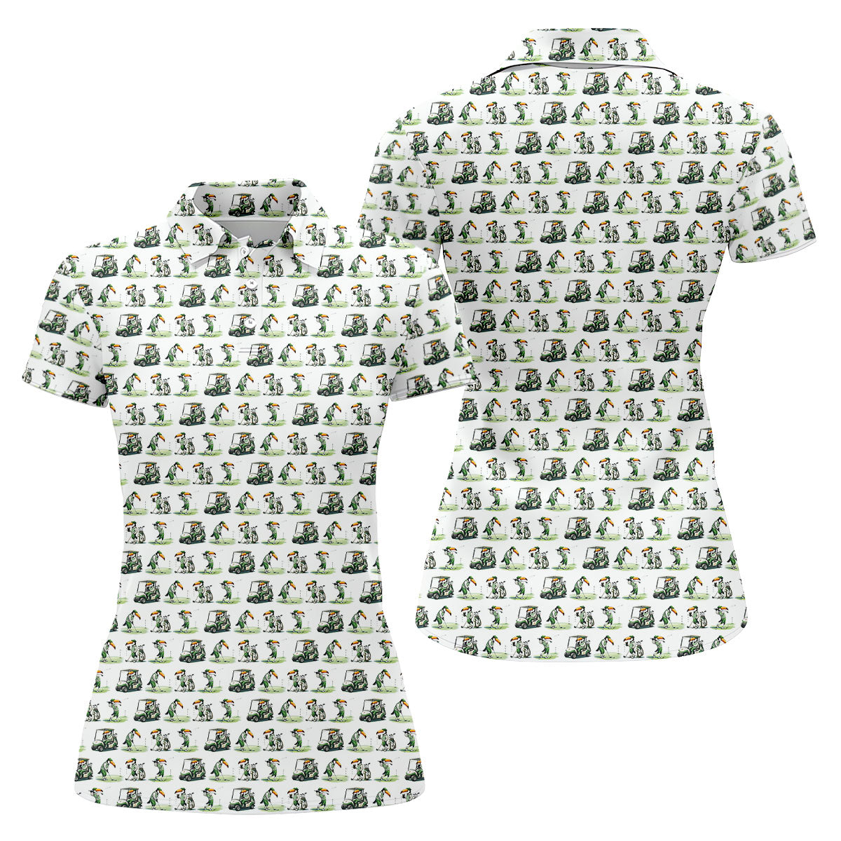 Funny Toucan Golf Pose White And Green Ladies Golf Tops, Fun Women's Golf Shirts, Golf Shirt For Women