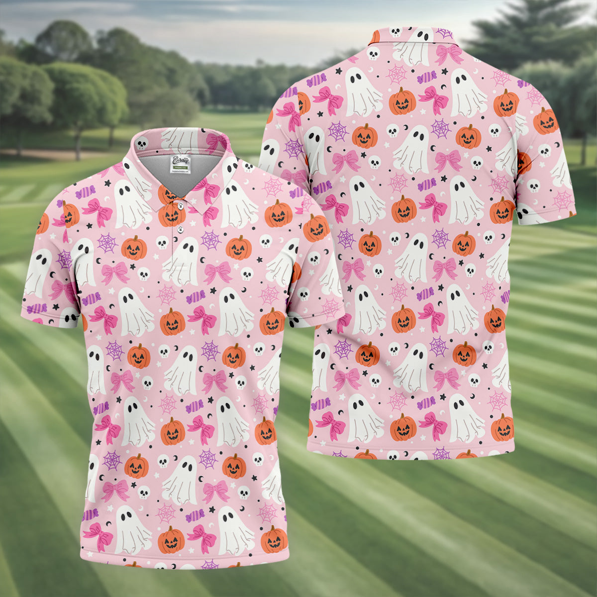 Ghost Coquette Candy Halloween Fun Golf Shirts For Men, Golfing Apparel, Golf Shirts For Men