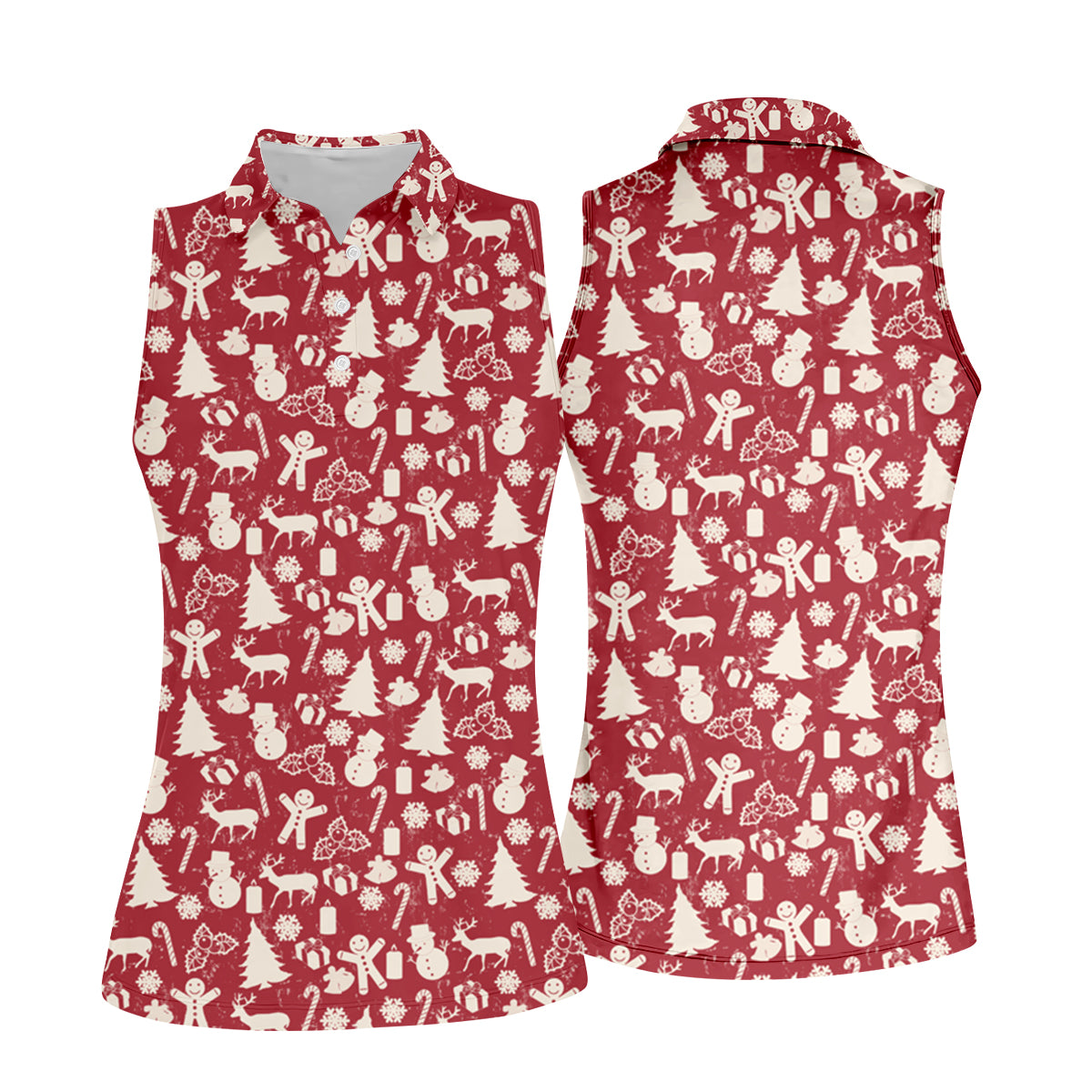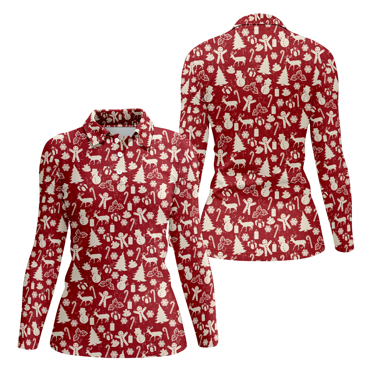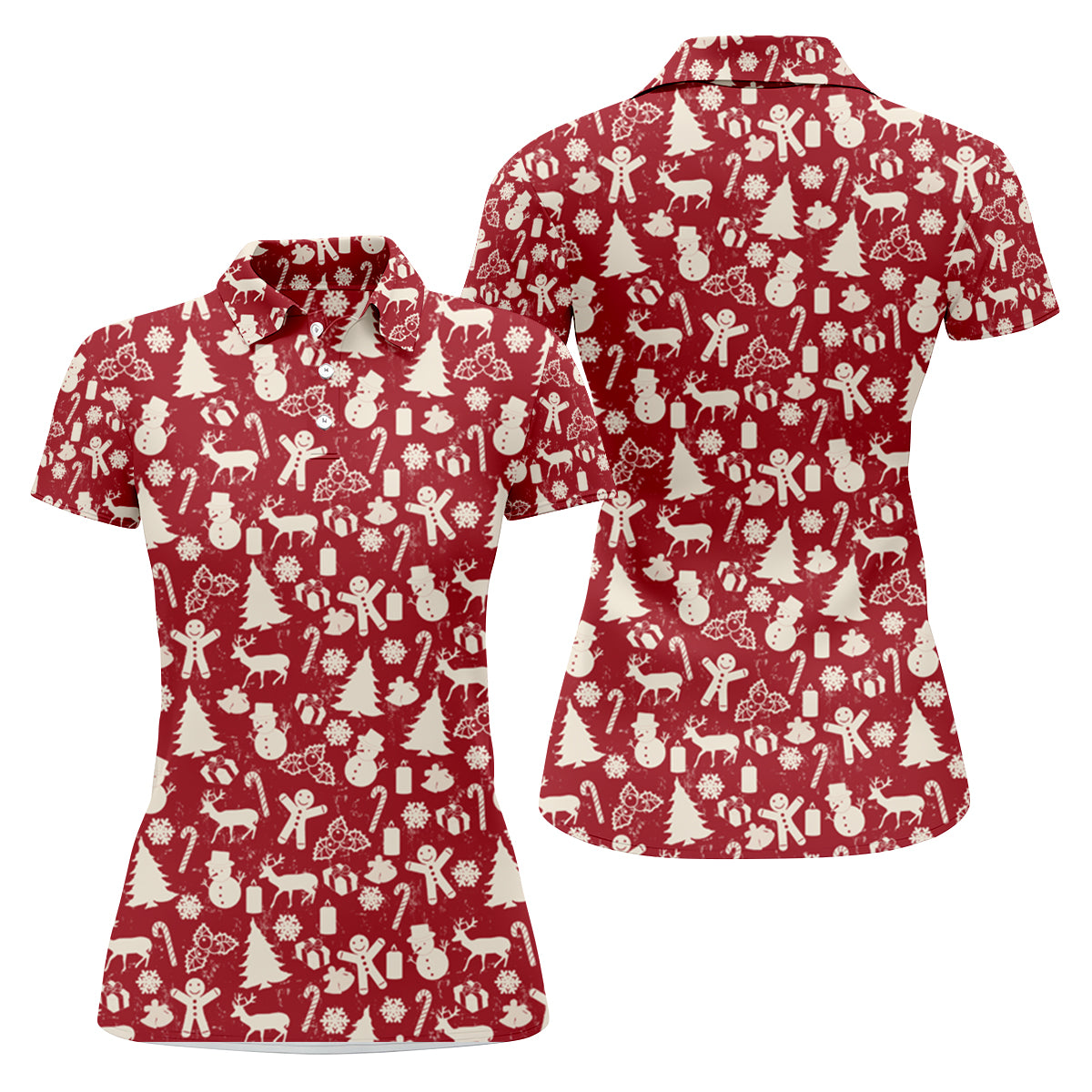 Gingerbread Man Christmas Pine Tree Candy Canes Red And White Fun Women's Golf Shirts, Christmas Golf Shirt