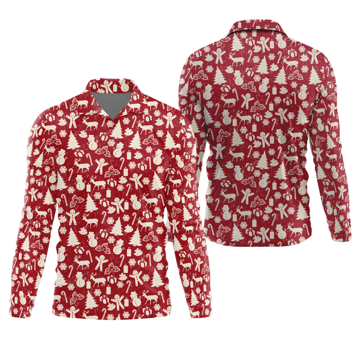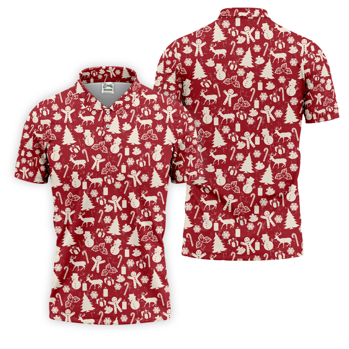 Gingerbread Man Christmas Pine Tree Candy Canes Red And White Polo Shirts For Men, Christmas Golf Shirt