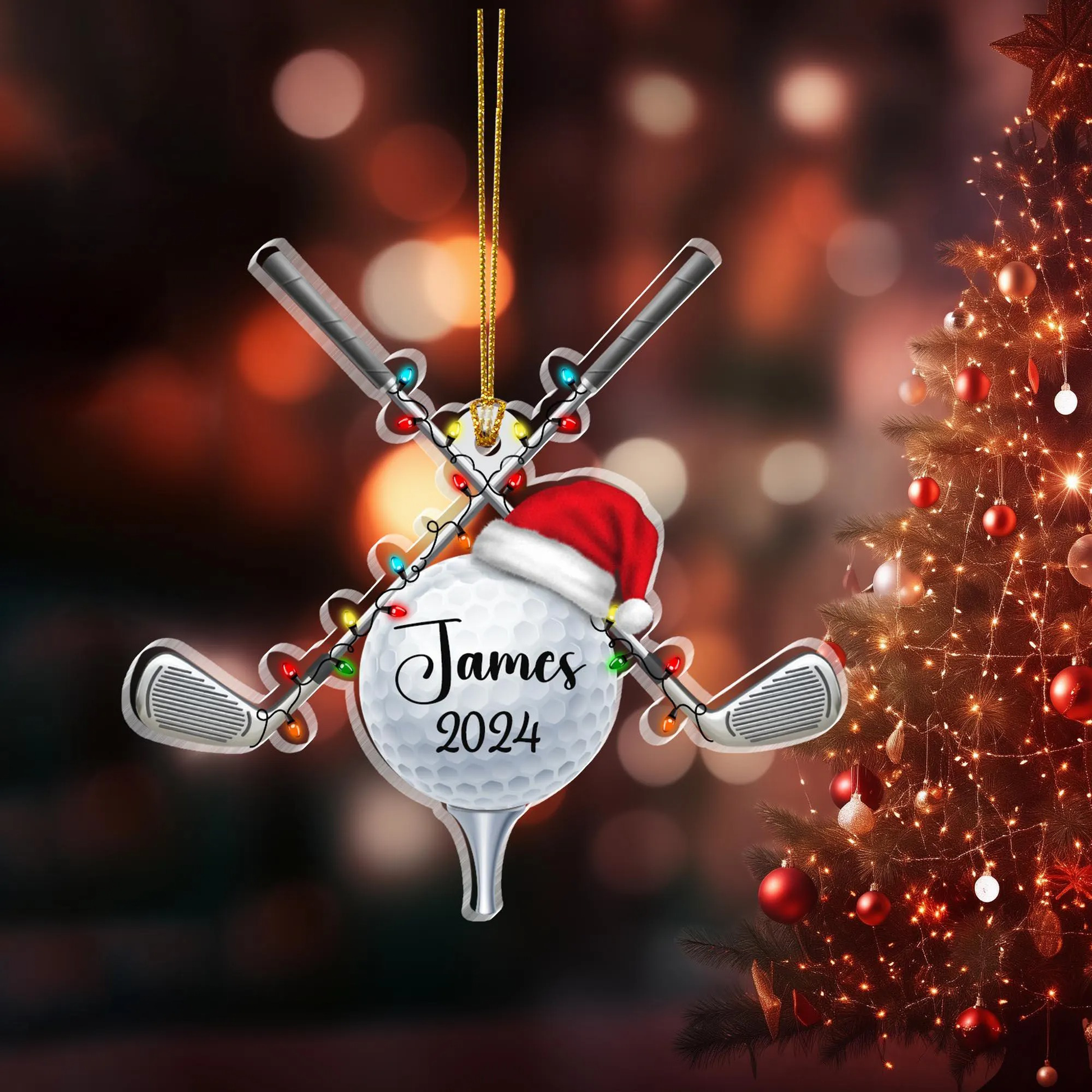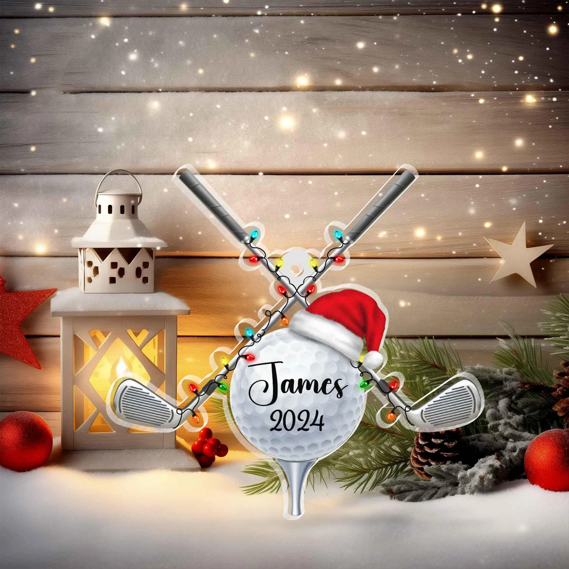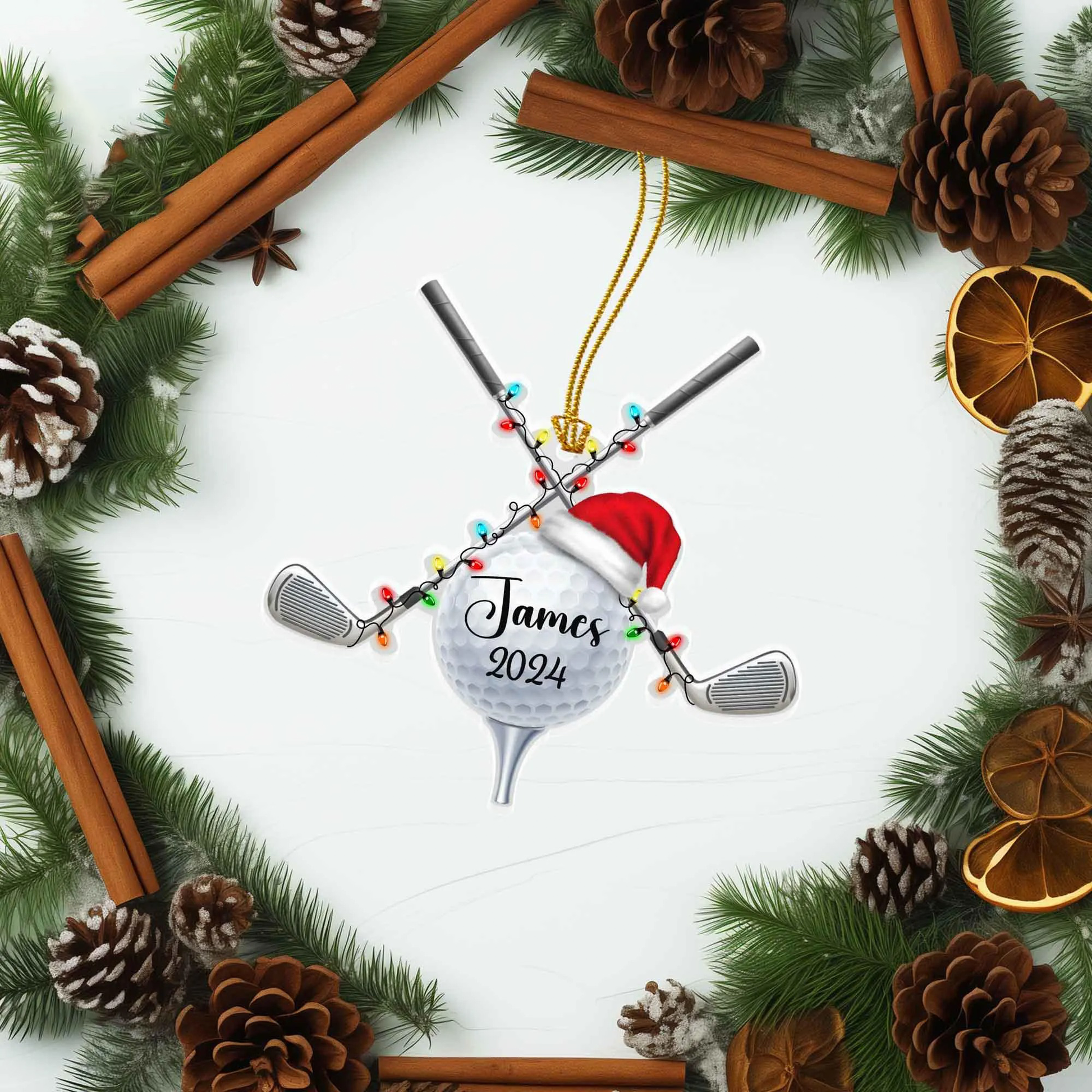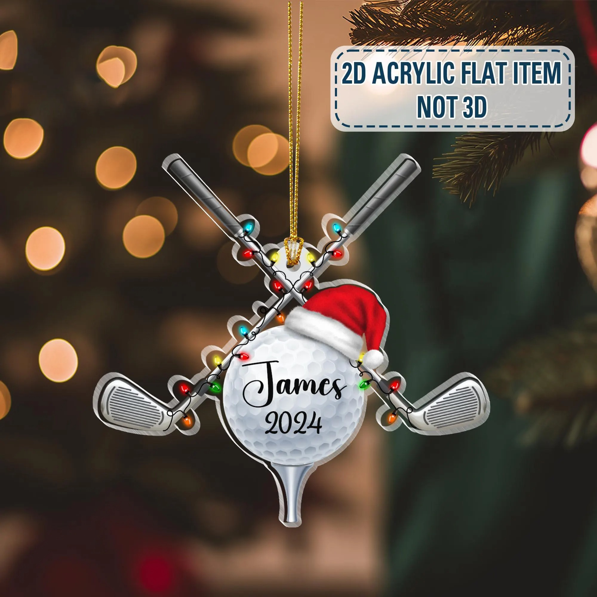 Golf Ball Christmas Ornament With Santa Hat, Golfer Ornament, Acrylic Ornament, Christmas Gift Ideas
