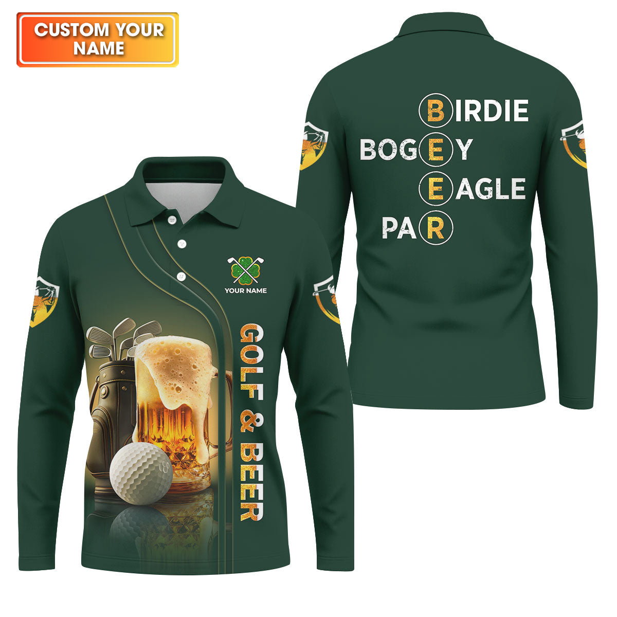 Golf Beer Birdie Bogey Eagle Par St Patrick's Day Green Golf Polos For Men, Golf Shirts For Men, St Patricks Day Golf Shirt