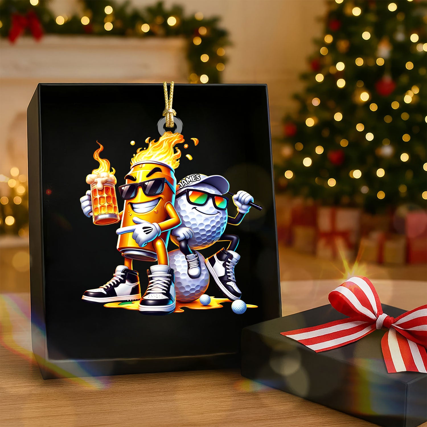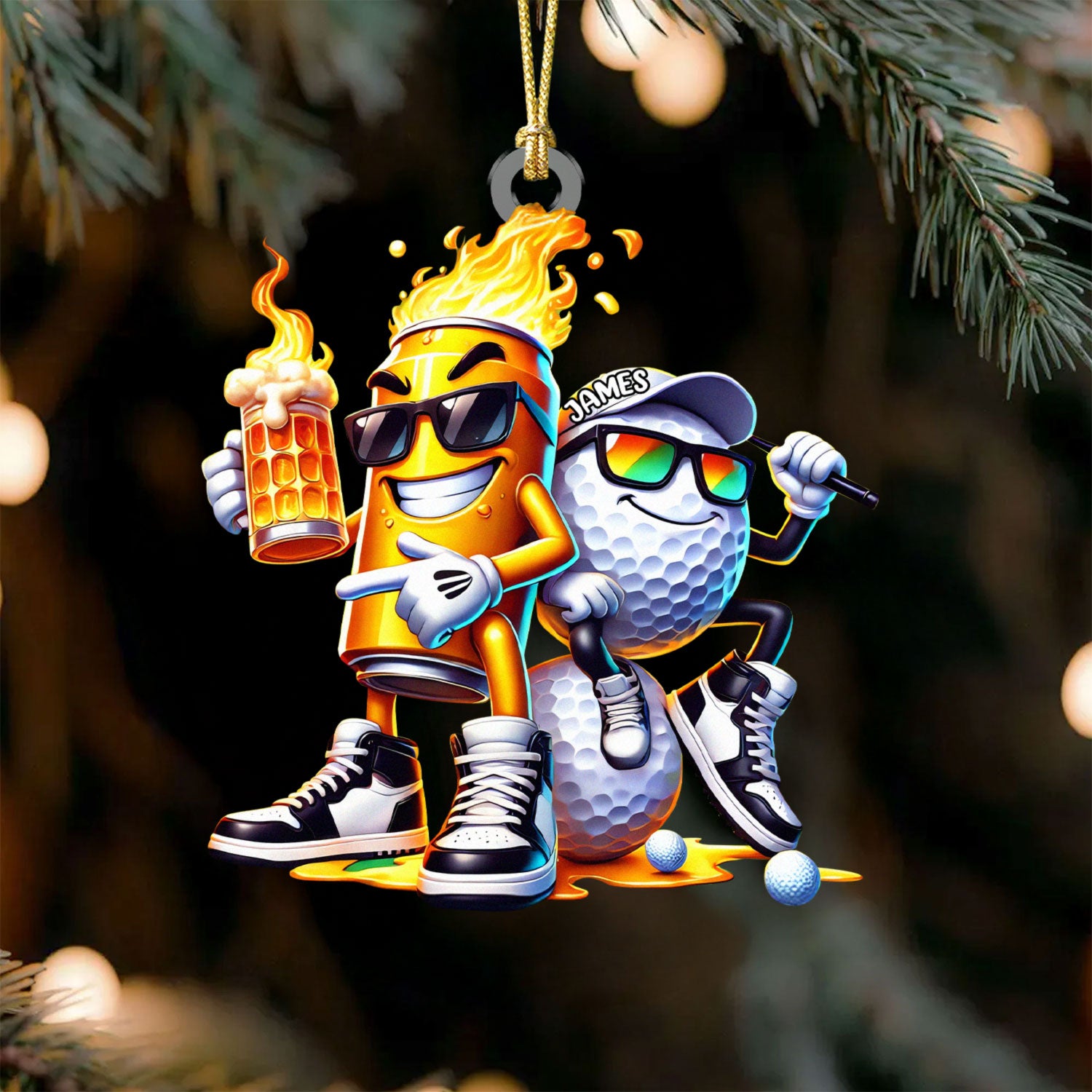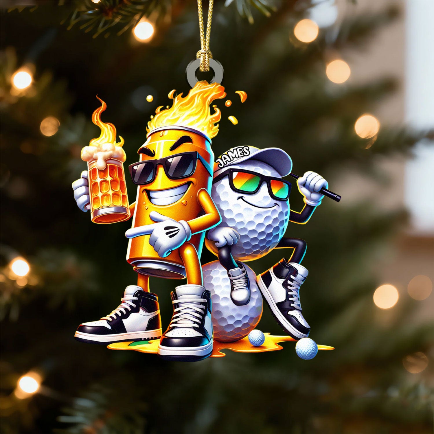 Golf Beer On Fire Acrylic Ornament, Golf Xmas Ornaments, Golf Christmas Gifts, Golf Decor