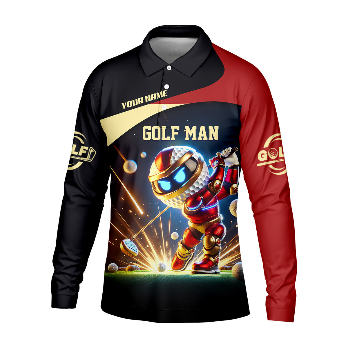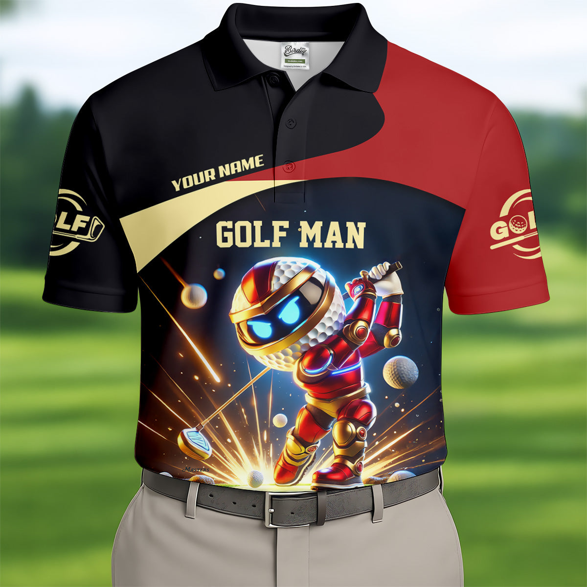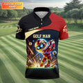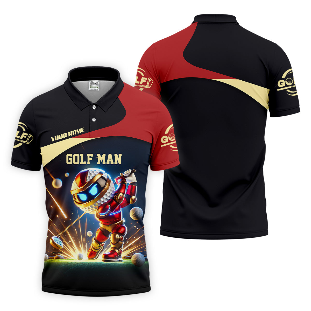 Golf Man Black And Red Fun Golf Shirts For Men, Mens Golf Polo Shirts, Cool Golf Gift, Golfing Apparel