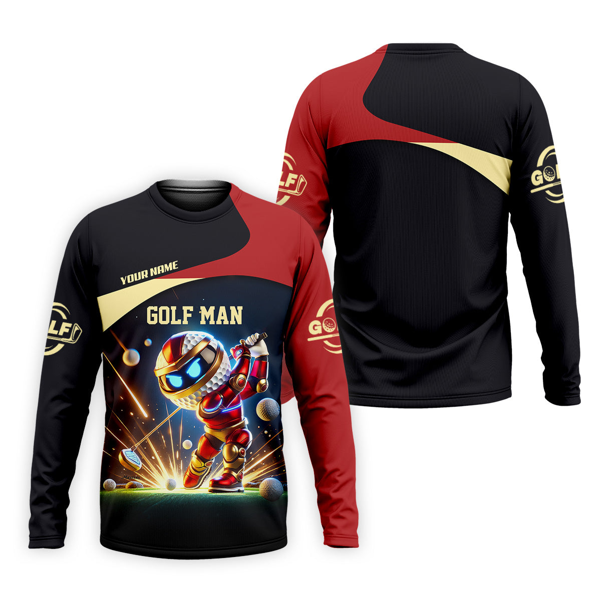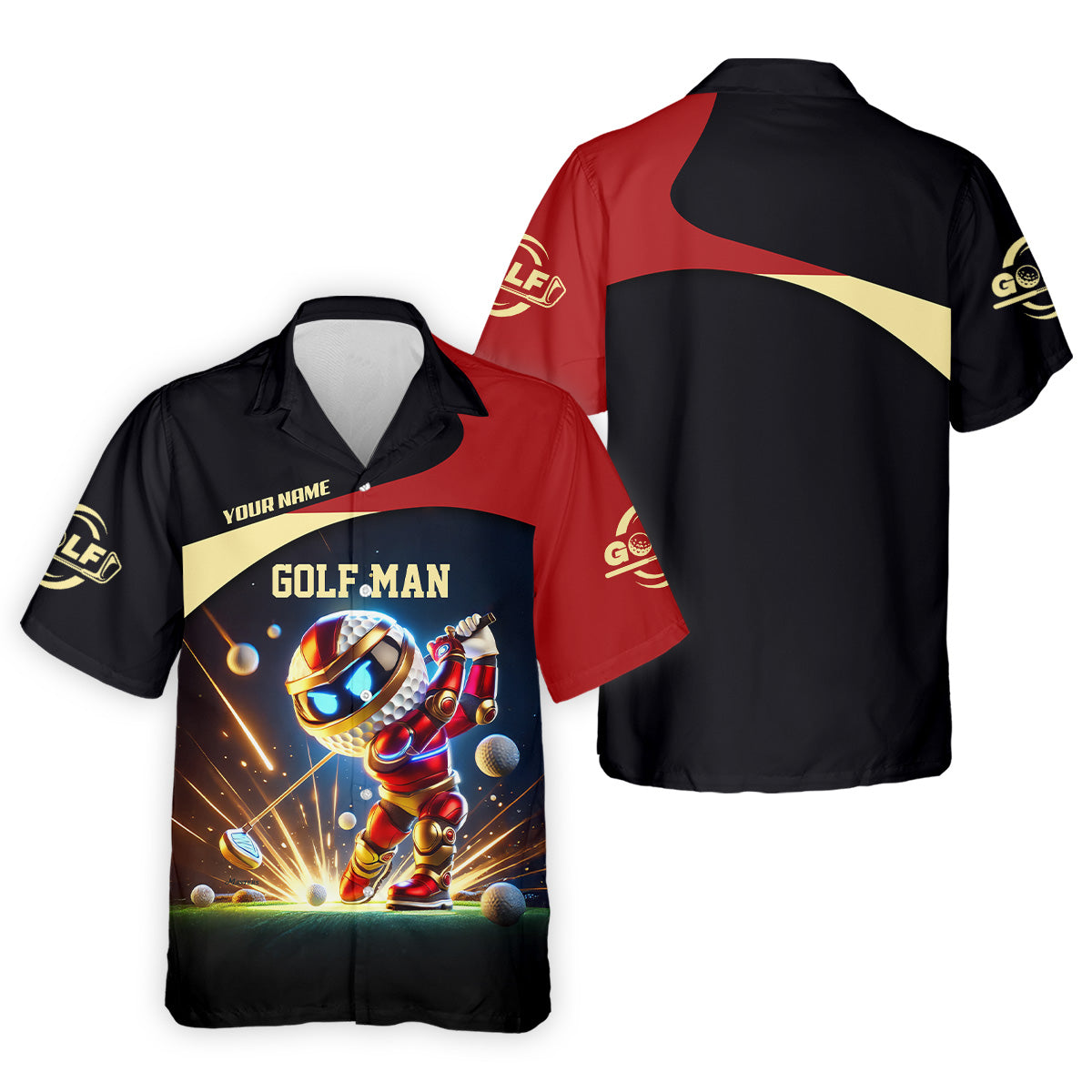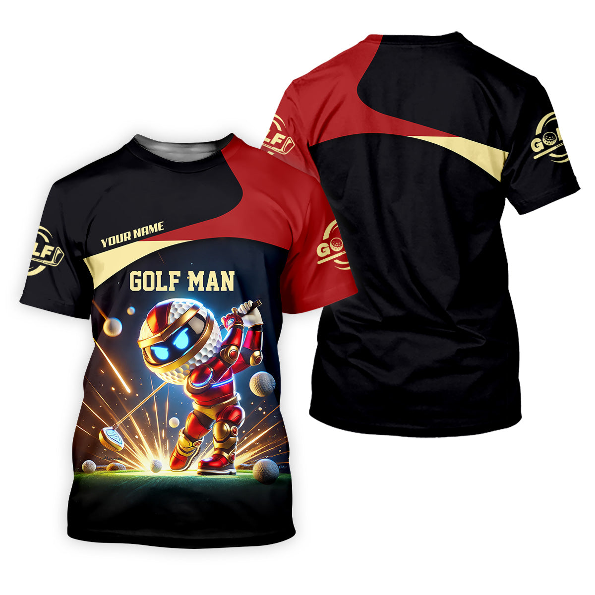 Golf Man Black And Red Fun Golf Shirts For Men, Mens Golf Polo Shirts, Cool Golf Gift, Golfing Apparel