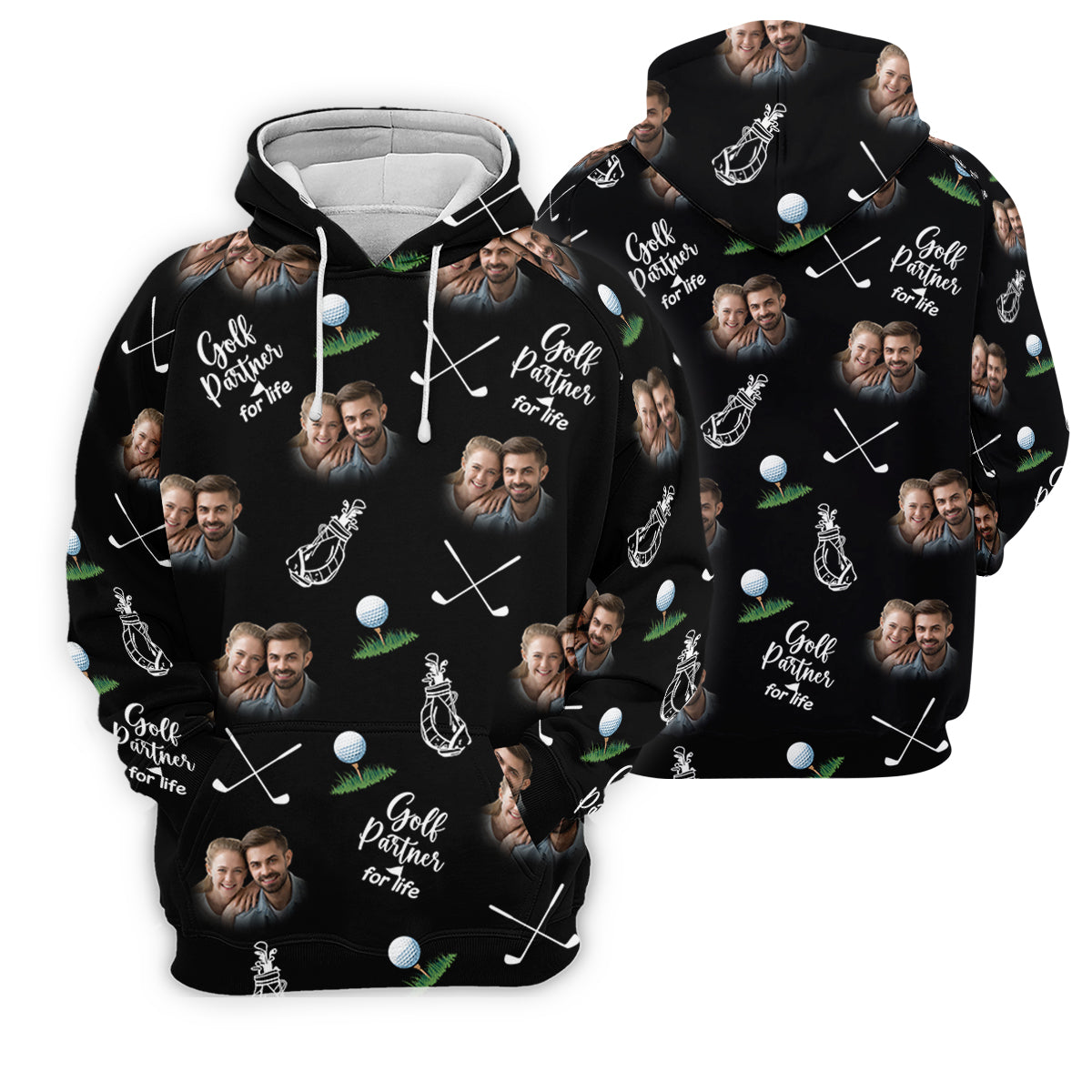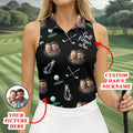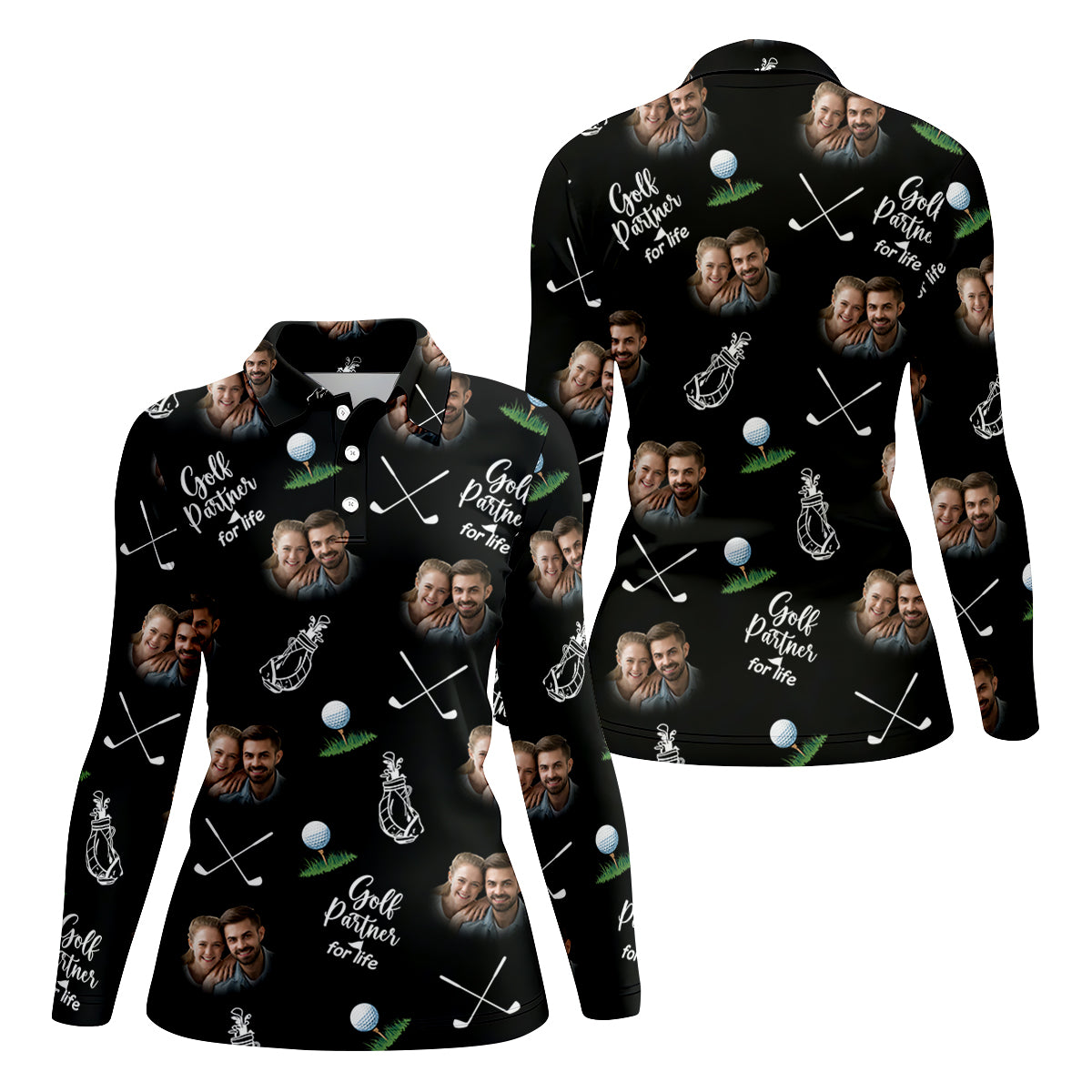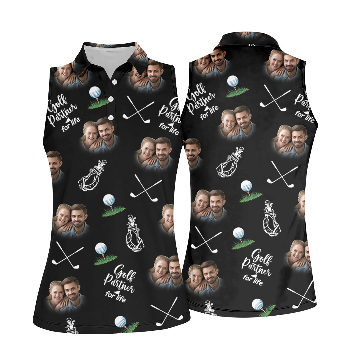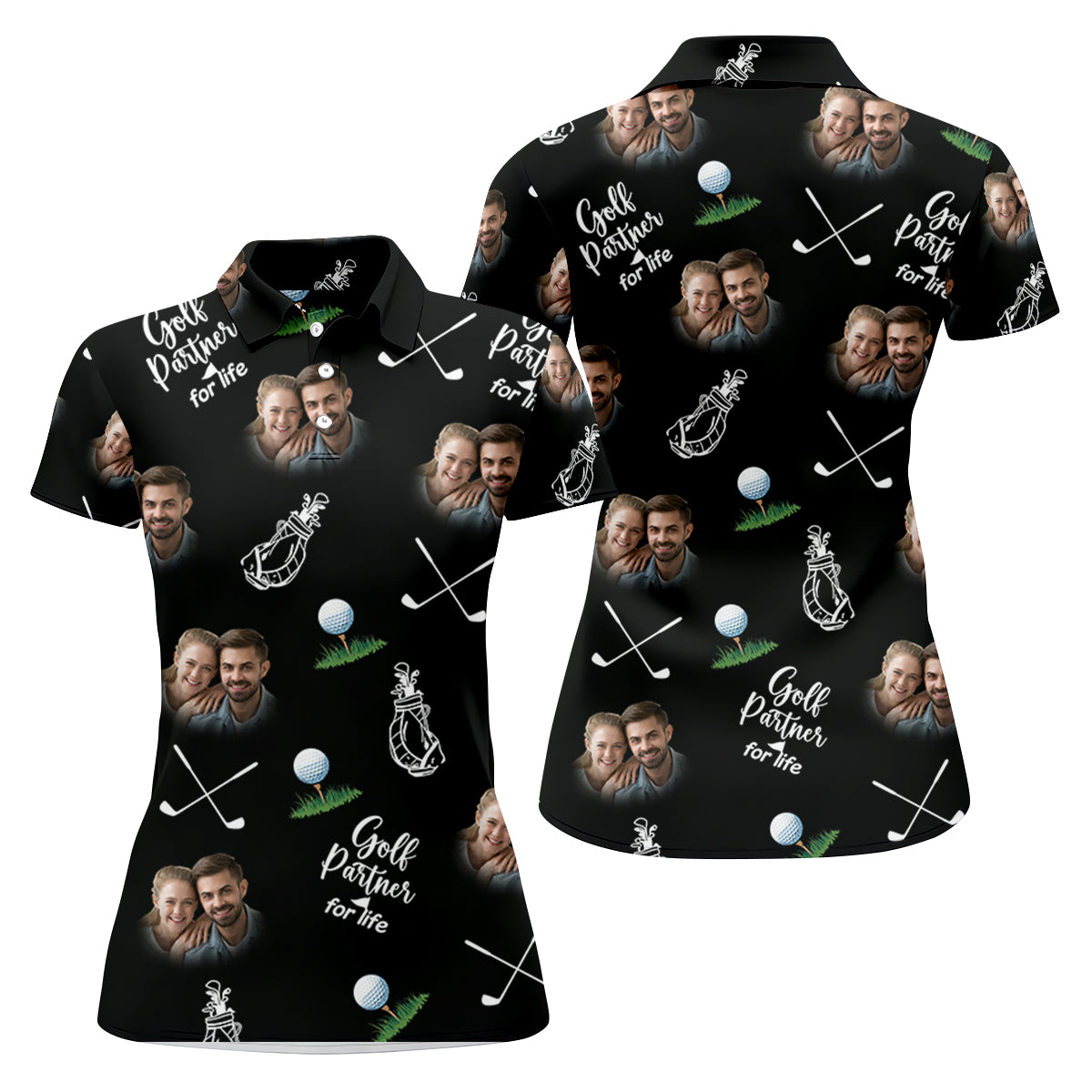 Golf Partner For Life Custom Photo Black Women Golf Top, Valentines Golf Gift, Ladies Golf Polos