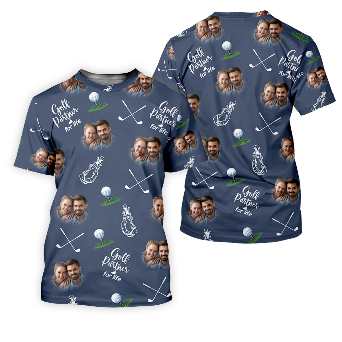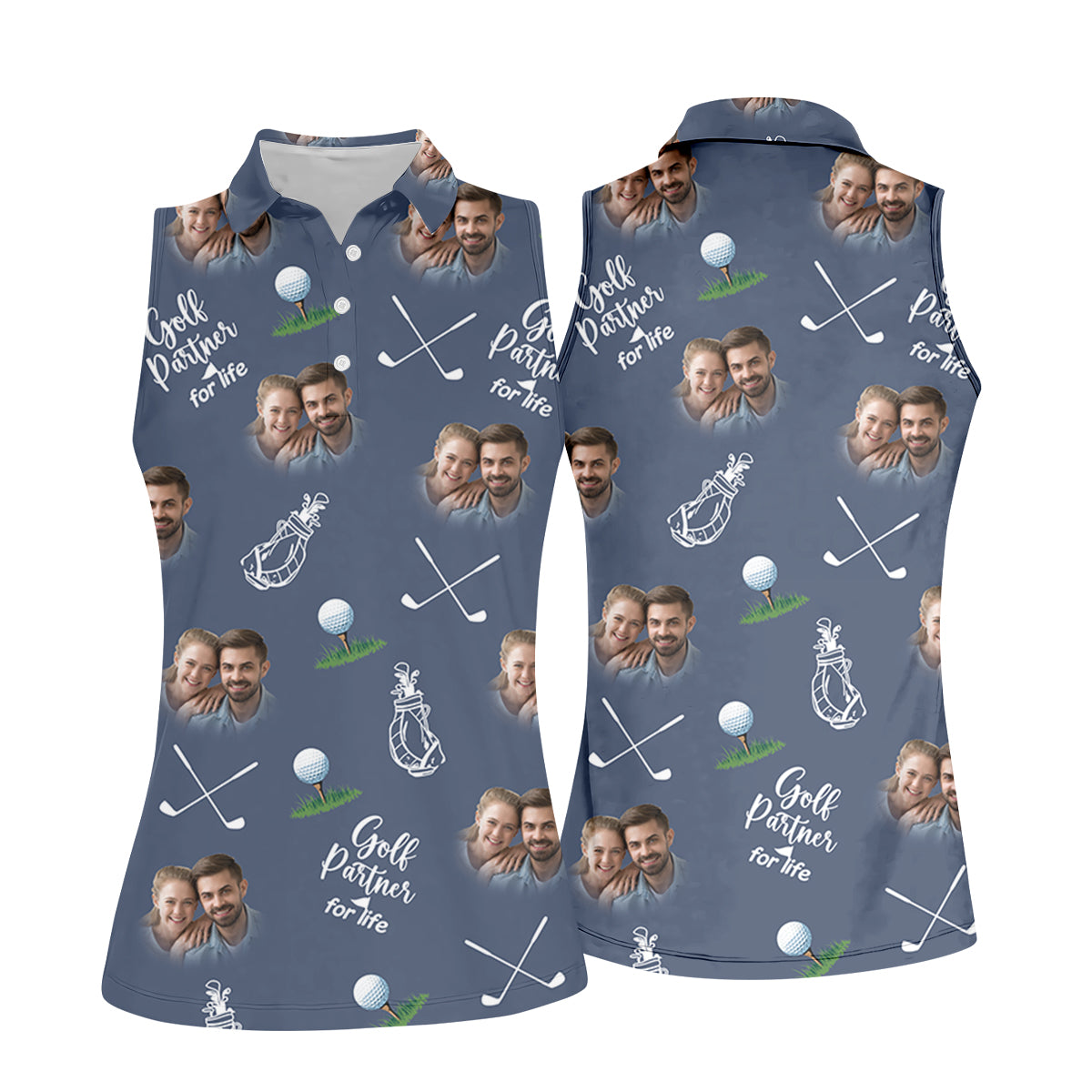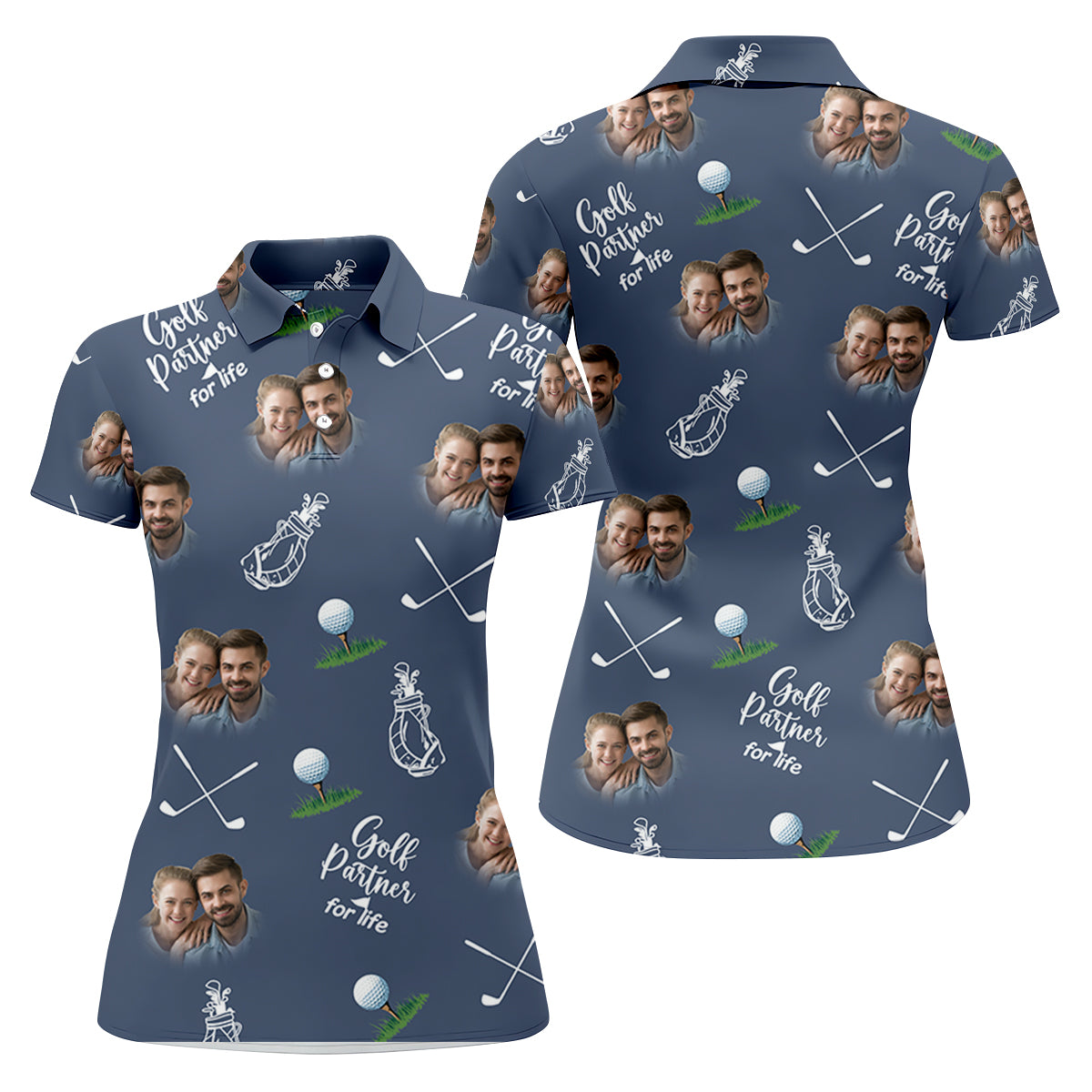 Golf Partner For Life Custom Photo Navy Golf Shirt, Valentines Golf Gift, Women Golf Top, Ladies Golf Polos