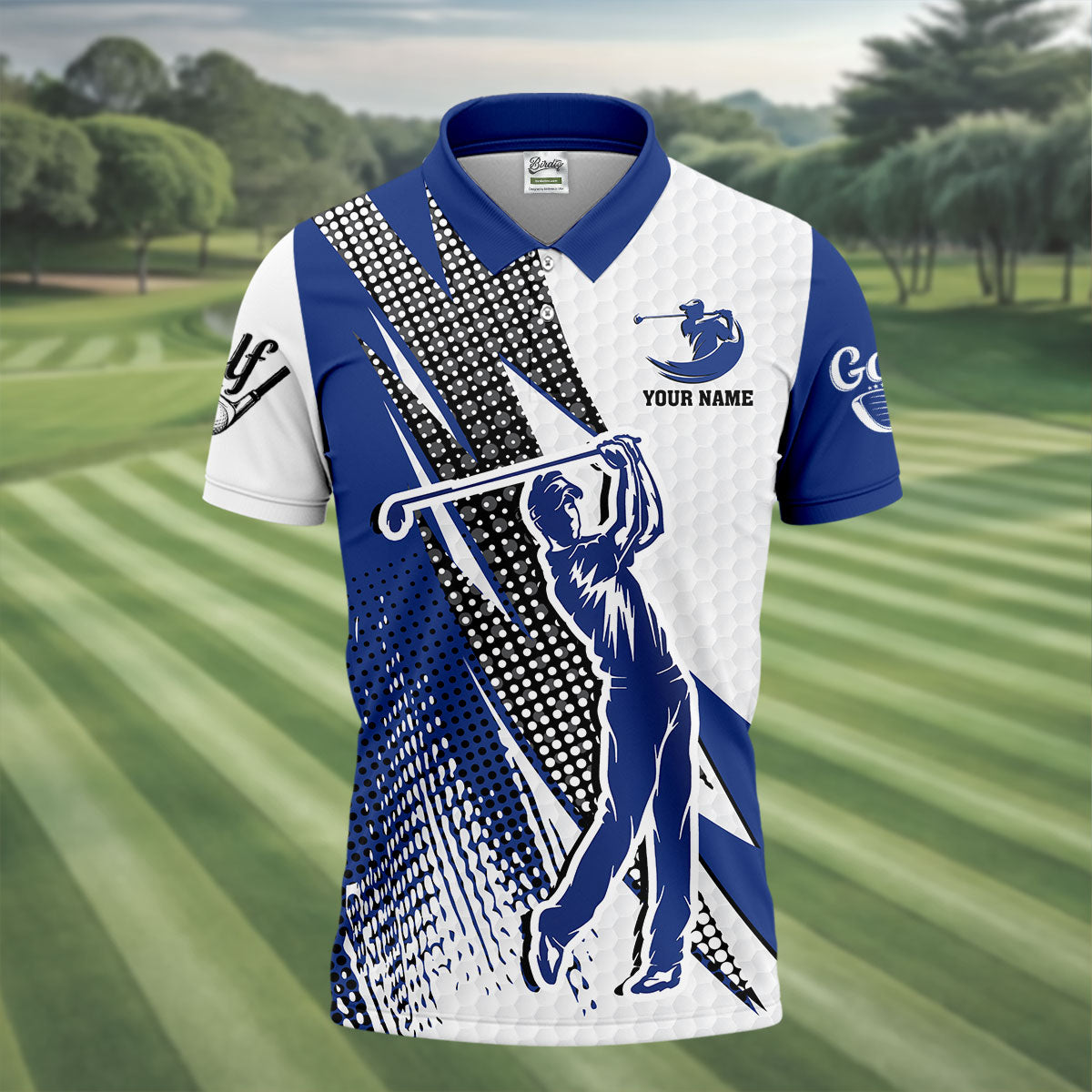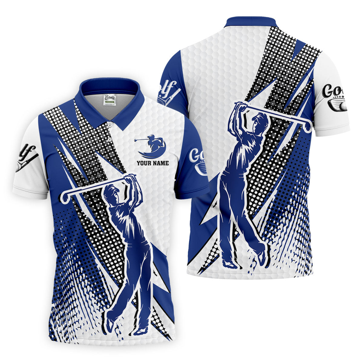 Blue White Golf Men's Golf Polo Shirt, Golfing Apparel, Mens Golf Gift, Funny Golf Shirt