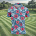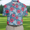 Hibiscus Flower And Leaf Patterned Golf Shirts, Men Golf Polo, Hawaiian Polo Golf Shirts, Matching Golf Shirts