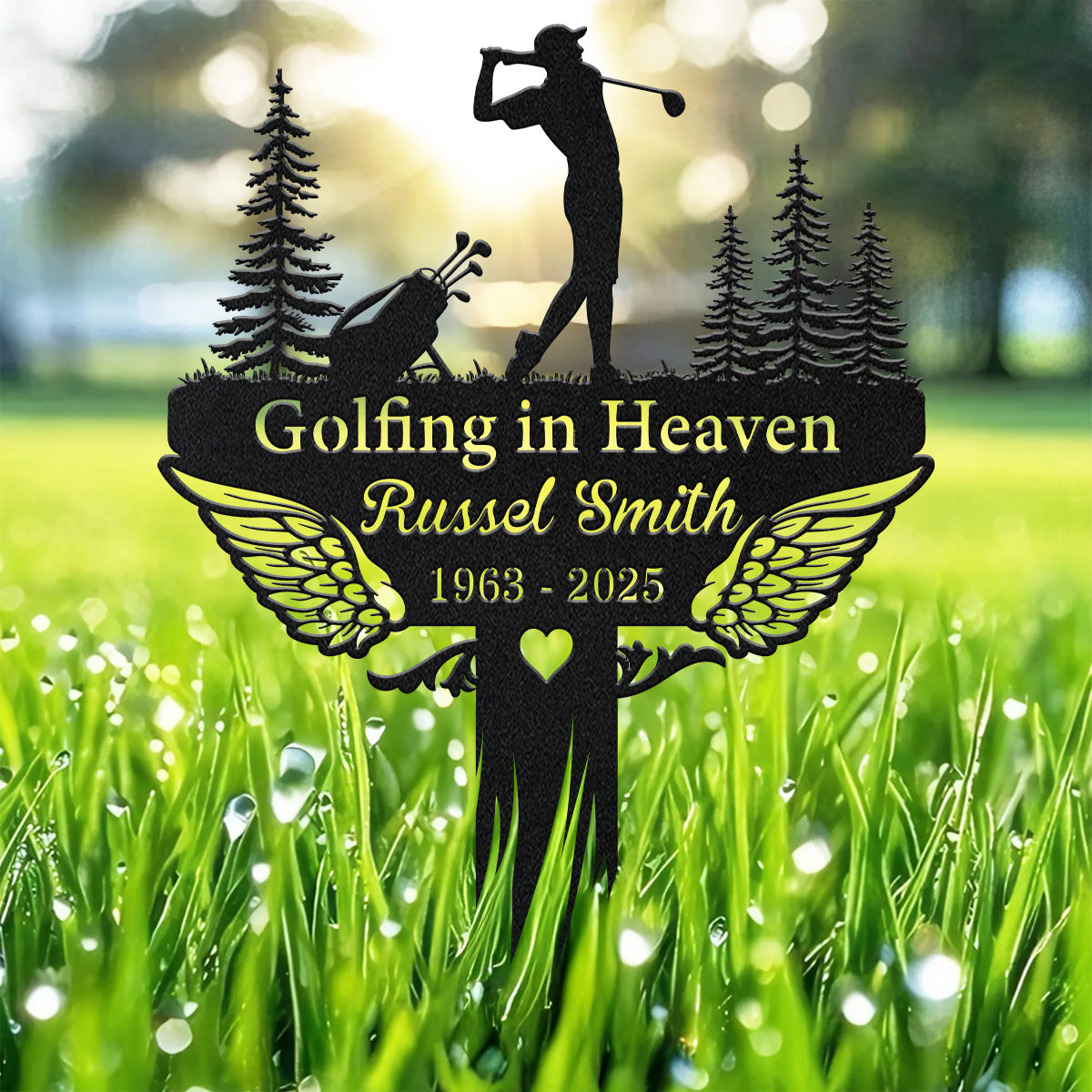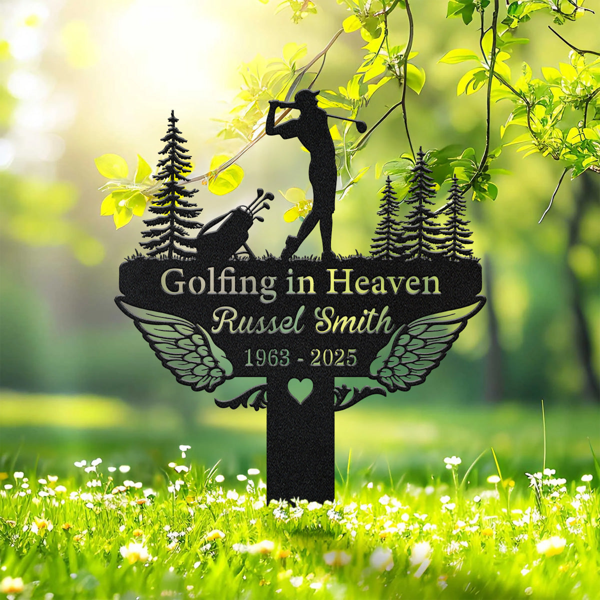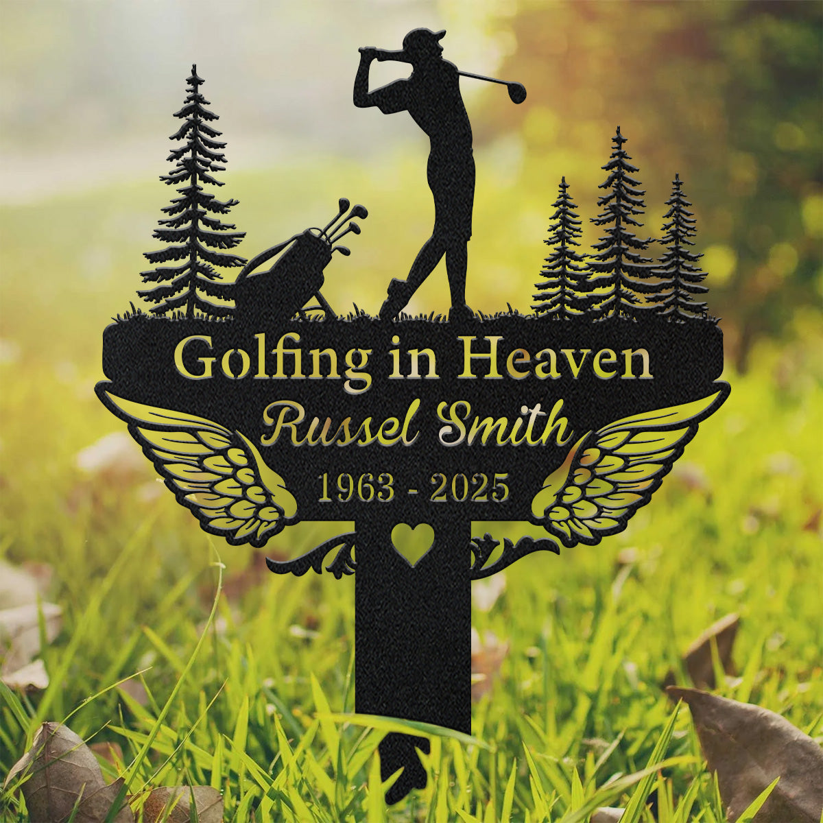 Golf Sign Golfing In Heaven, Custom Golfing Memorial Metal Stake, Golfer Grave Marker, Metal Stake
