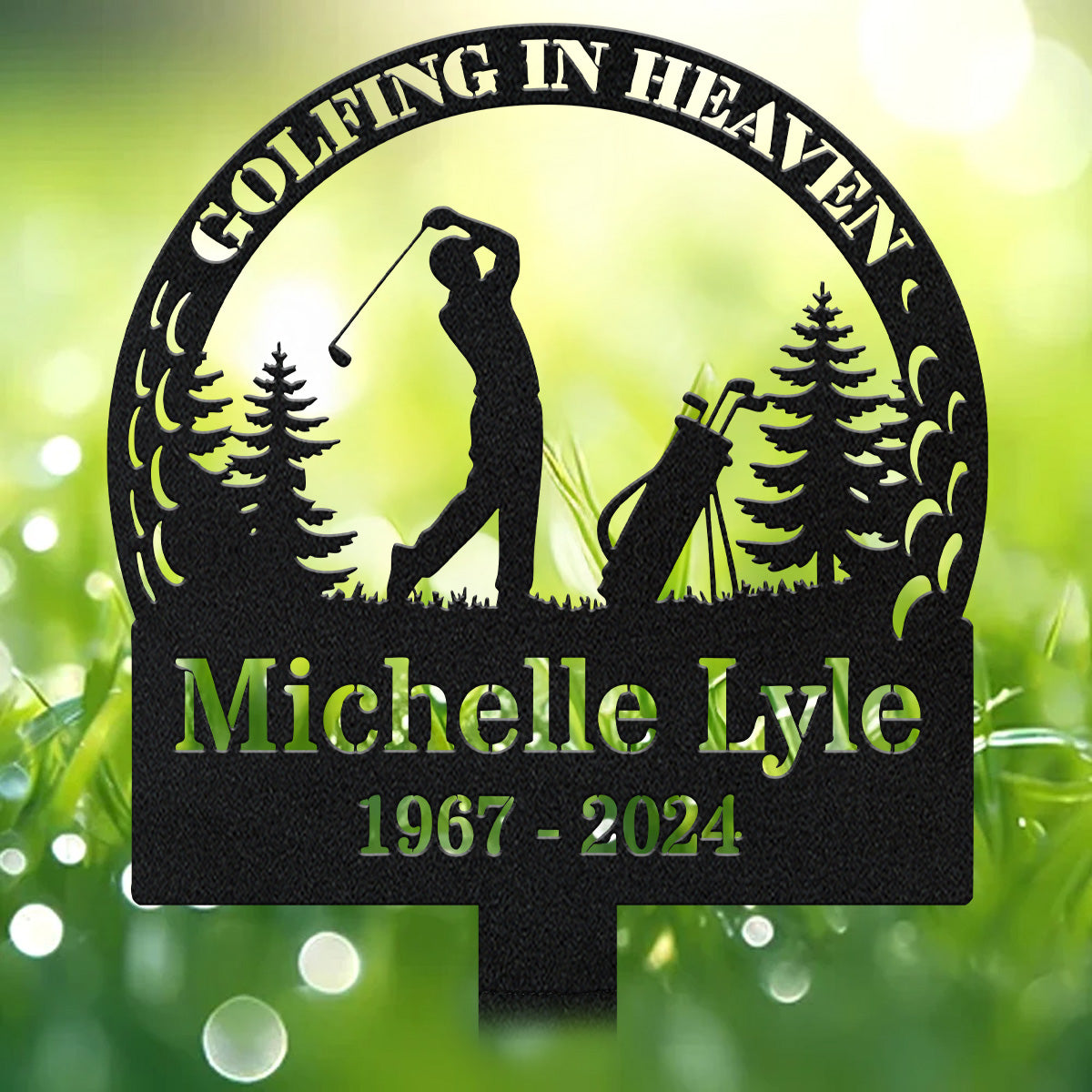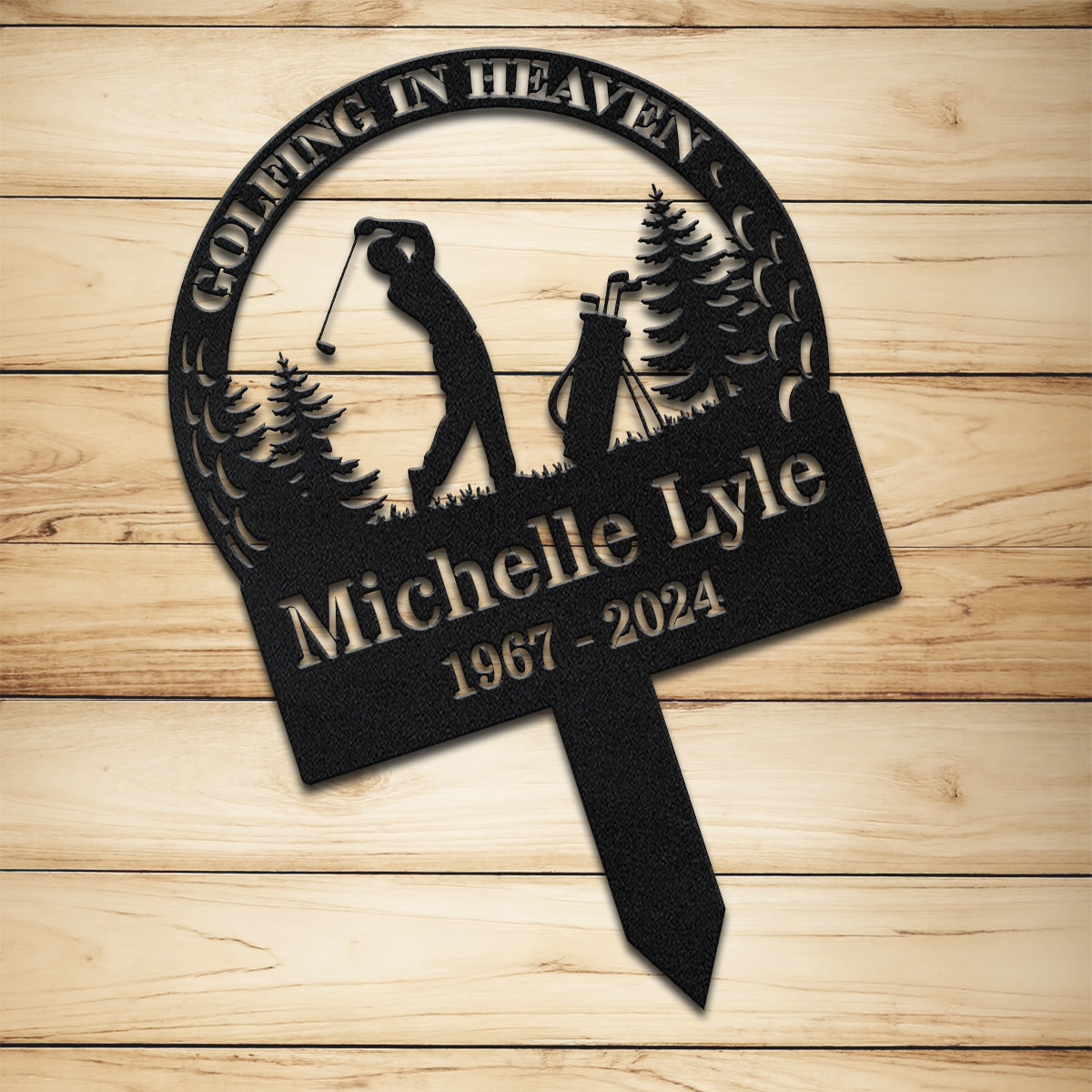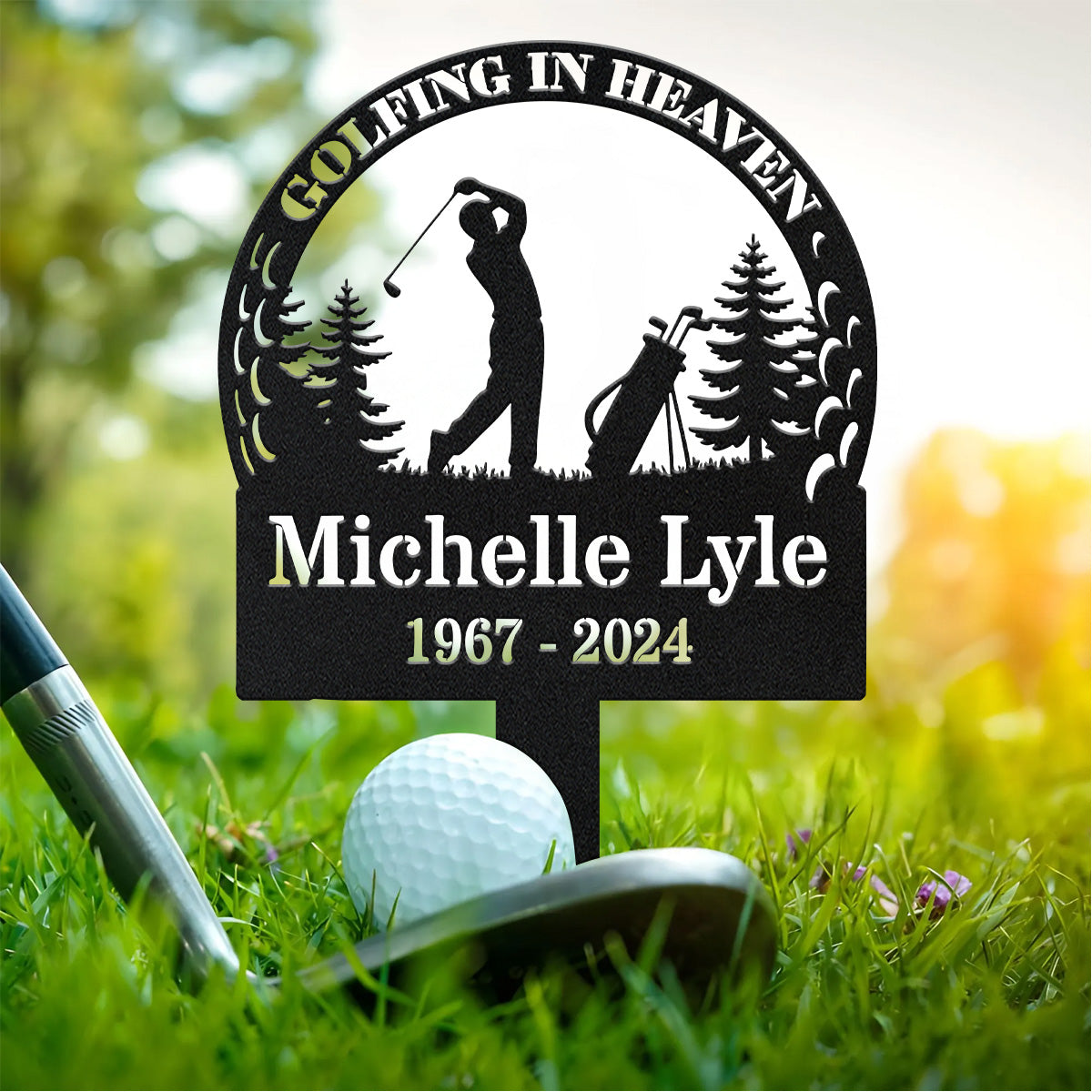 Golfing In Heaven Custom Golf Memorial Metal Name Signs, Outdoor Garden Decor, Golf Memorial Gift
