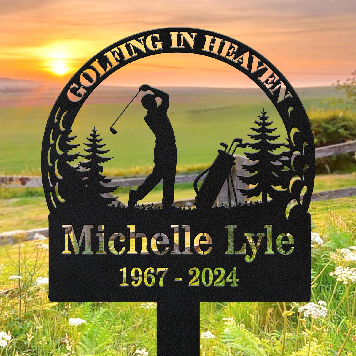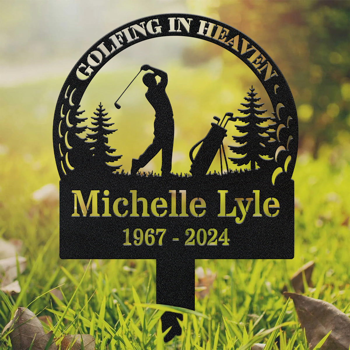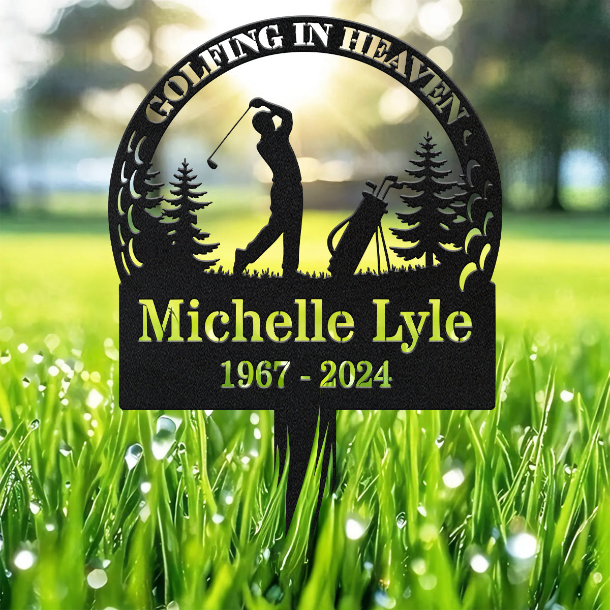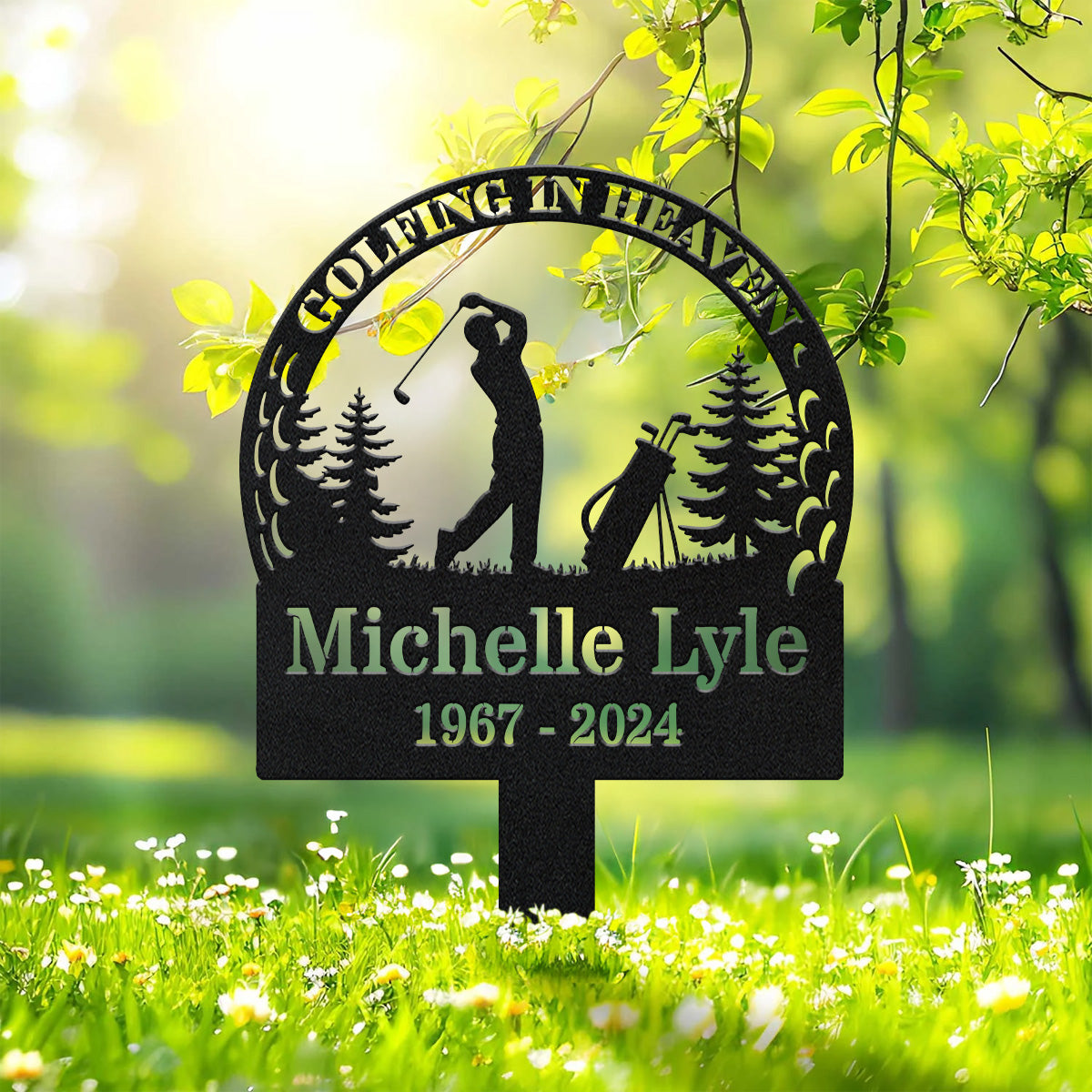 Golfing In Heaven Custom Golf Memorial Metal Name Signs, Outdoor Garden Decor, Golf Memorial Gift
