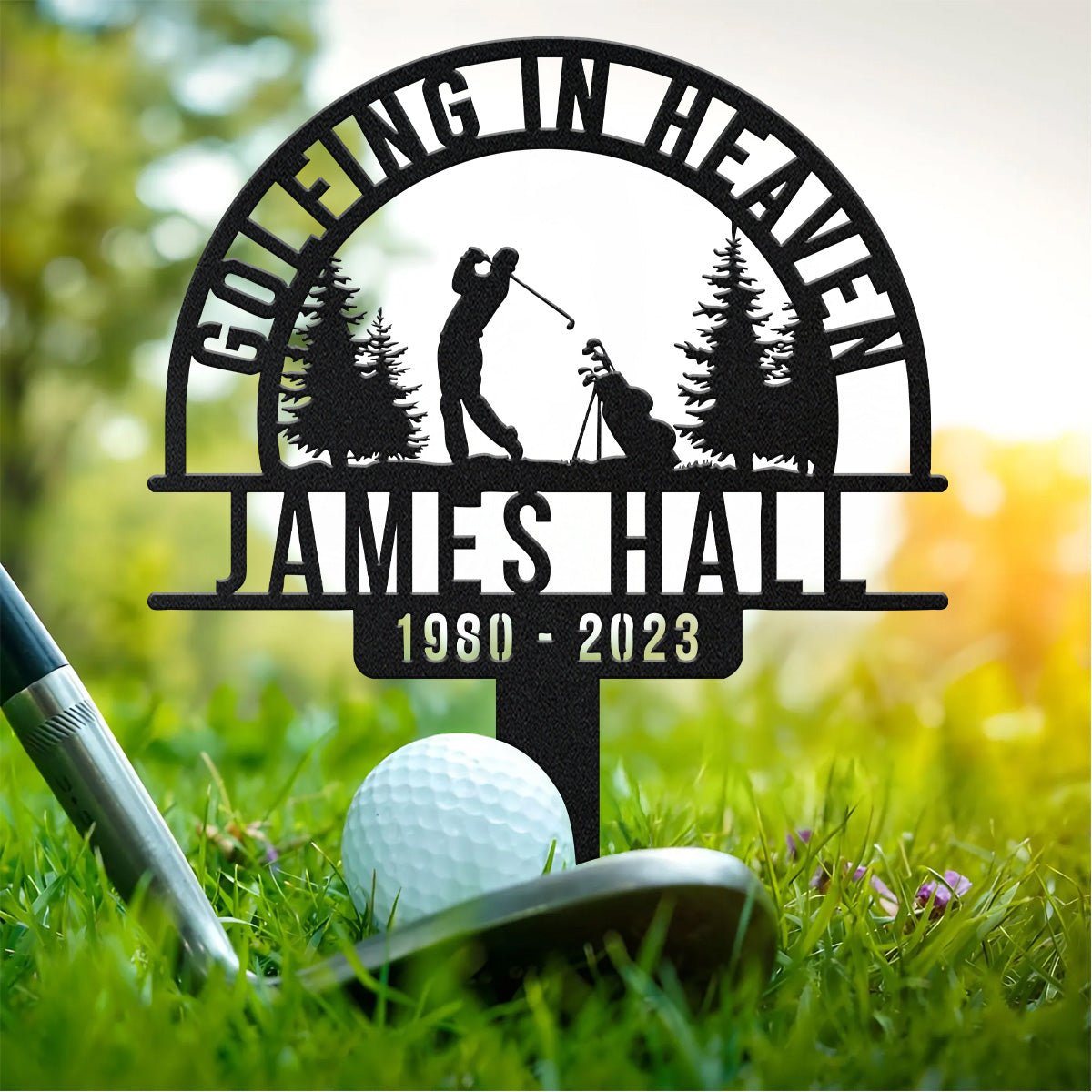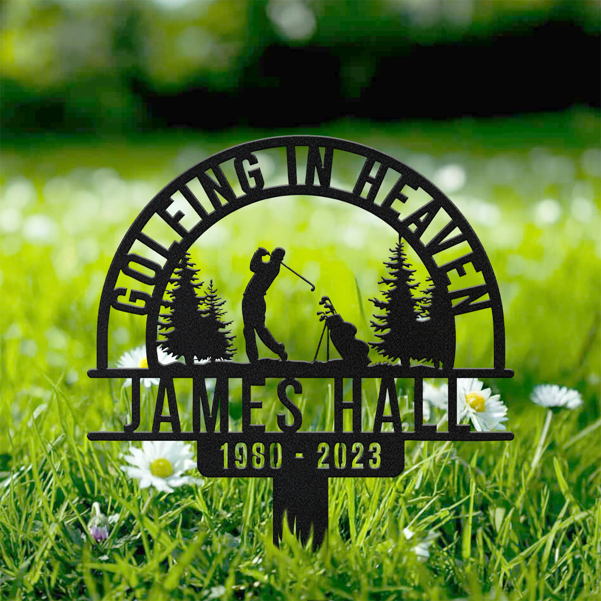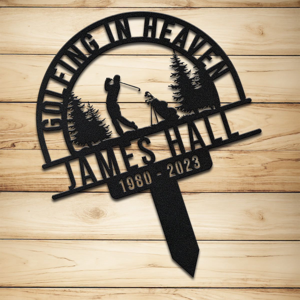 Golfing In Heaven Golf Sign, Custom Golfer Grave Marker, Golfing Memorial Metal Stake, Metal Stake