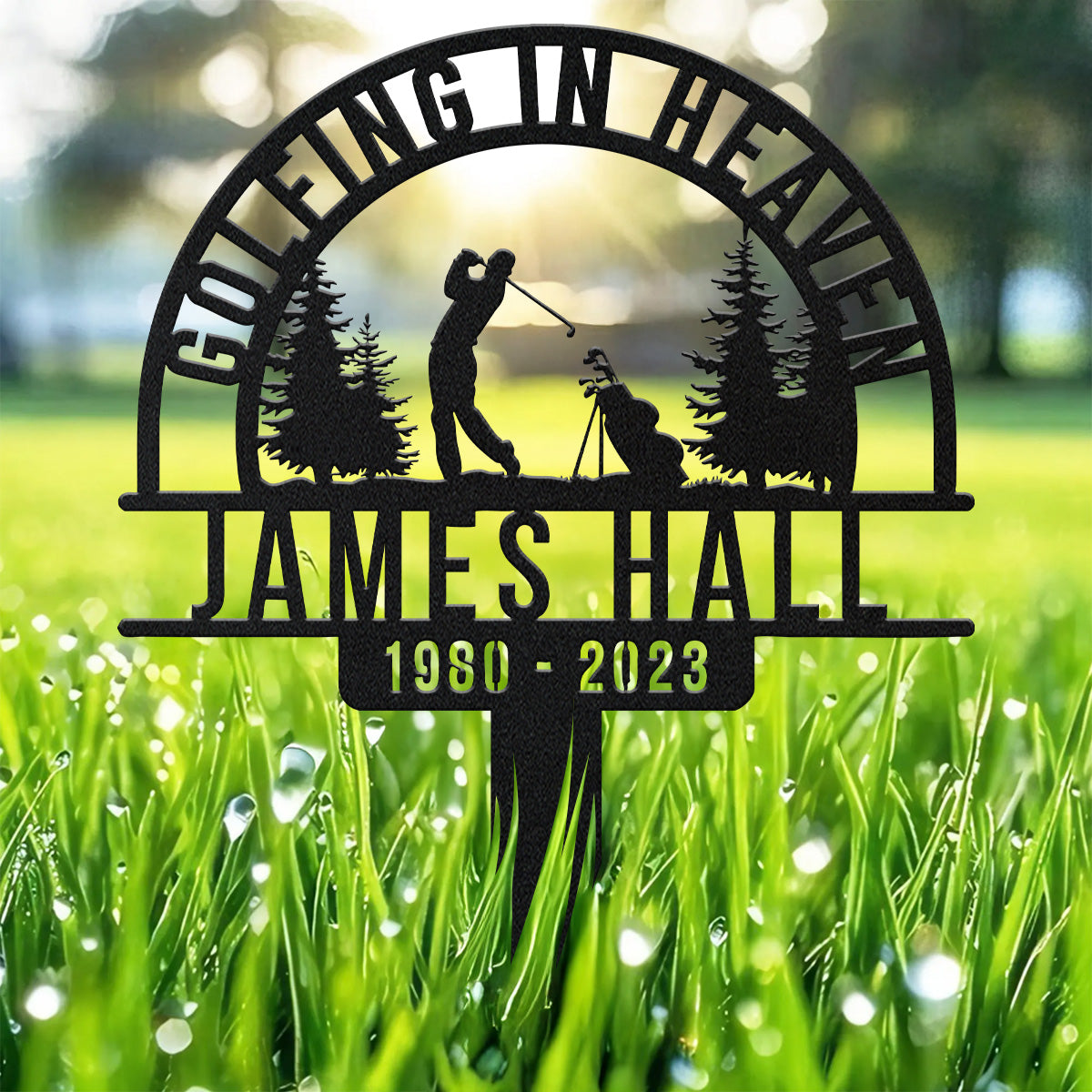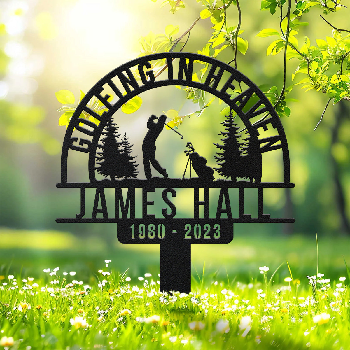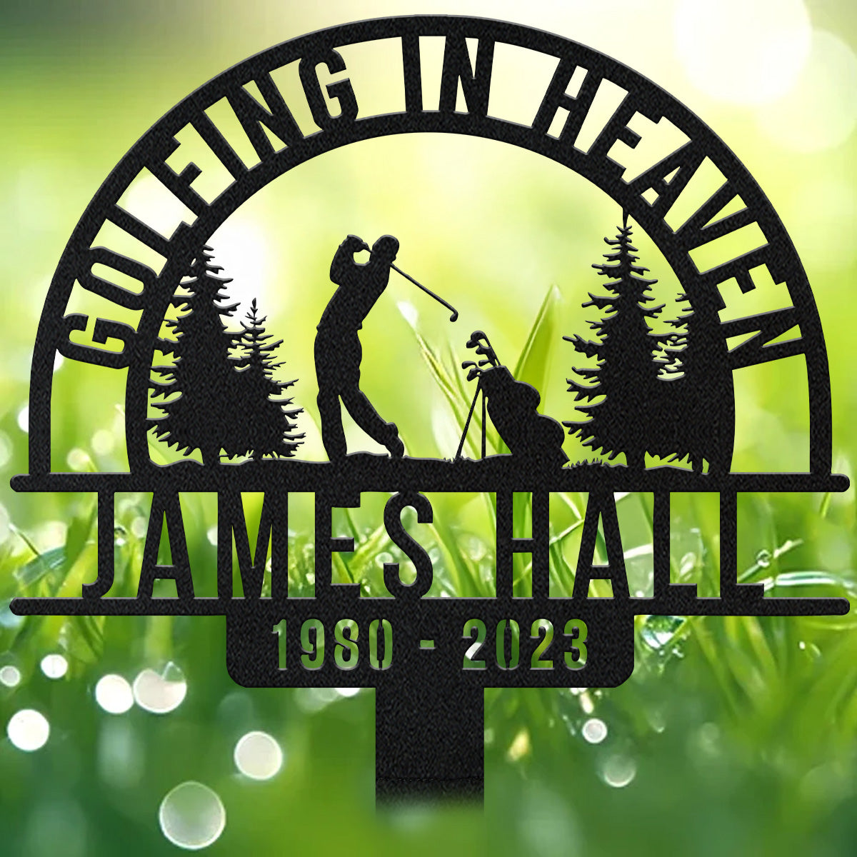 Golfing In Heaven Golf Sign, Custom Golfer Grave Marker, Golfing Memorial Metal Stake, Metal Stake