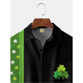 Green And Black St. Patrick's Day Lucky Clover Hawaiian Golf Shirt, Tropical Vibe Men's Golf Shirt