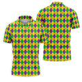 Green Gold Purple Argyle Pattern Mardi Gras Golf Shirt, Polo Shirts For Men, Golf Shirts For Men