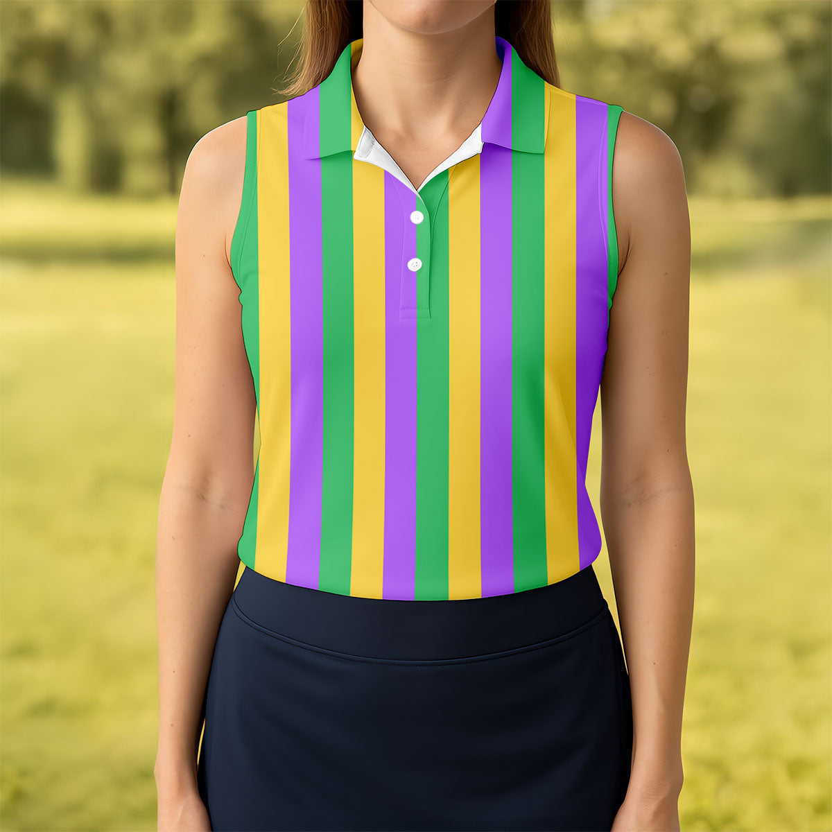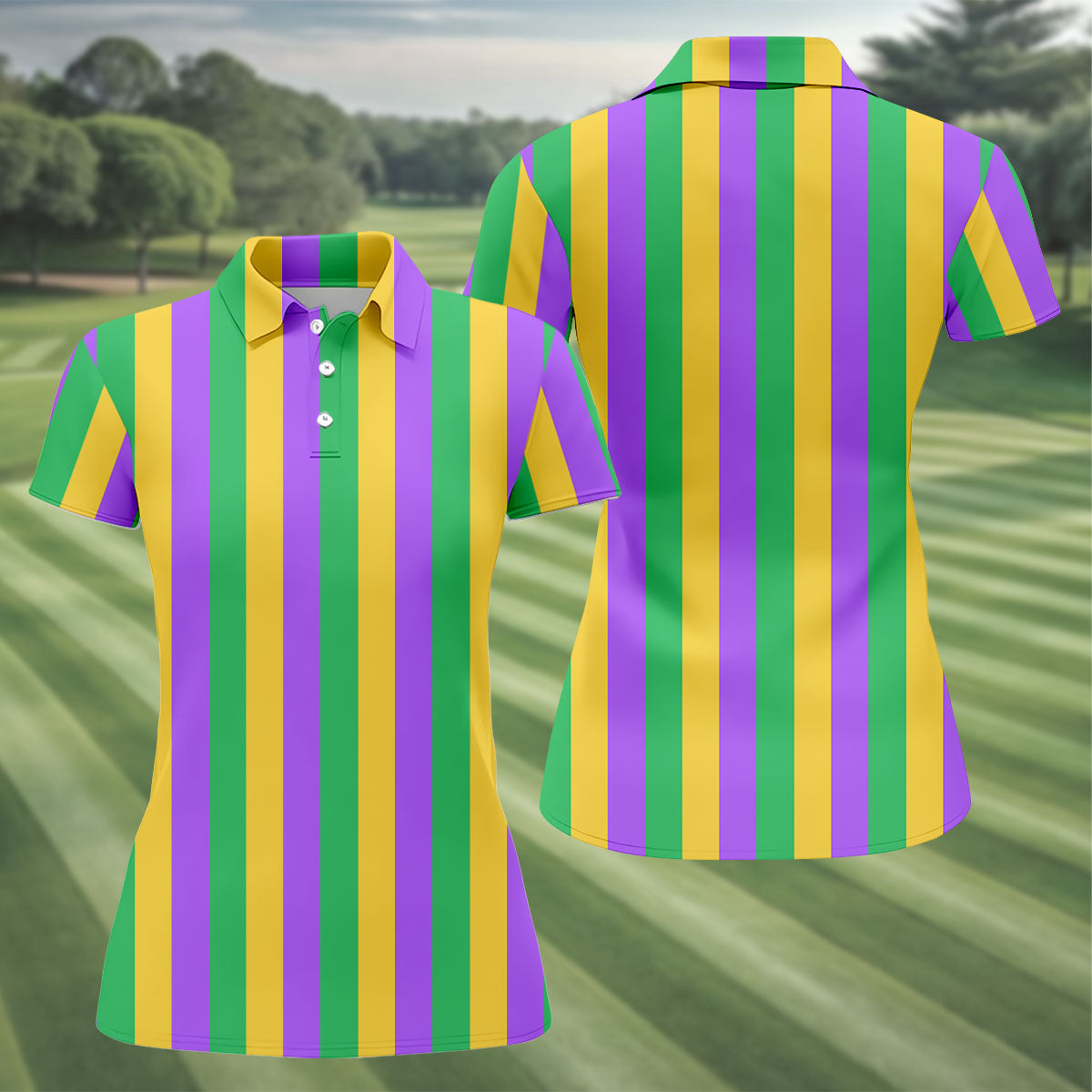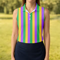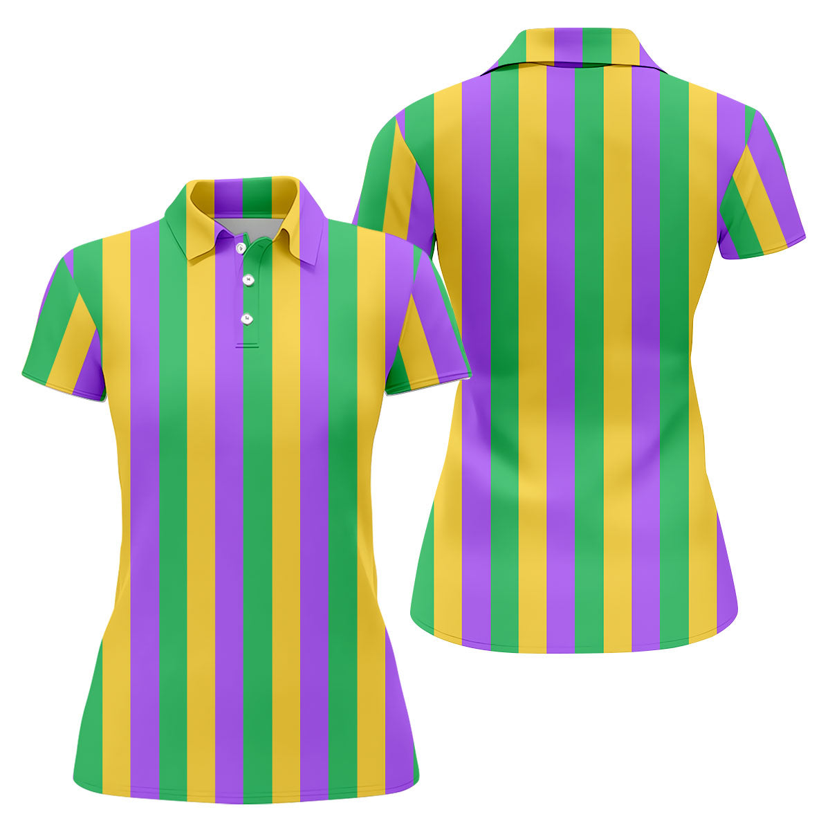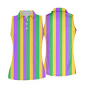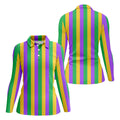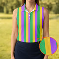 Green Gold Purple Vertical Stripe Mardi Gras Golf Shirt, Women's Golf Shirts, Ladies Golf Polos
