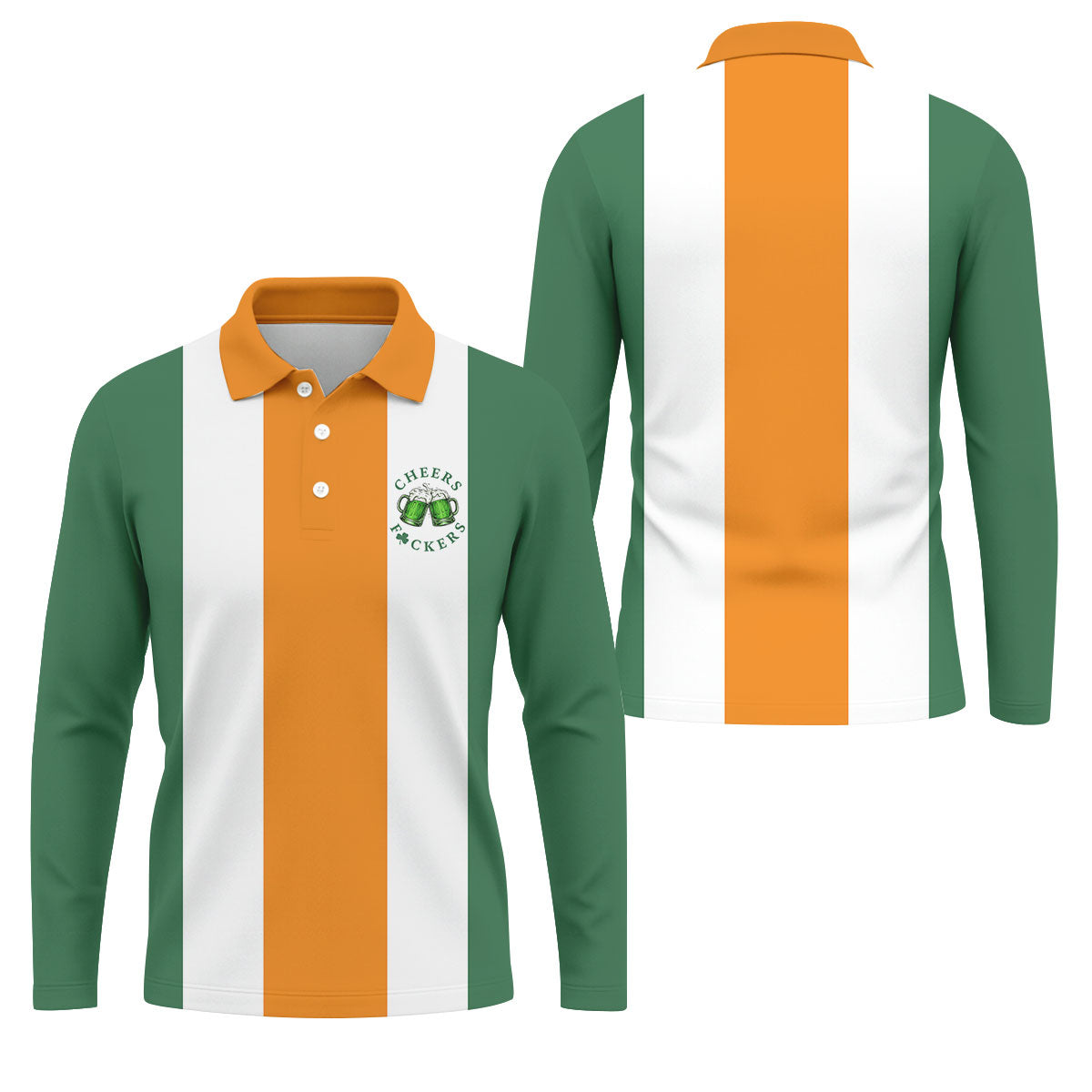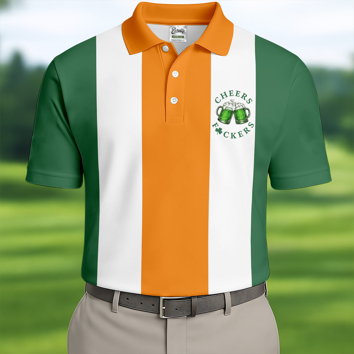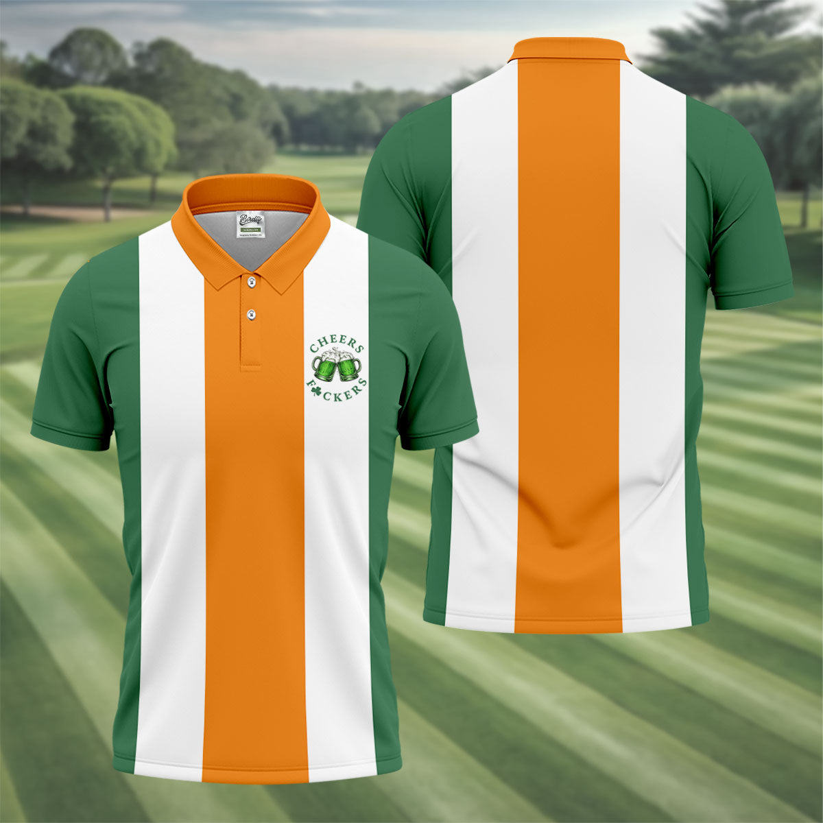Green Orange White Vertical Stripes St Patrick's Day Golf Shirt, Polo Shirts For Men, Golf Shirts For Men