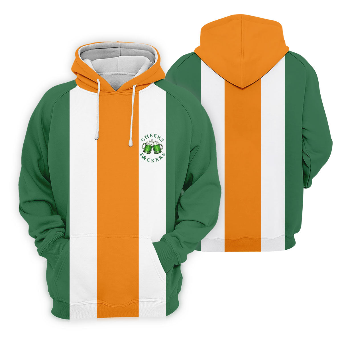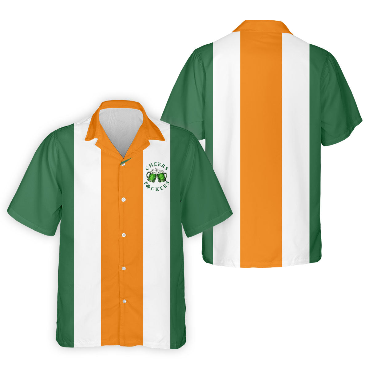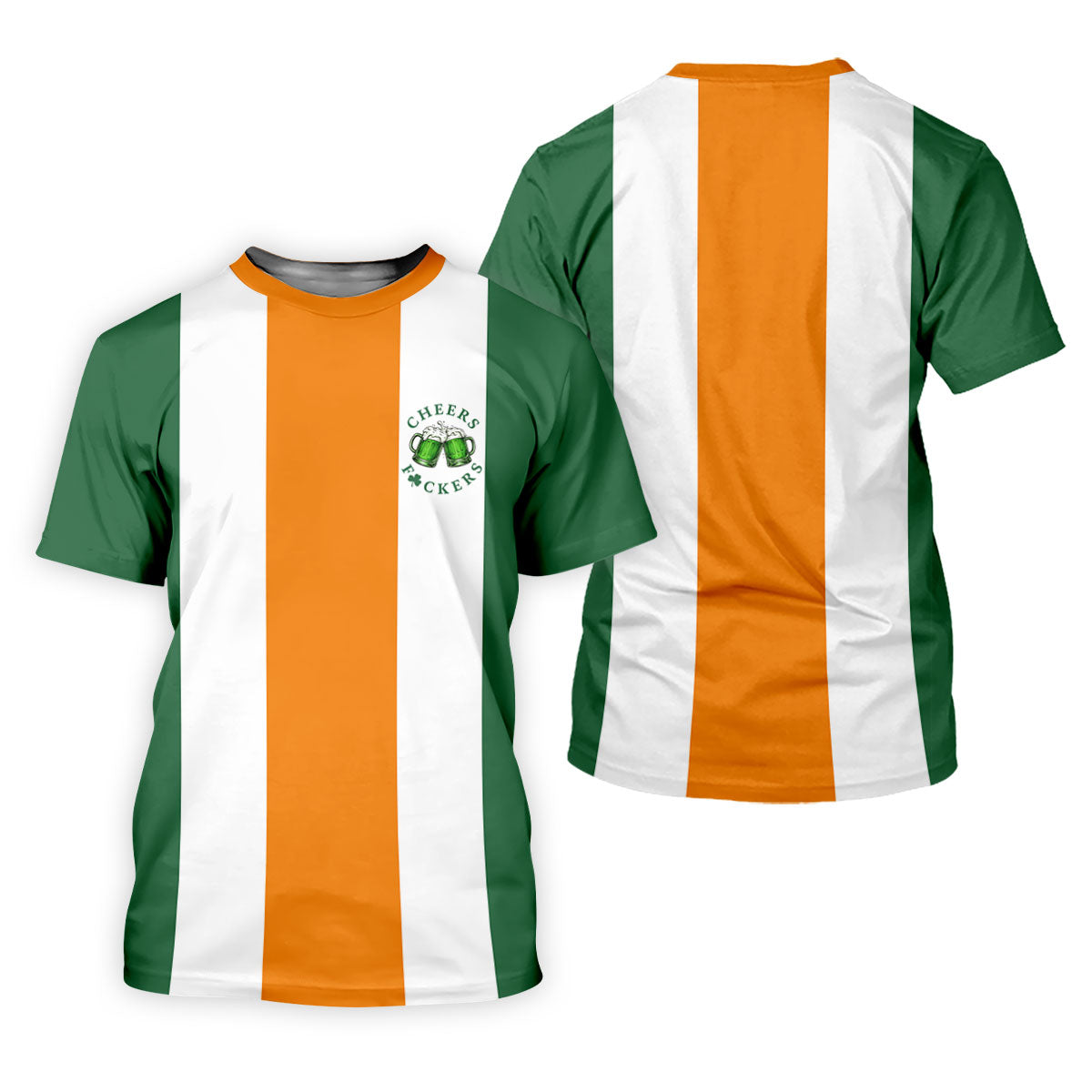 Green Orange White Vertical Stripes St Patrick's Day Golf Shirt, Polo Shirts For Men, Golf Shirts For Men